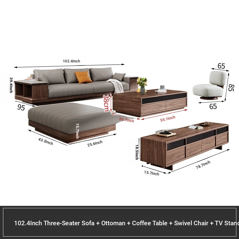 102.36 ins three + foot + tea table + turn chair + TV cabinet
