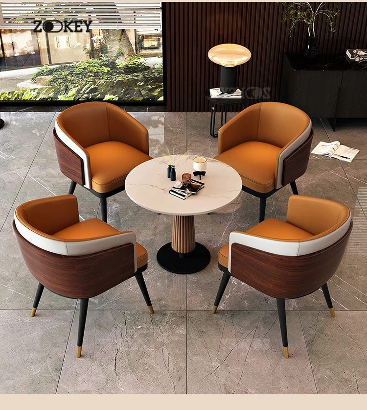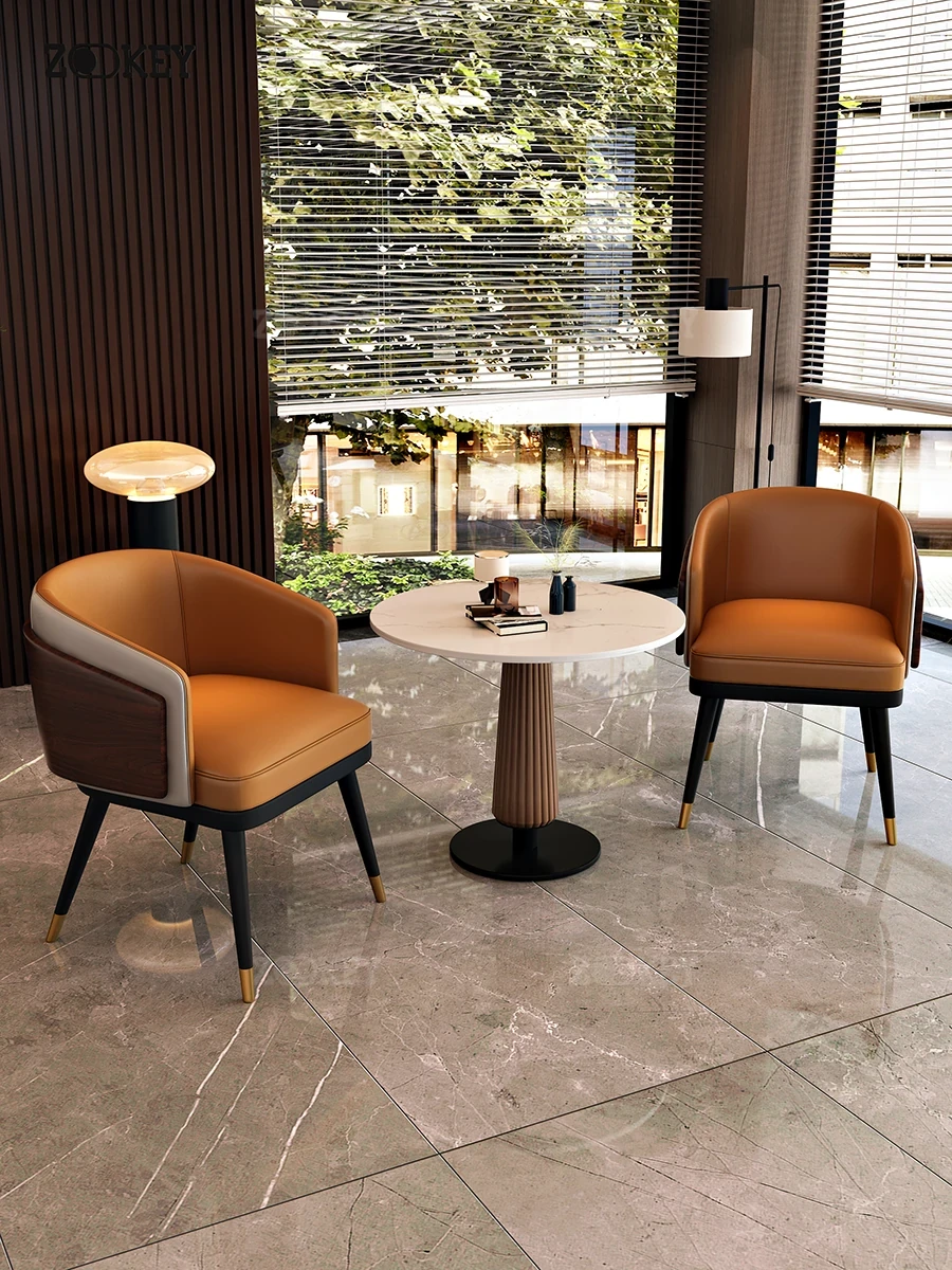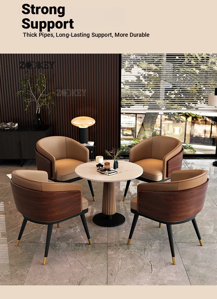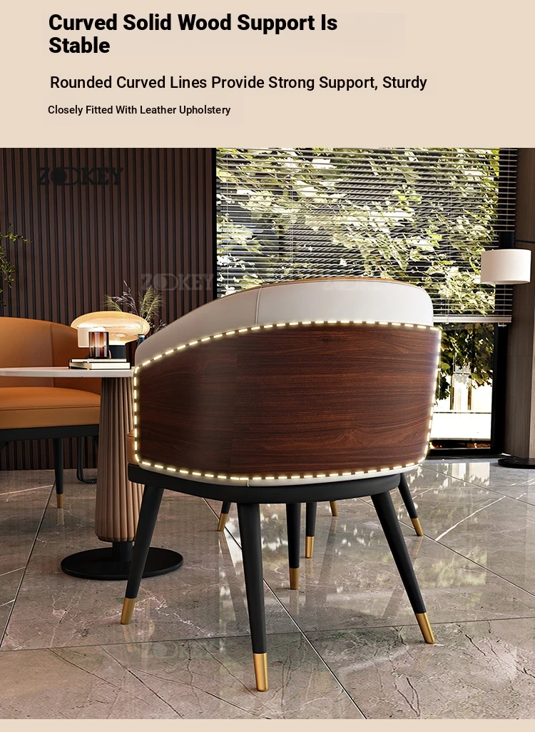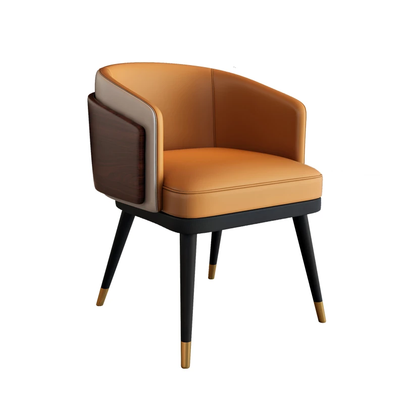 Stylish Italian Minimalist Faux Leather Armchair - Trendy Nordic Solid Wood Lounge Chair for Home, Hotel, and Dining Room Conversations