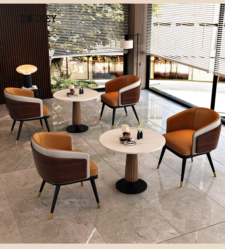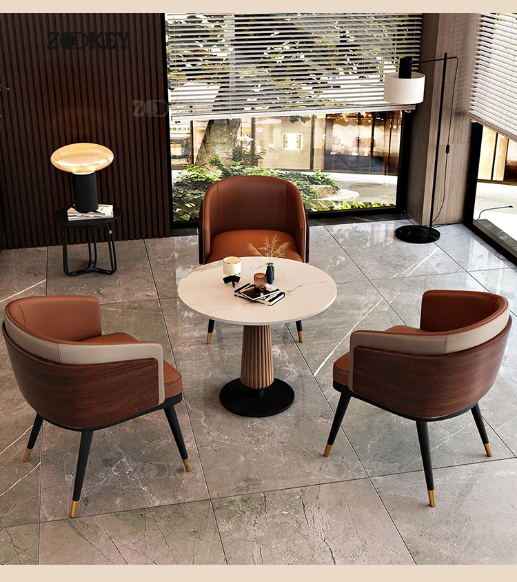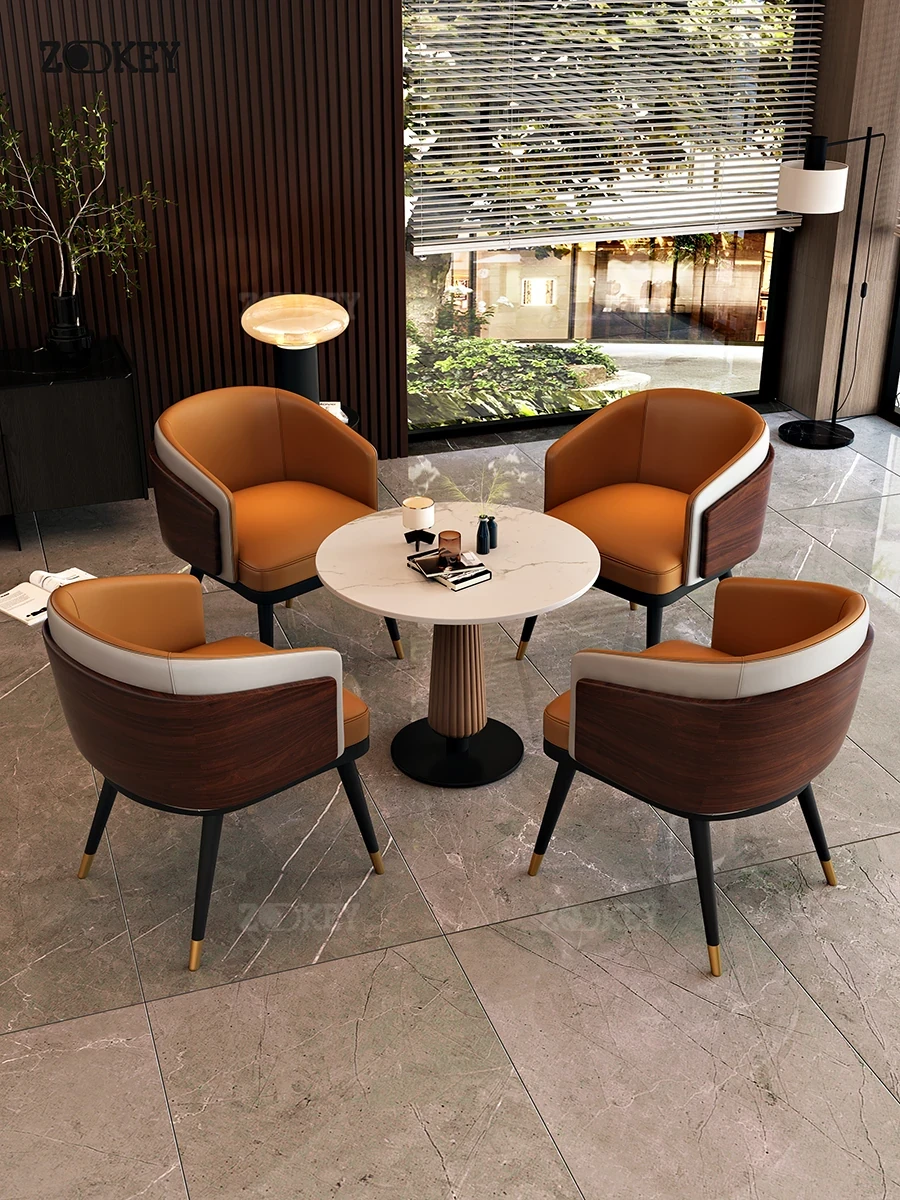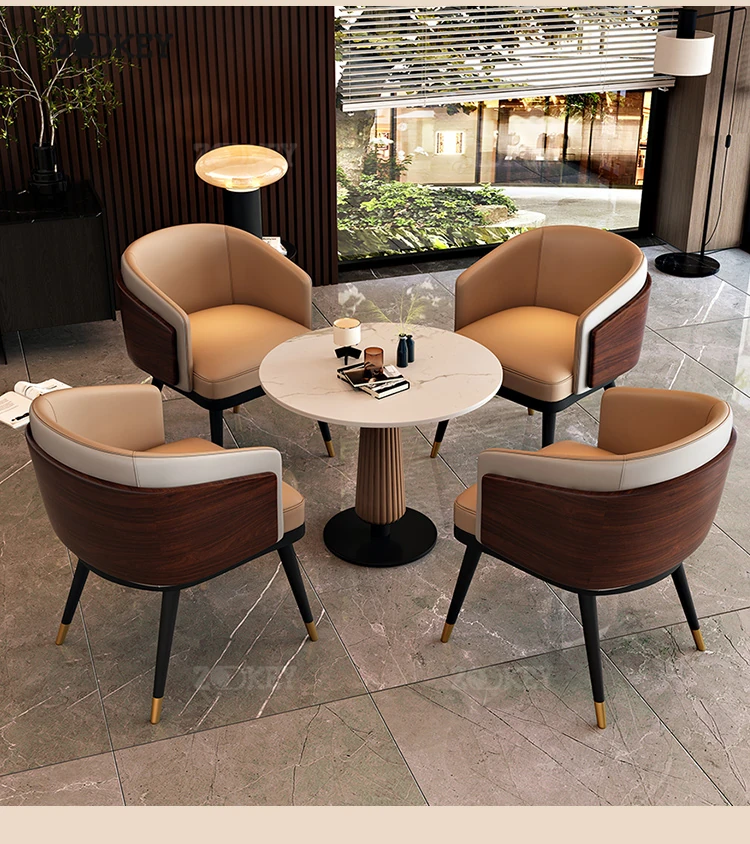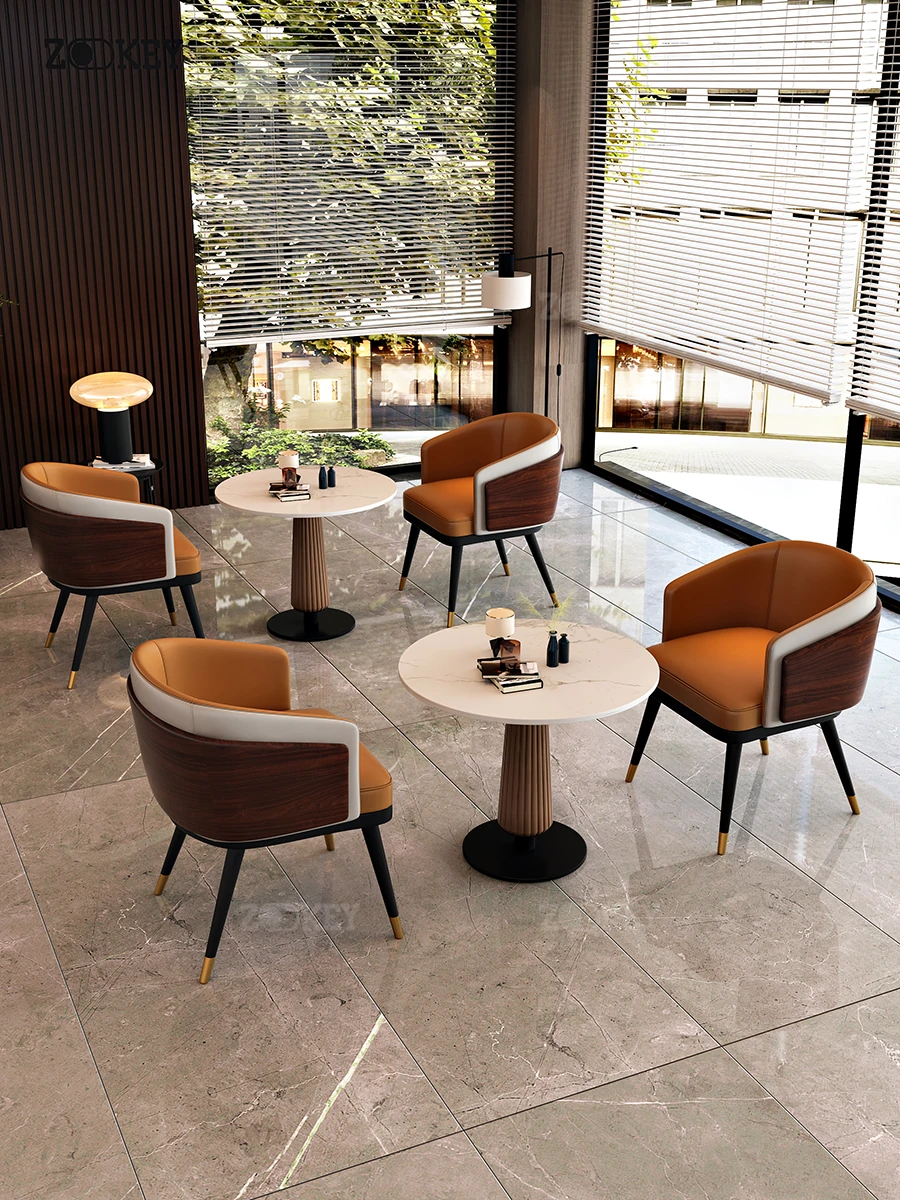 Stylish Italian Minimalist Faux Leather Armchair - Trendy Nordic Solid Wood Lounge Chair for Home, Hotel, and Dining Room Conversations