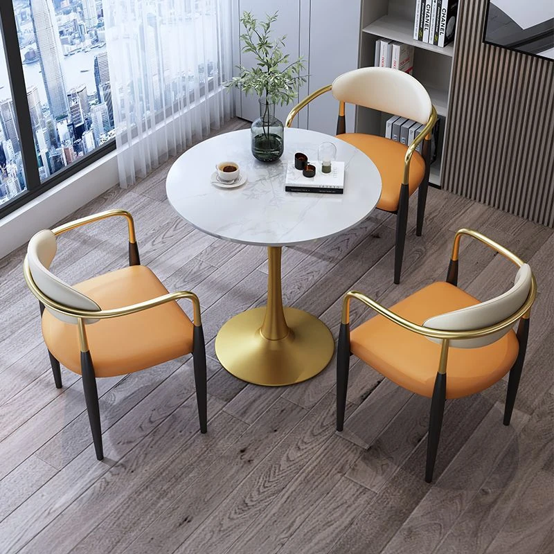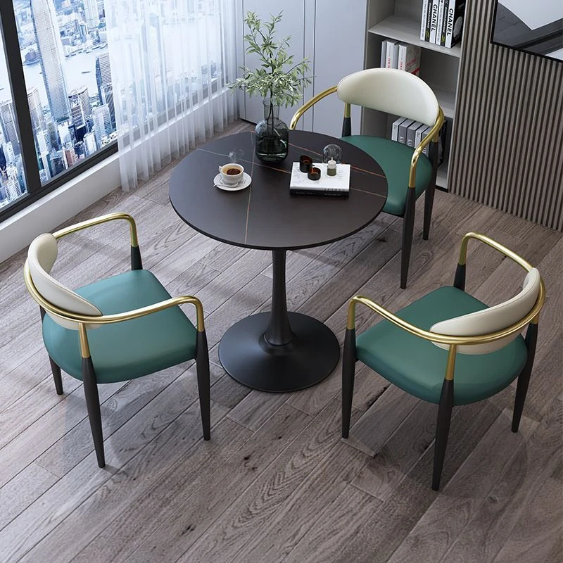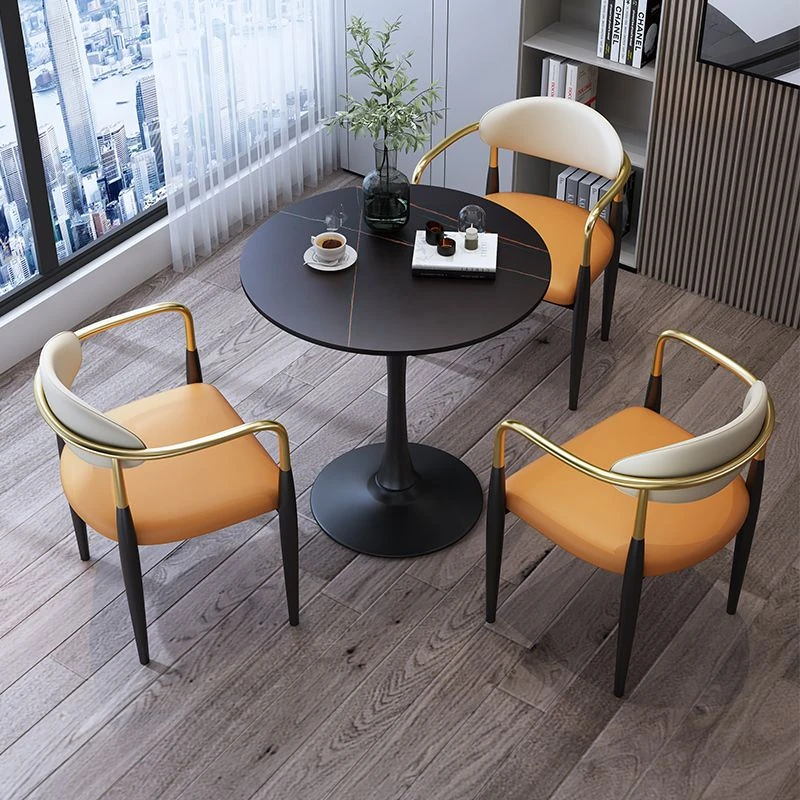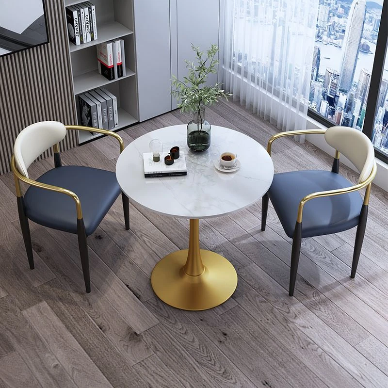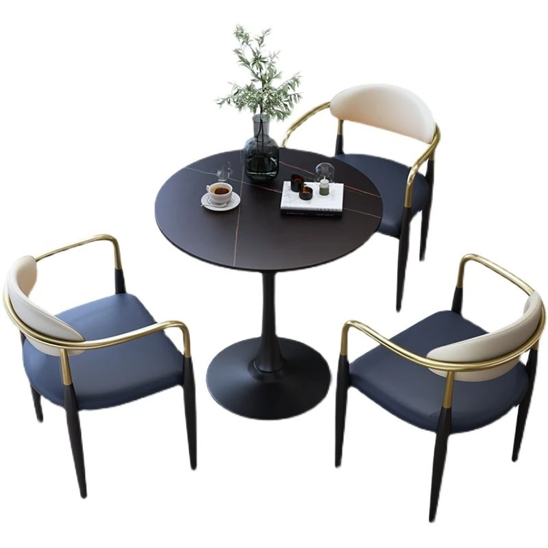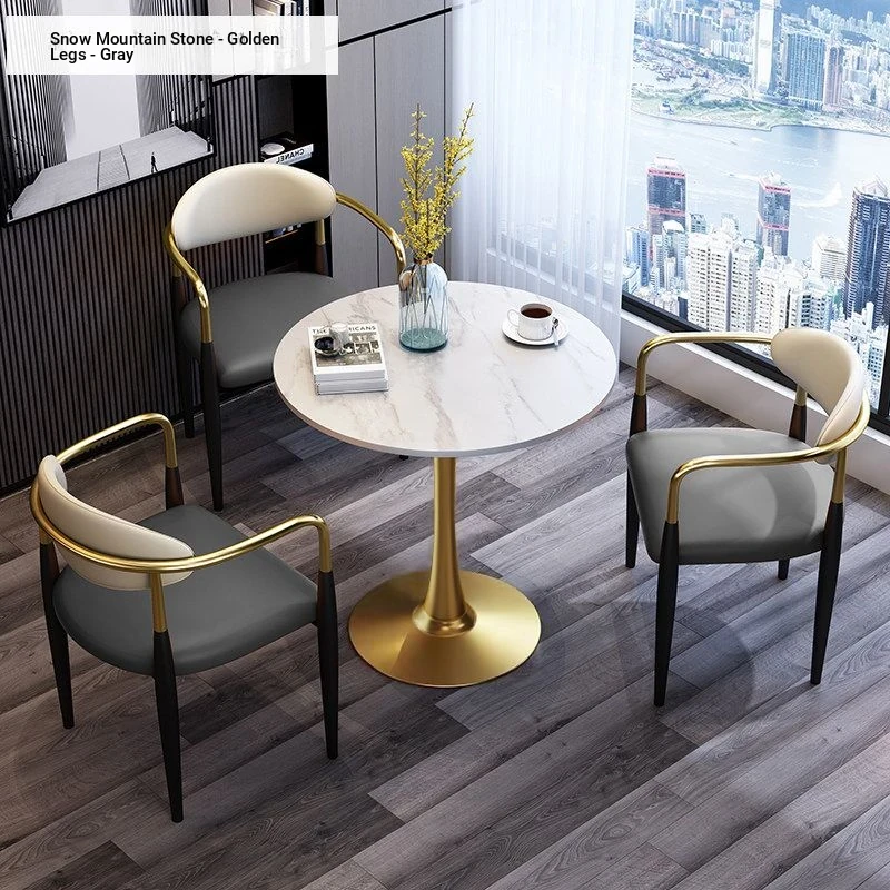 Stylish Luxury Round Coffee Table Set - Elegant Reception and Meeting Table with Chairs, Perfect for Balconies and Relaxation Spaces - 3-Piece Modern Design