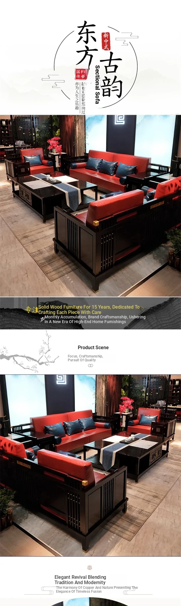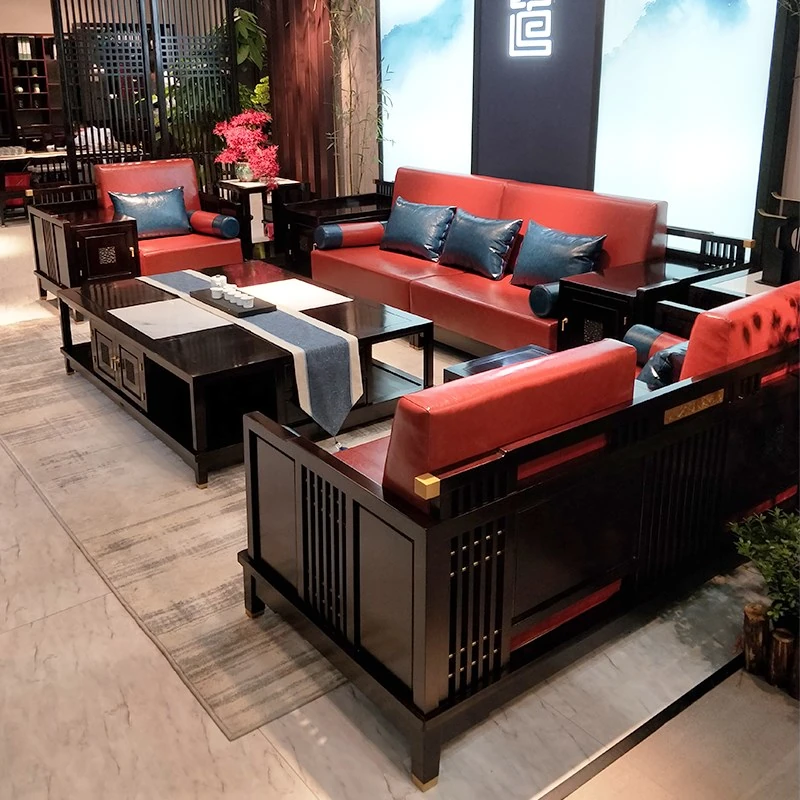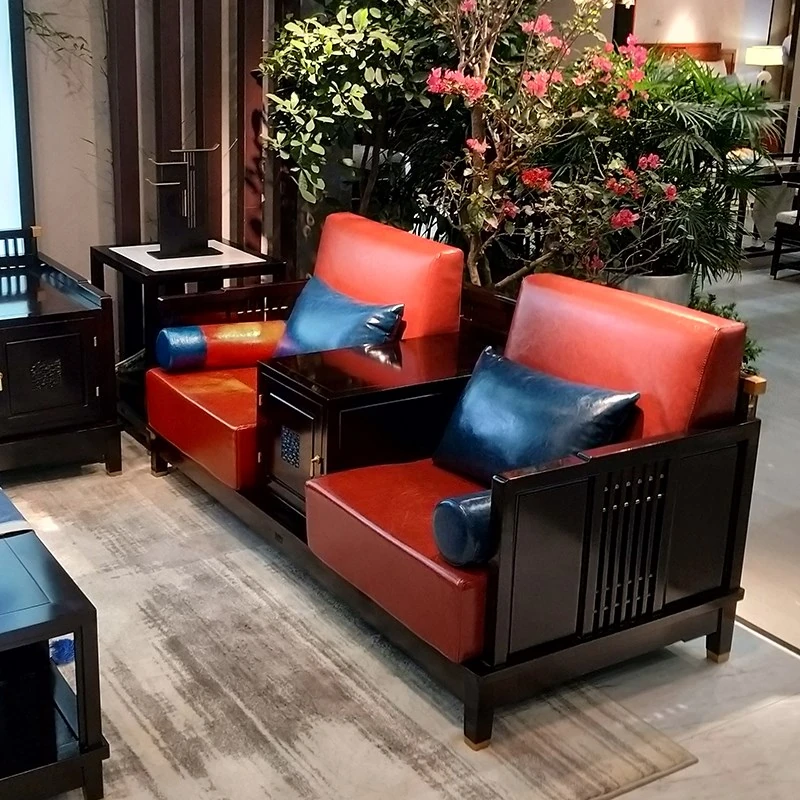 Stylish Modern Chinese Sofa Set - Premium Solid Wood Living Room Furniture for Hotels and Villas, Featuring Elegant Black Rosewood Design