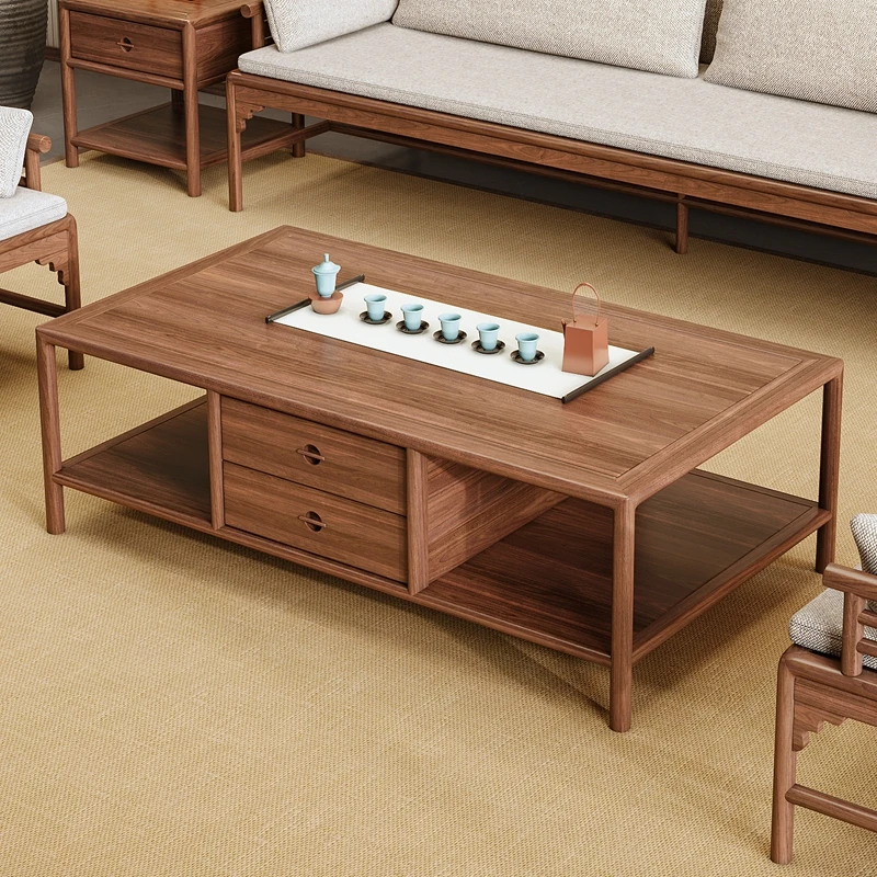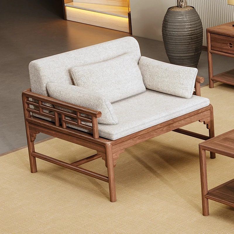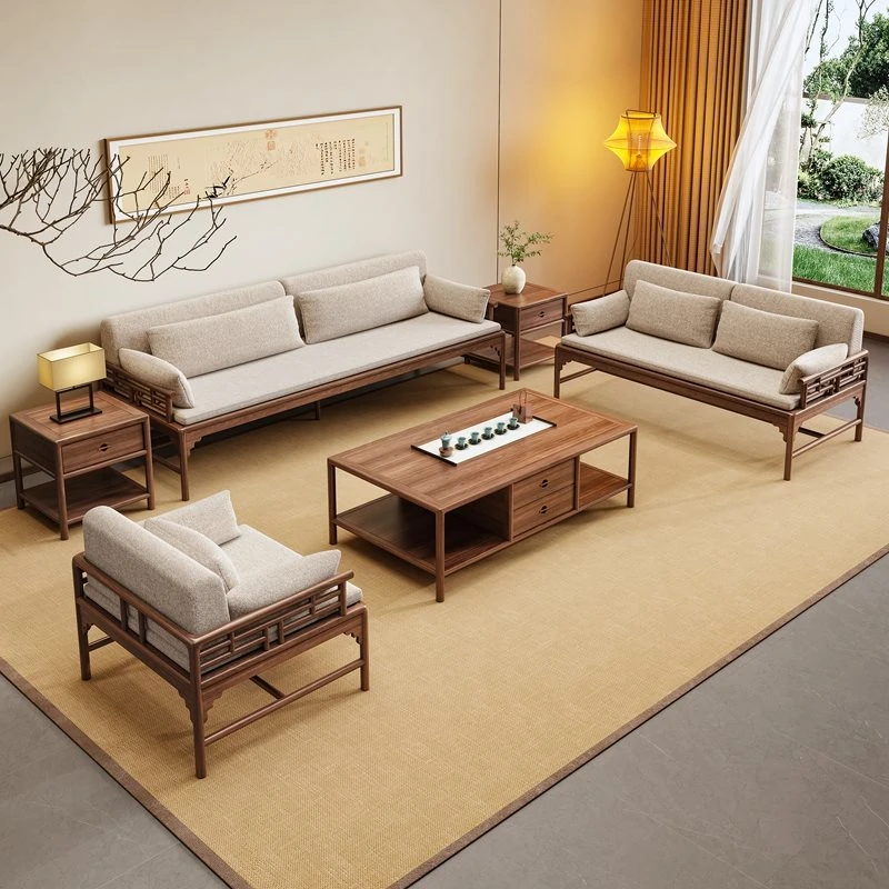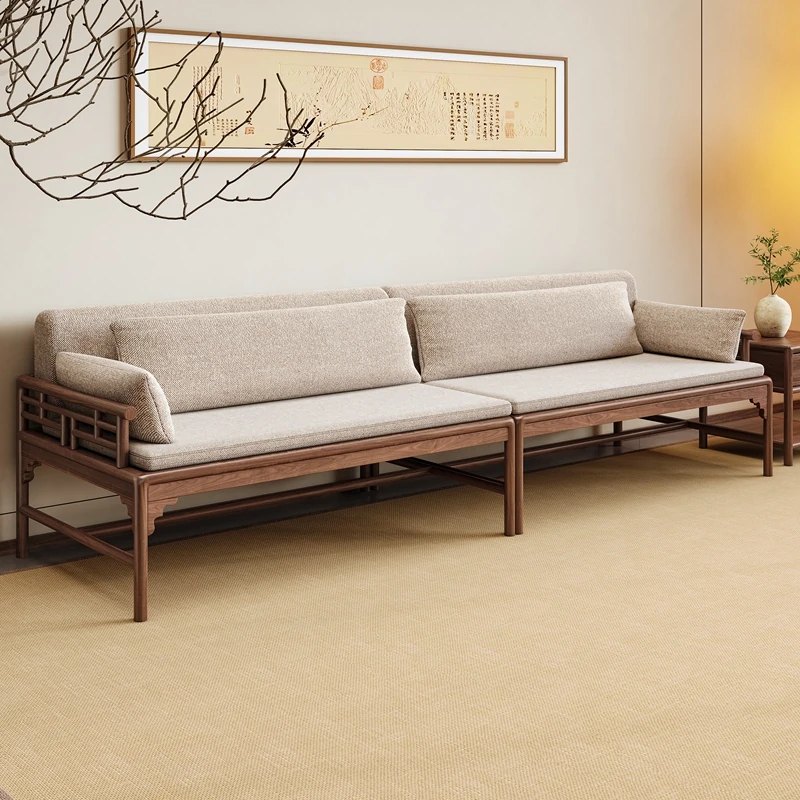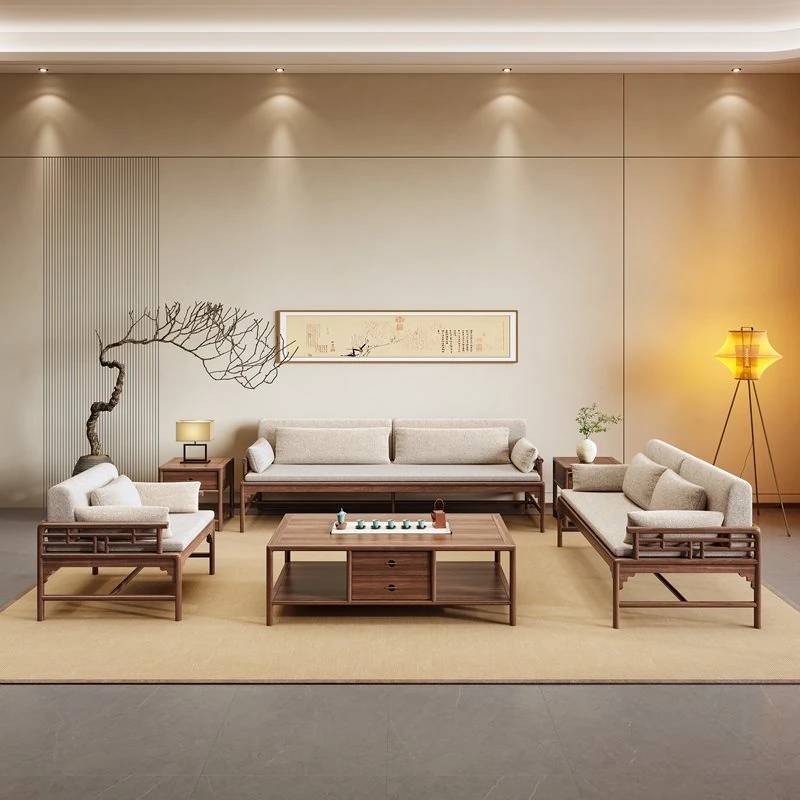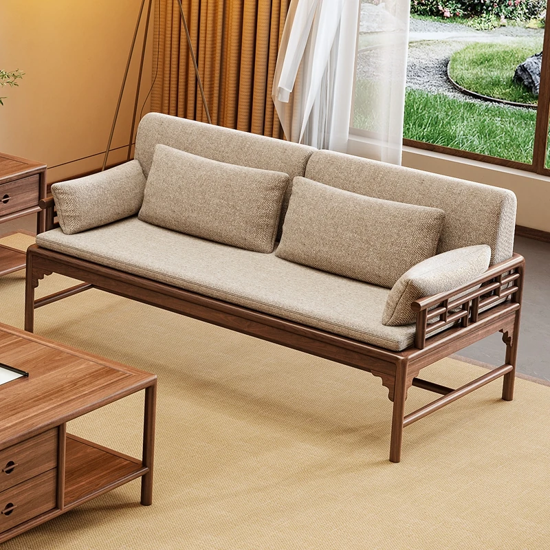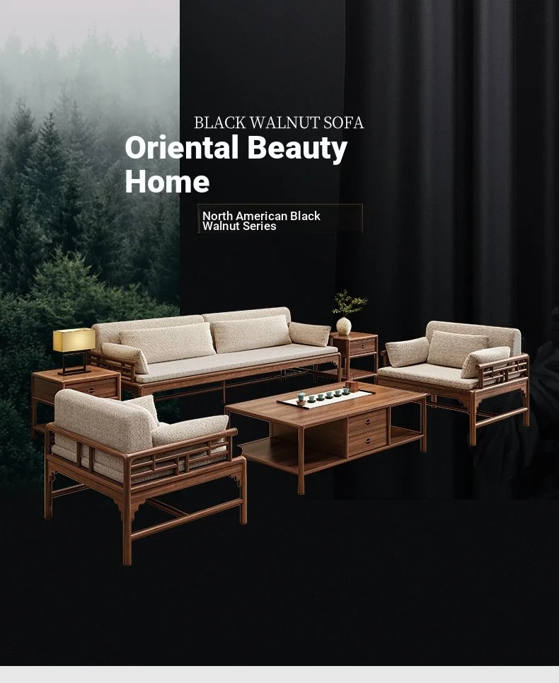 Tian Tan Furniture New Chinese Style North American Black Walnut Sofa - Song Aesthetic for Office, Zen Villa, and Elegant Living Room Decor