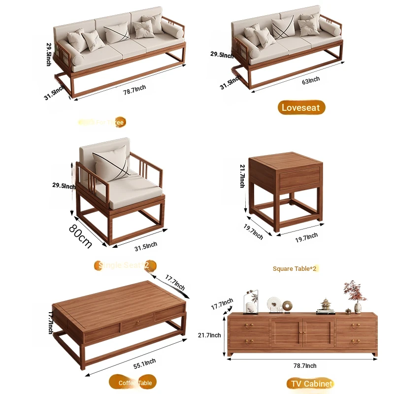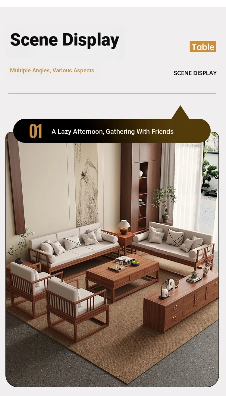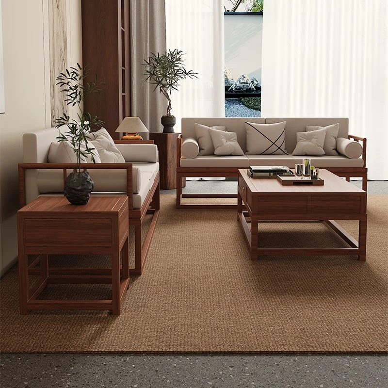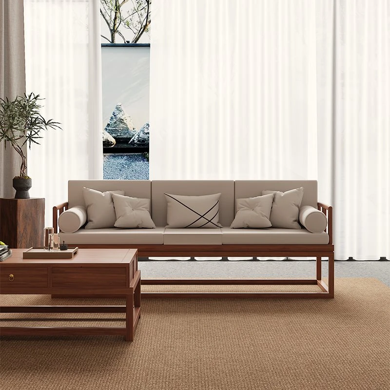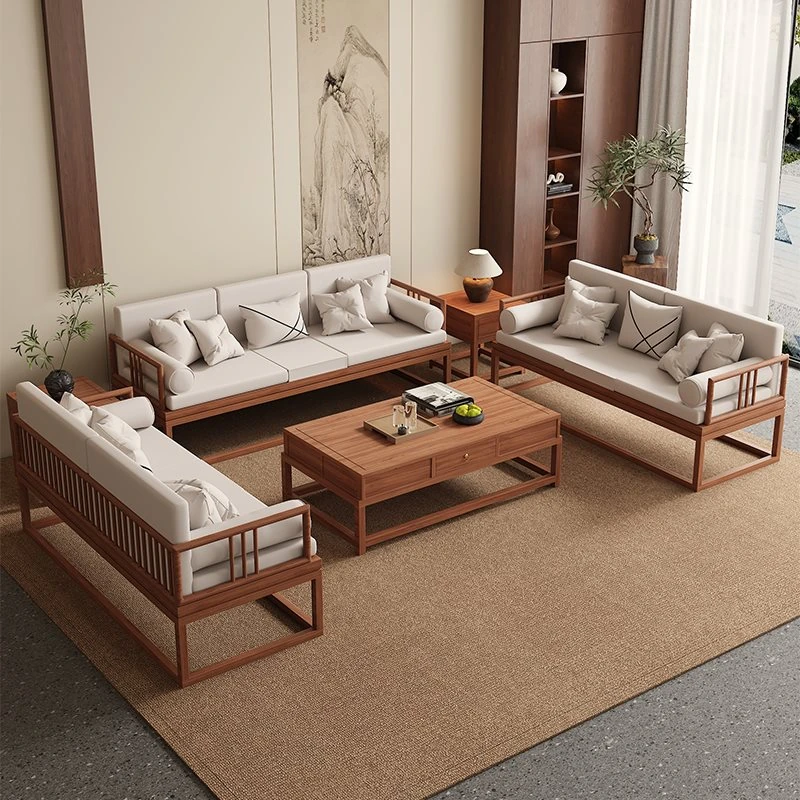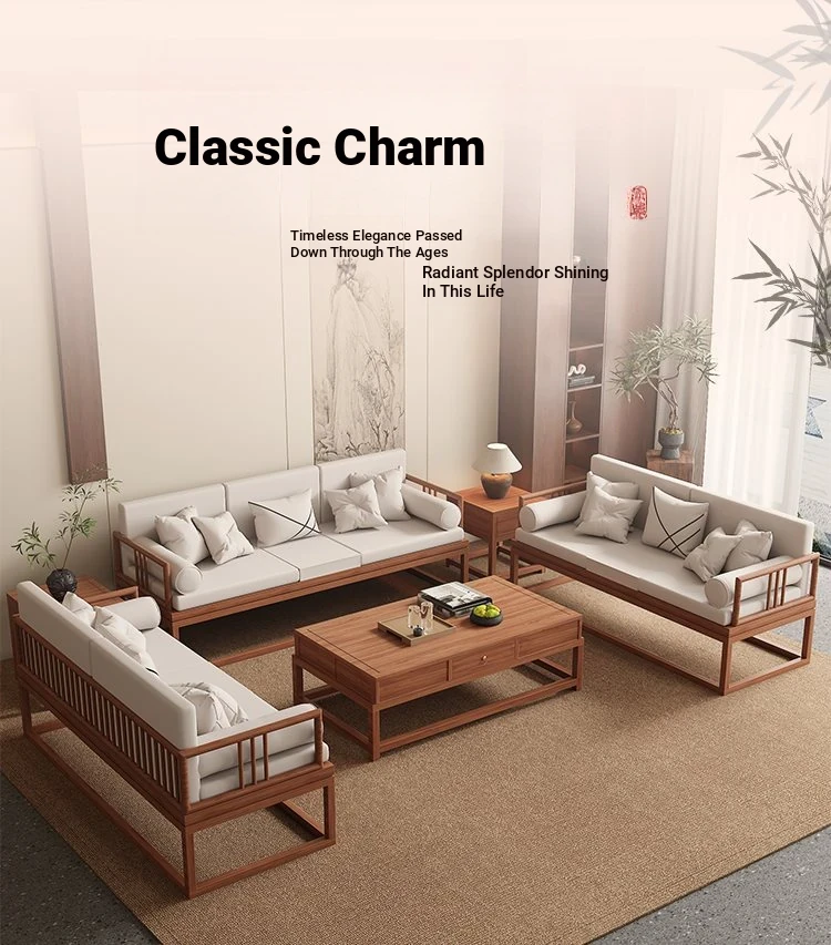 TianTan Furniture New Chinese Style Solid Wood Sofa Set - Zen-Inspired Natural Wood Living Room Furniture for Home - Perfect for Cozy Gatherings and Elegant Décor