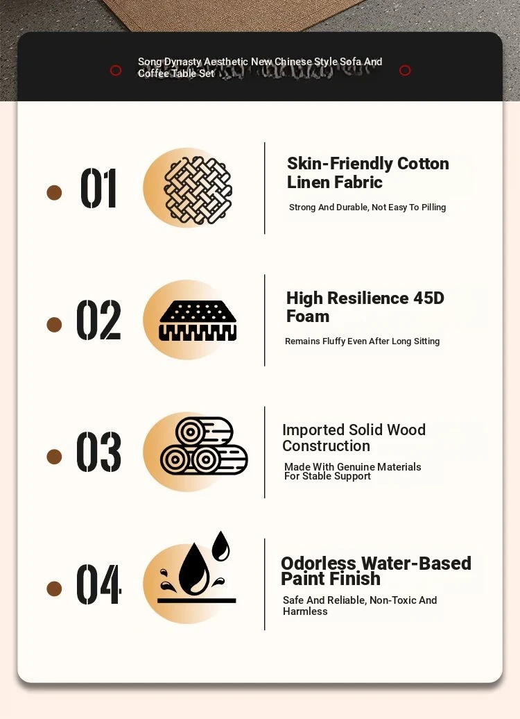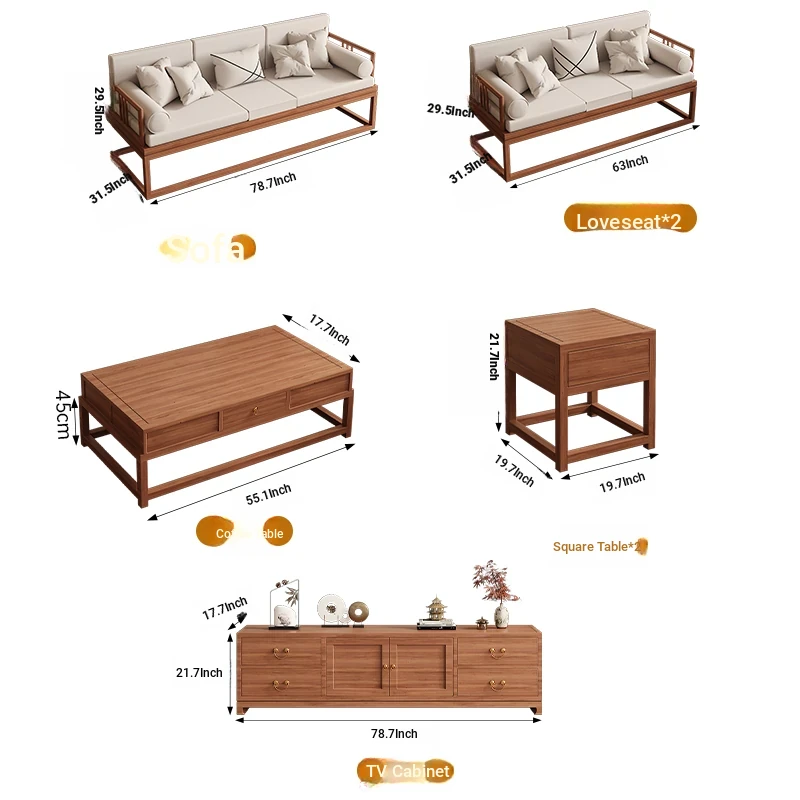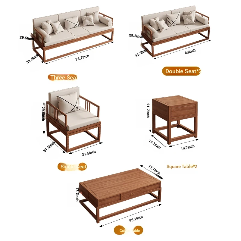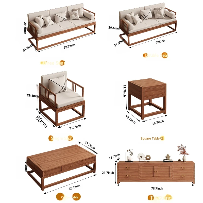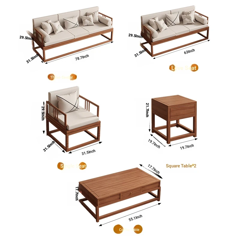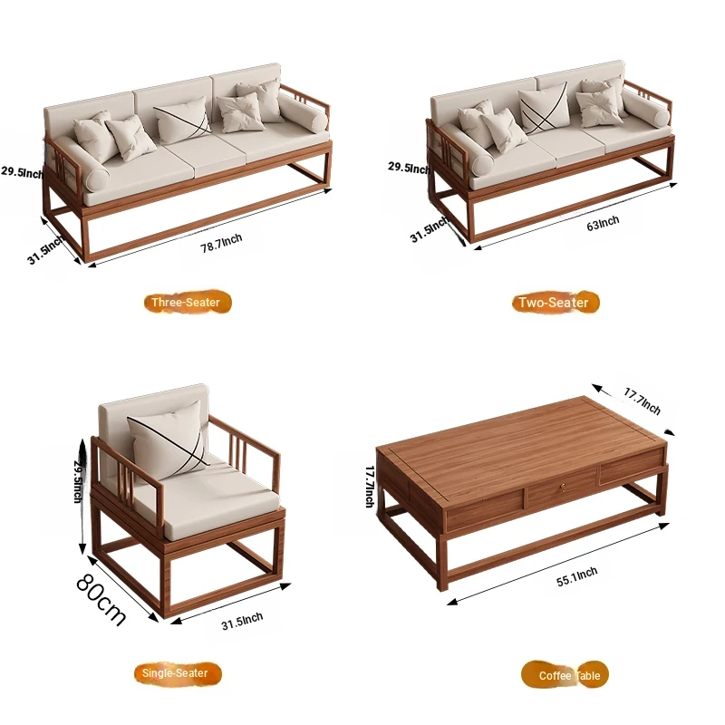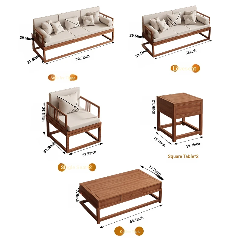 TianTan Furniture New Chinese Style Solid Wood Sofa Set - Zen-Inspired Natural Wood Living Room Furniture for Home - Perfect for Cozy Gatherings and Elegant Décor