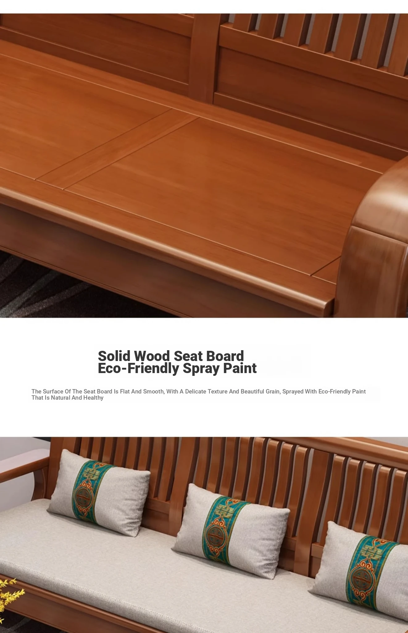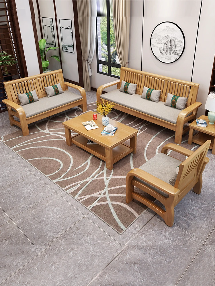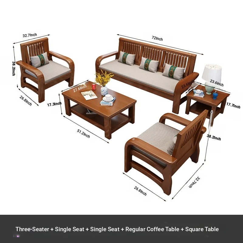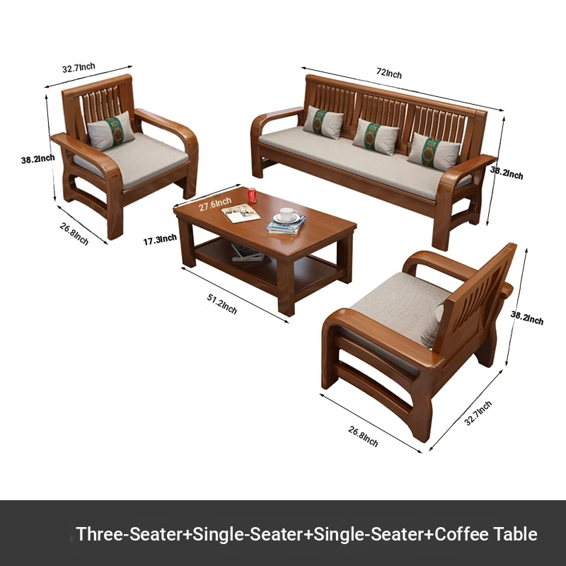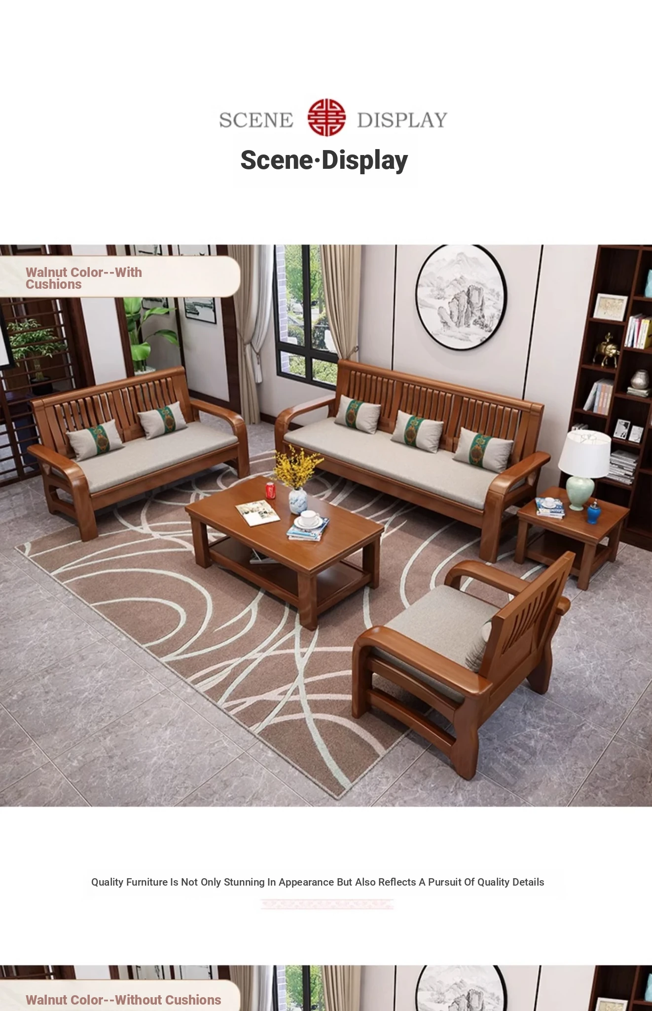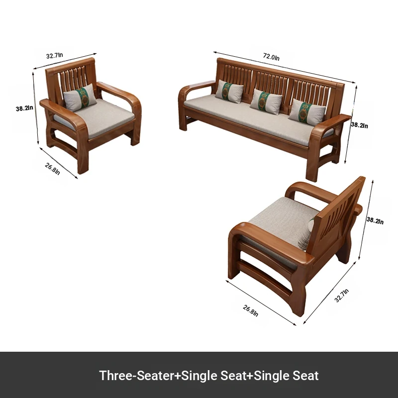 Versatile Solid Wood Sofa Set (1+2+3) - Modern Chinese Style 3-Seater Wooden Sofa for Living Room - Perfect for All Seasons, Elevate Your Home Decor with Elegant New Chinese Furniture