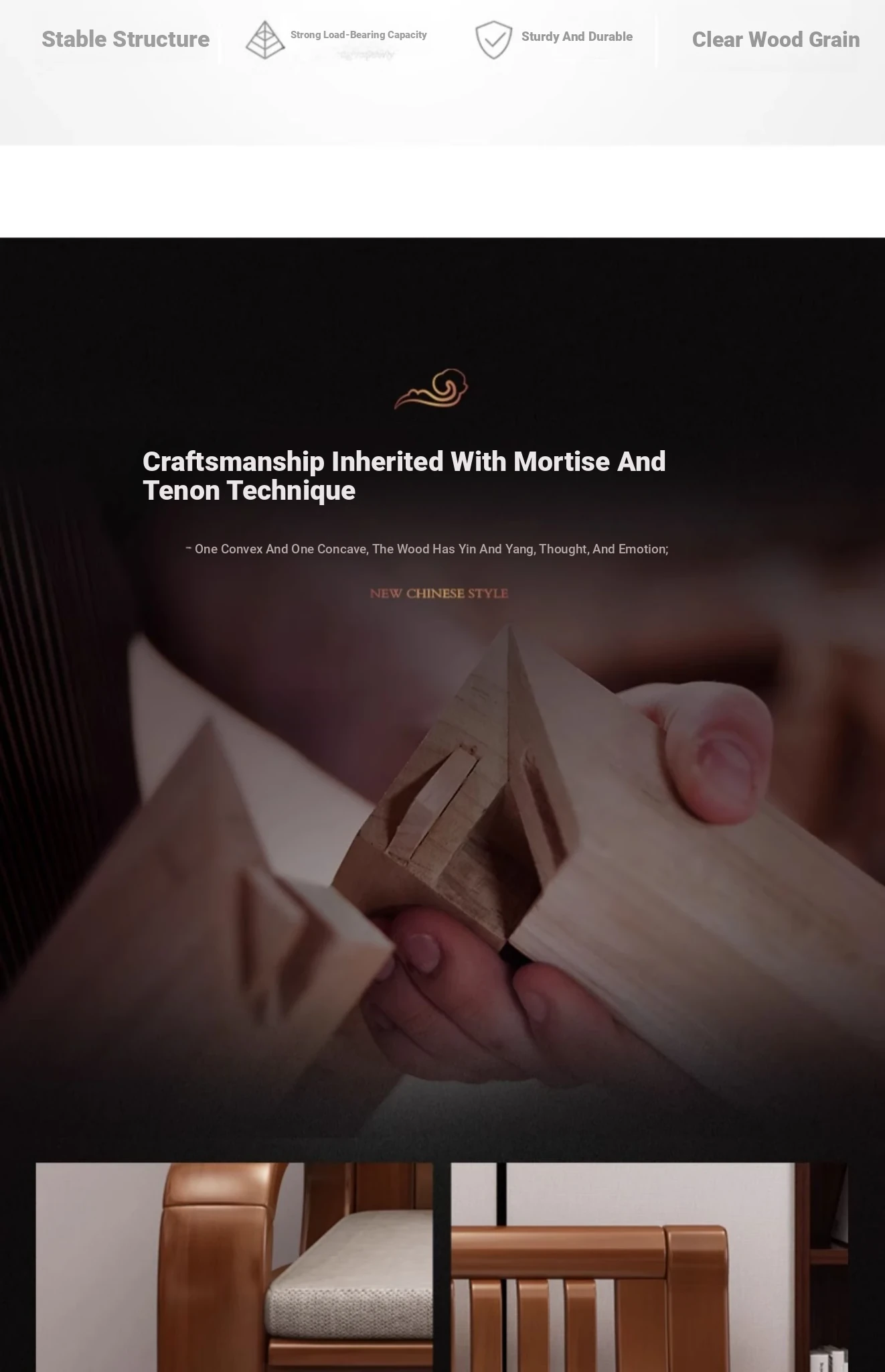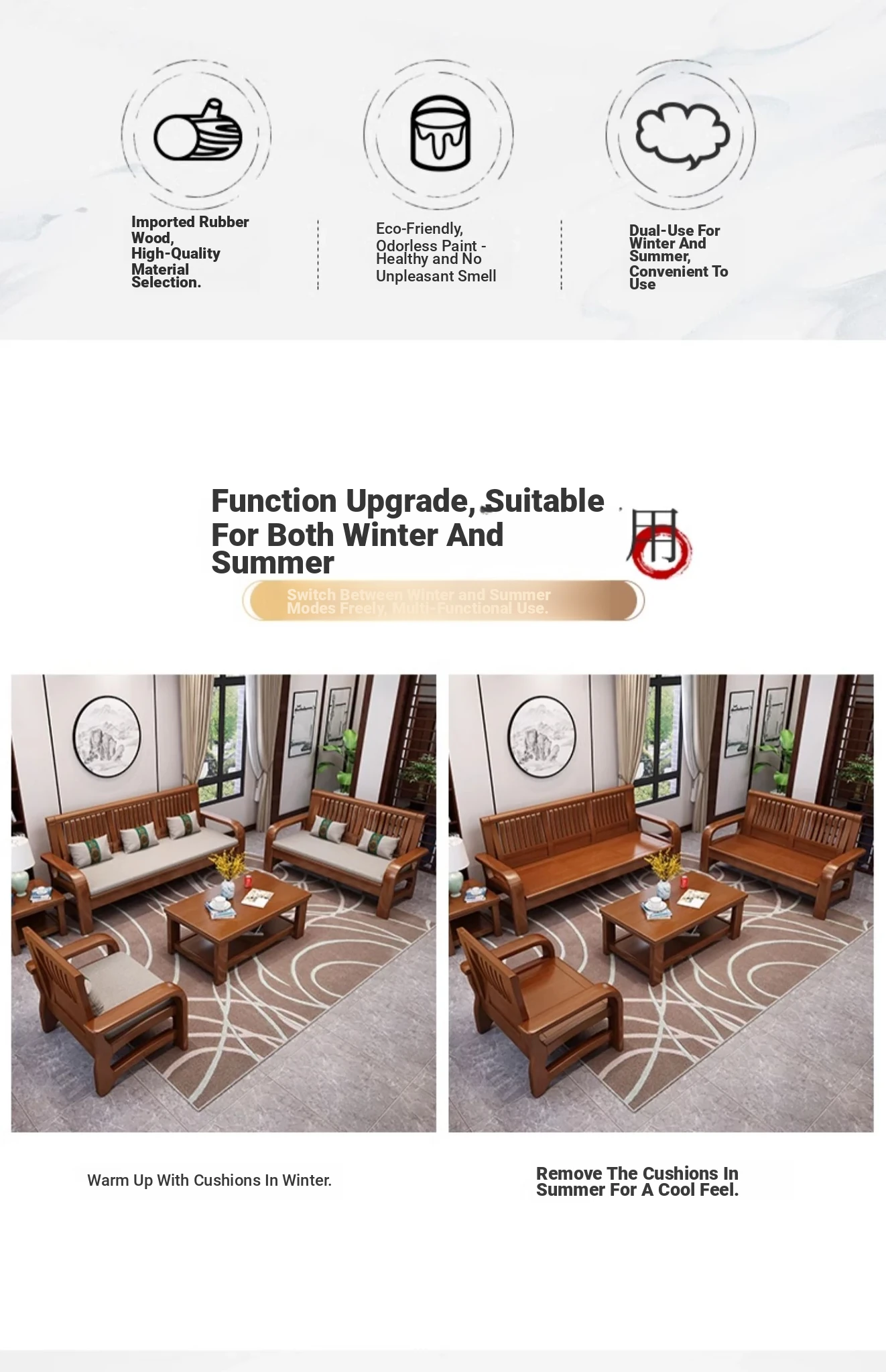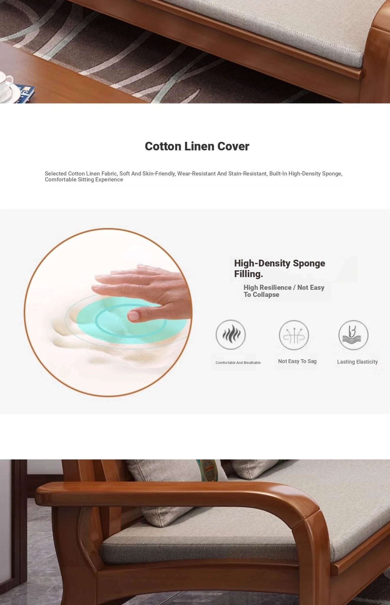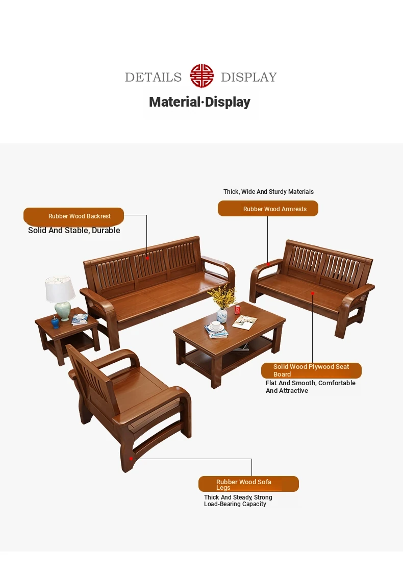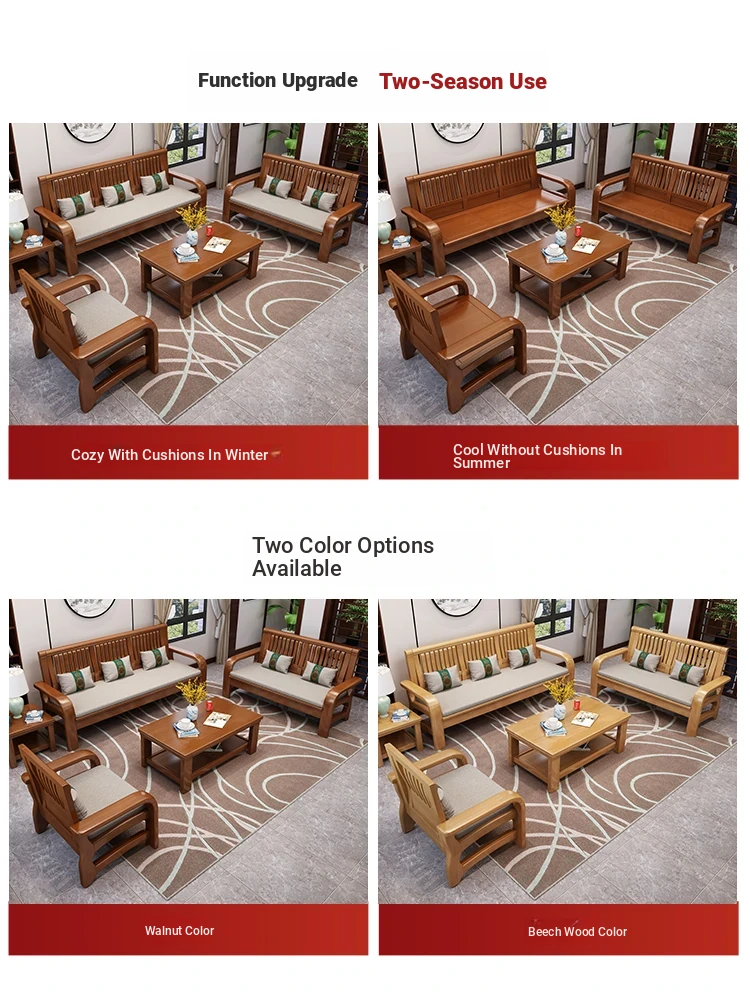 Versatile Solid Wood Sofa Set (1+2+3) - Modern Chinese Style 3-Seater Wooden Sofa for Living Room - Perfect for All Seasons, Elevate Your Home Decor with Elegant New Chinese Furniture