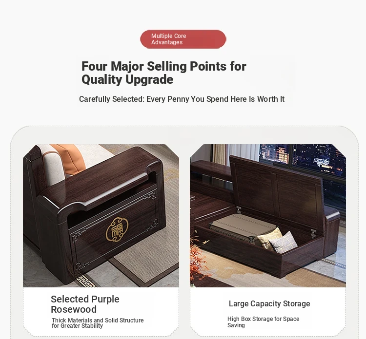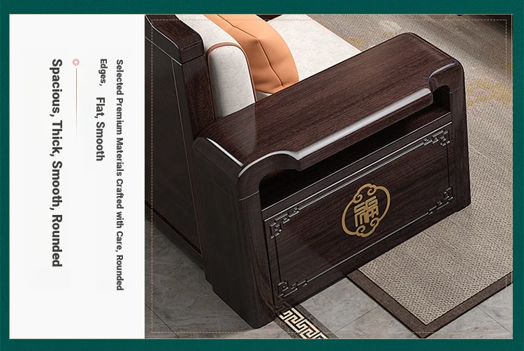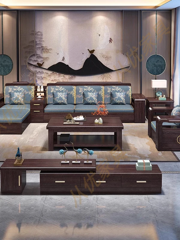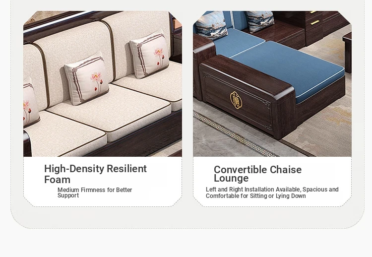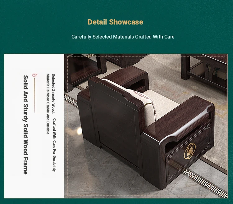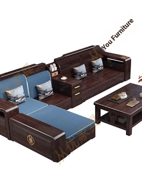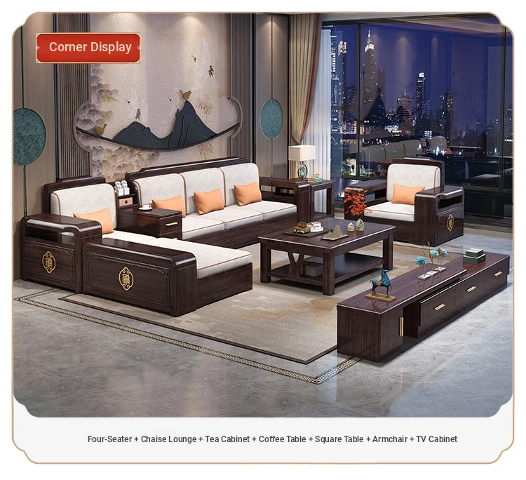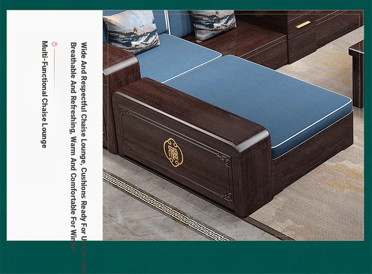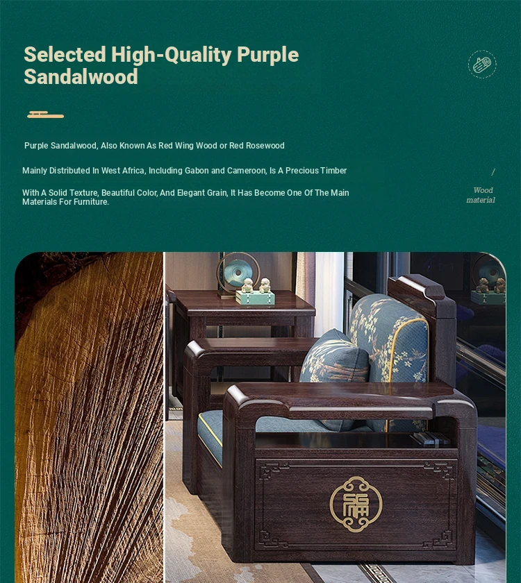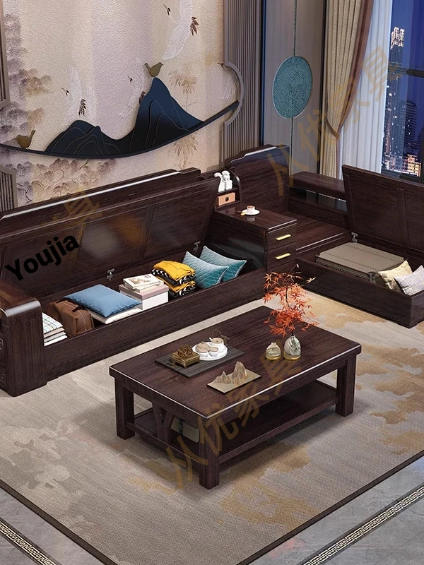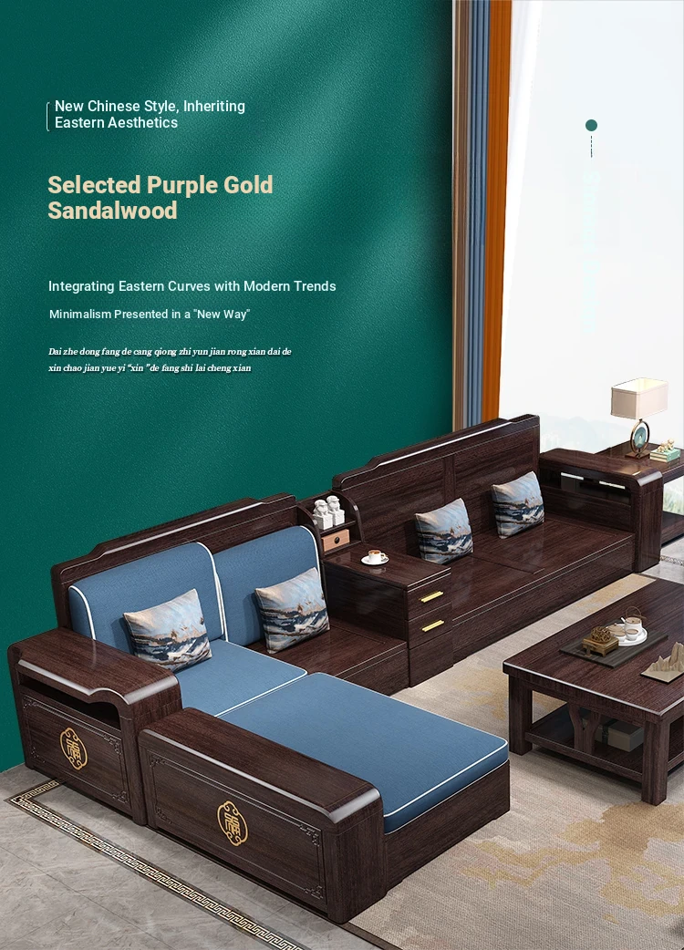 Versatile Solid Wood Sofa Set in Chinese Style - Purple Gold Sandalwood, Perfect for All Seasons. Features a Stylish Corner Chaise with Storage, Ideal for Large and Small Living Rooms. Elevate Your Home Décor with this Functional and Elegant Furniture