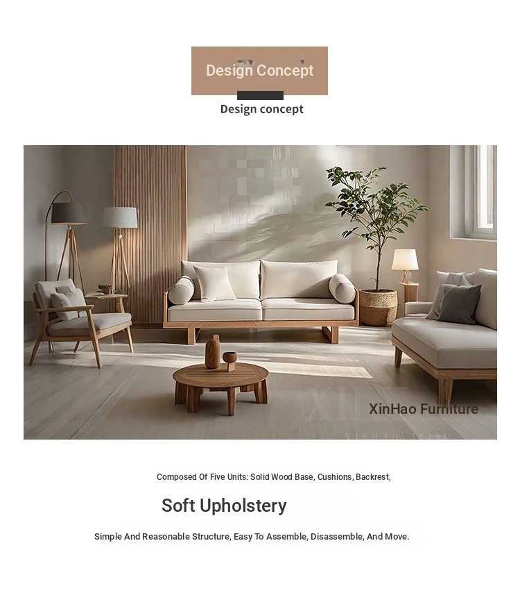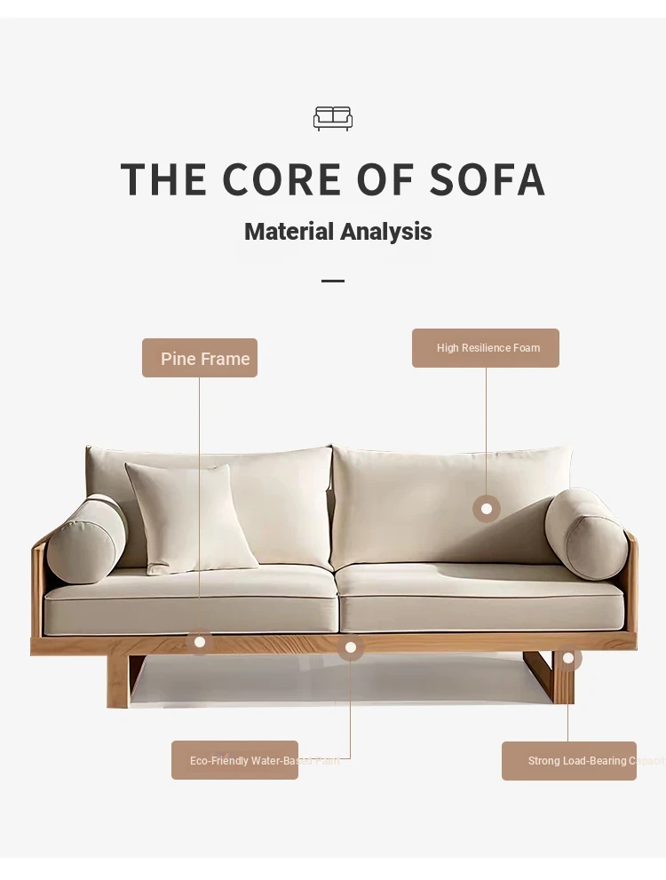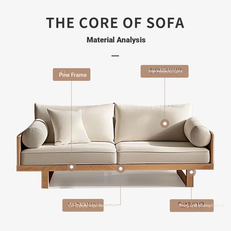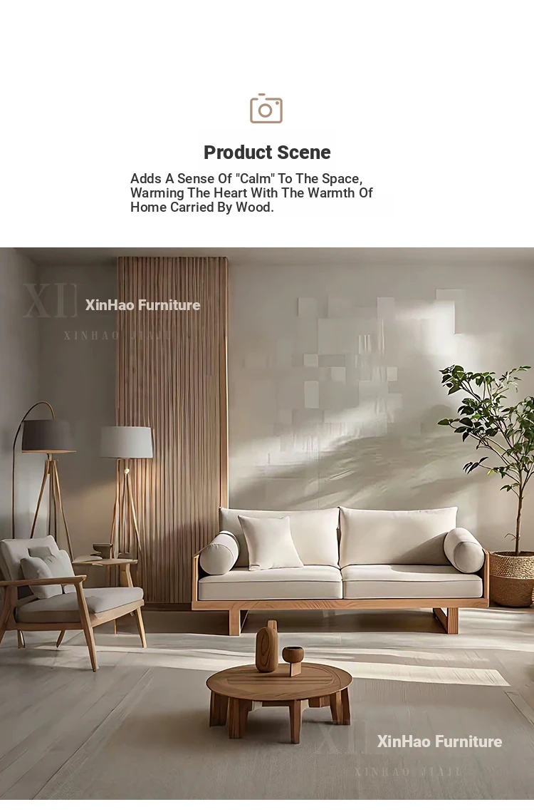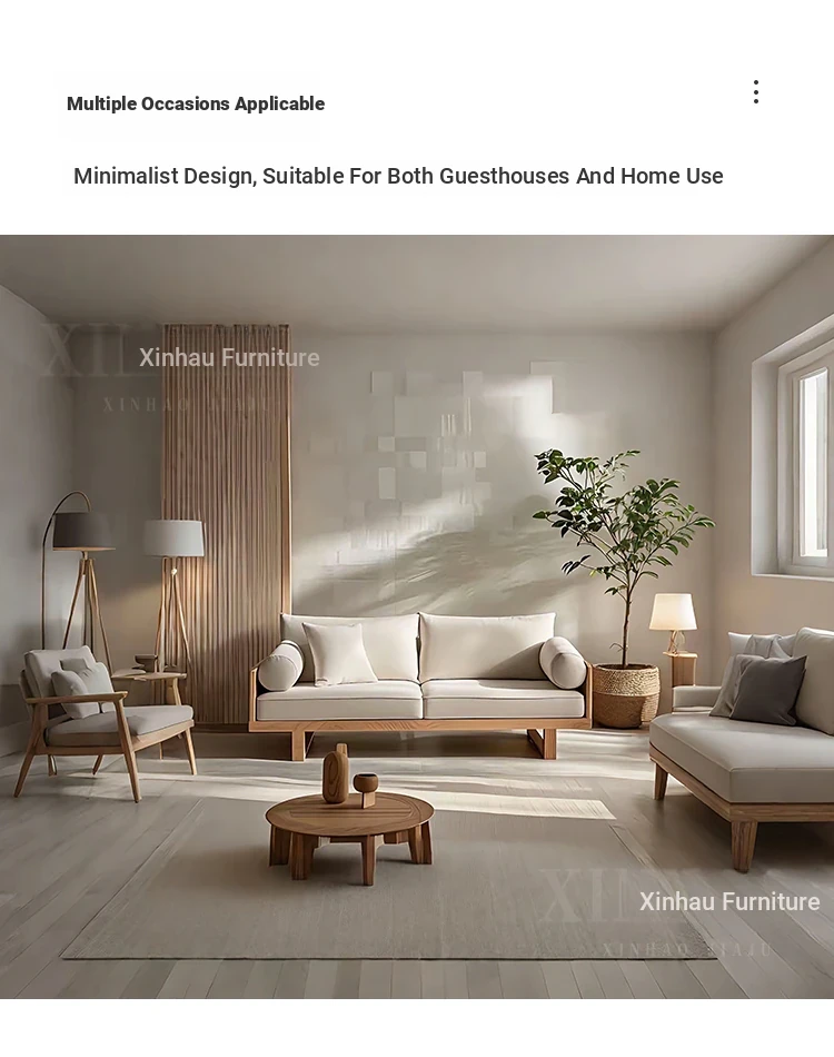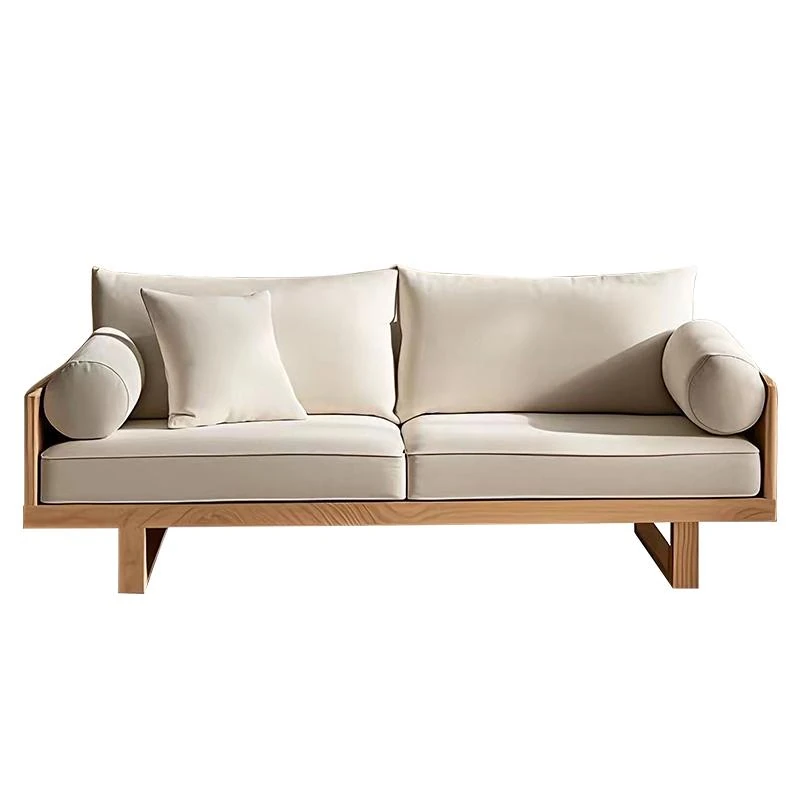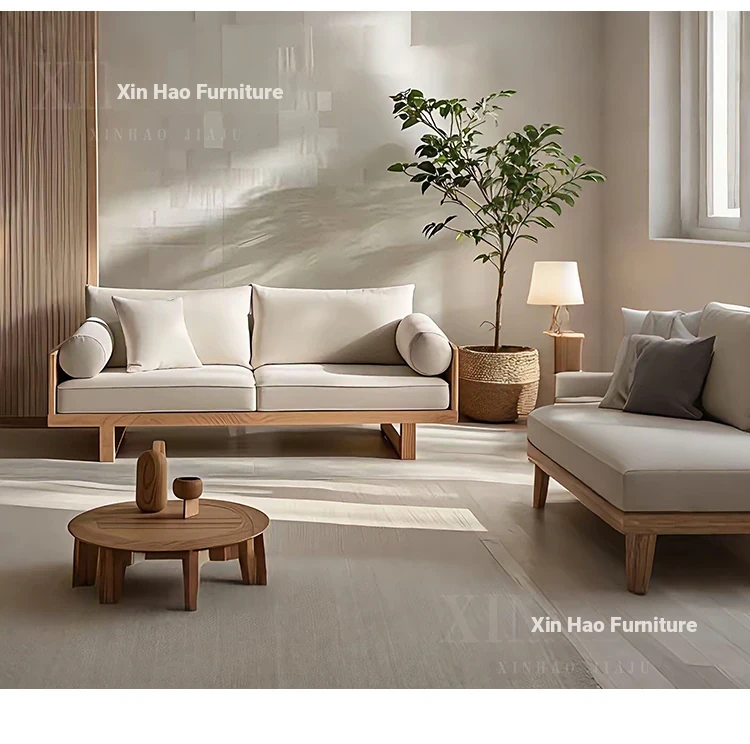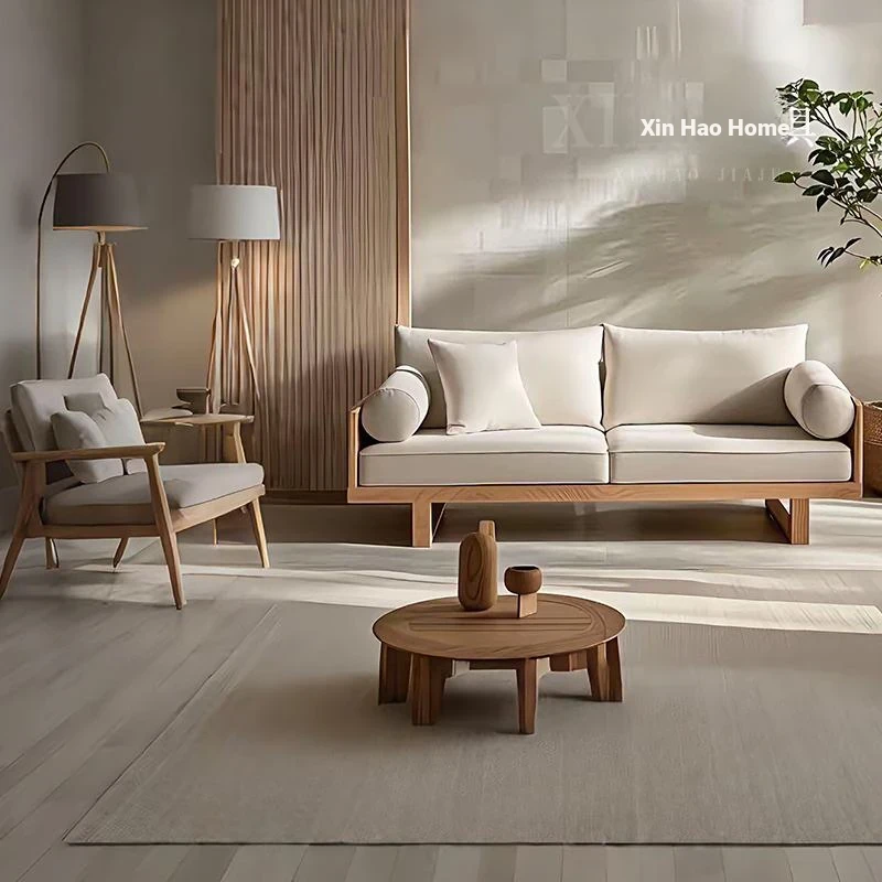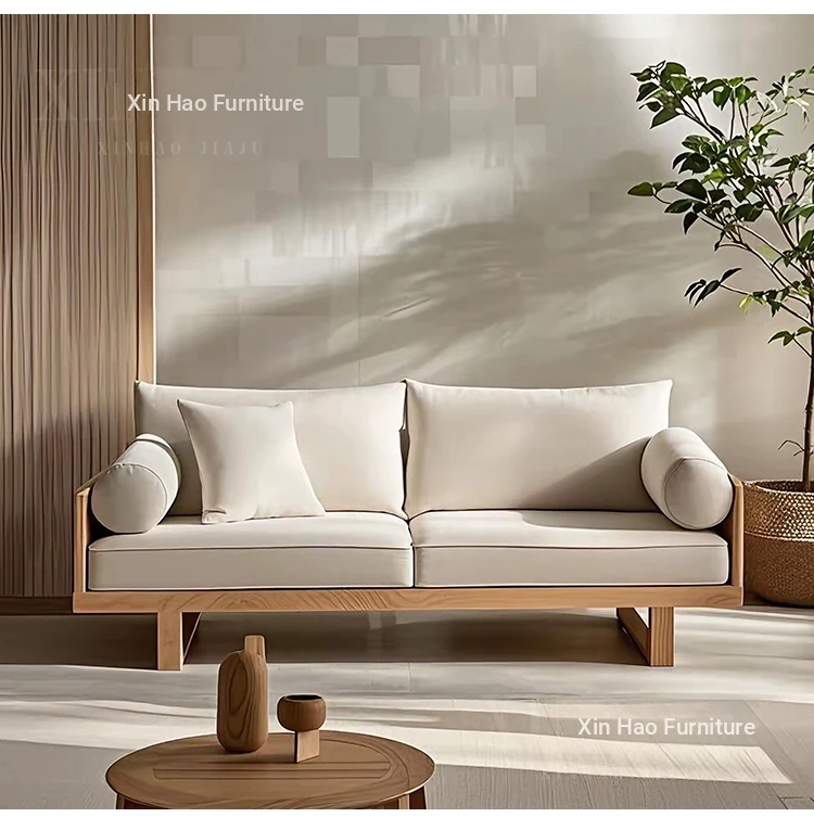 Wabi-Sabi Style Solid Wood Sofa for Living Room – 2-Seater & 3-Seater Options, Original Wood Design for Boutique Hotels, Removable and Washable Fabric, Armrest Included – Perfect Blend of Aesthetics and Functionality!