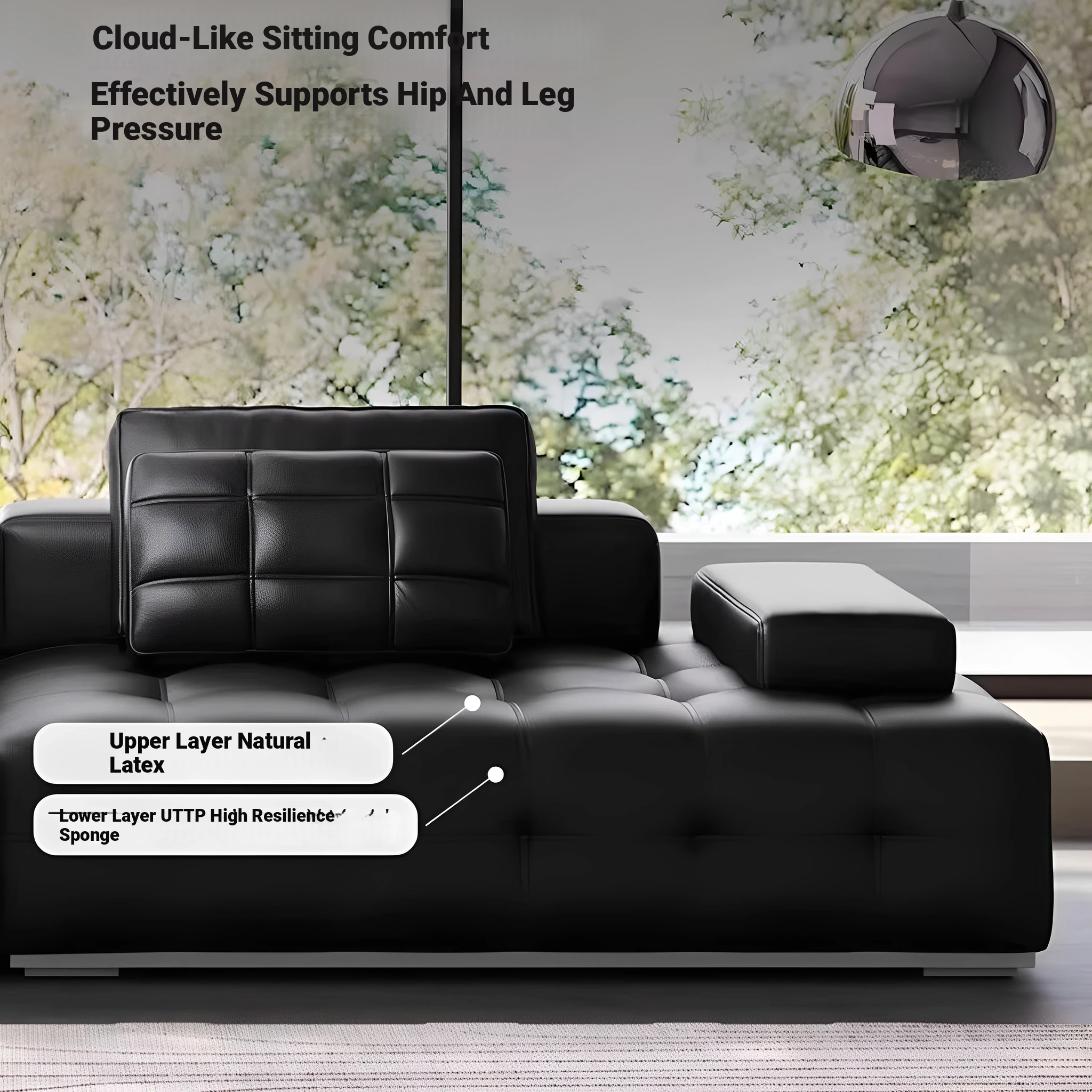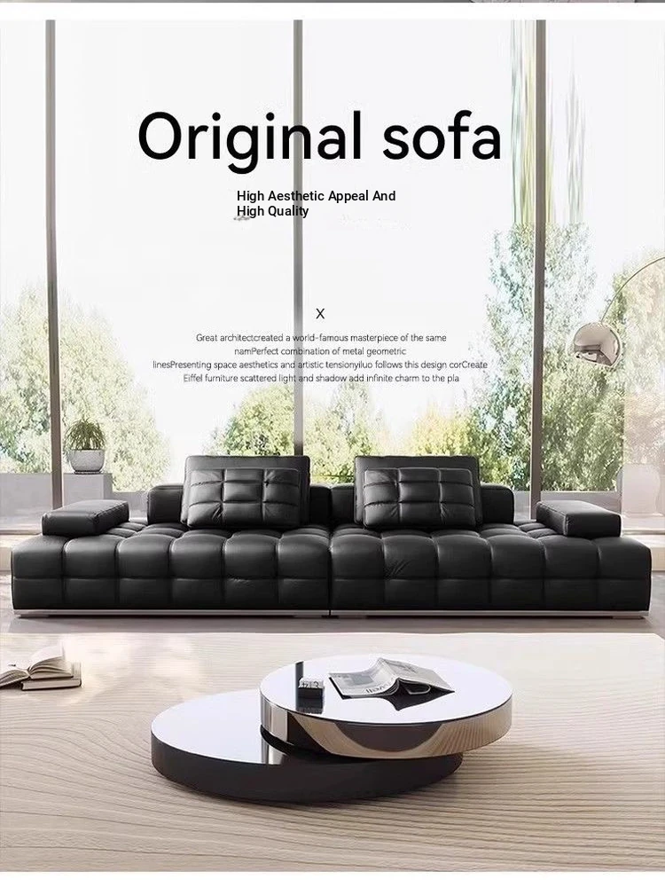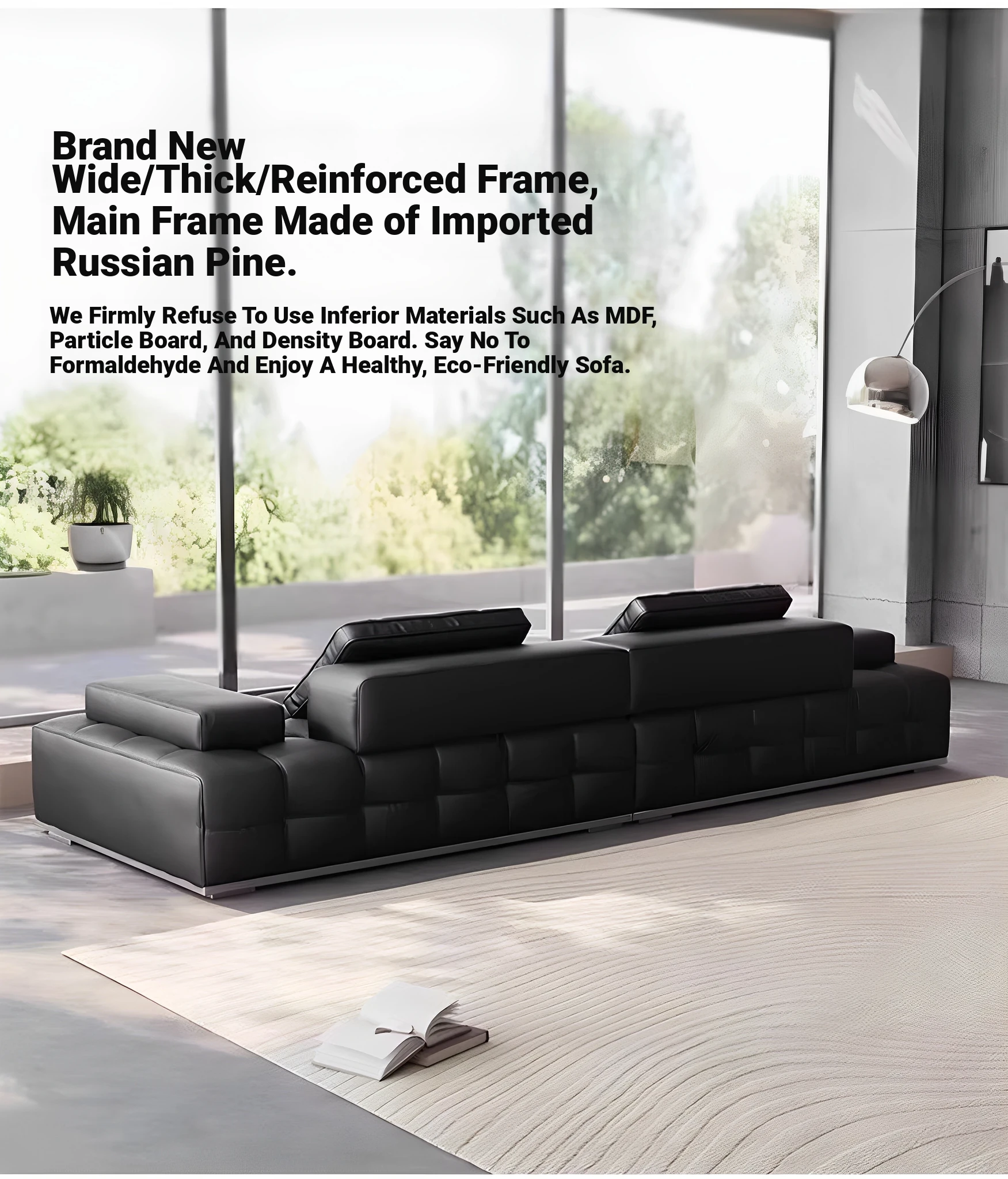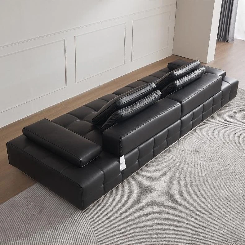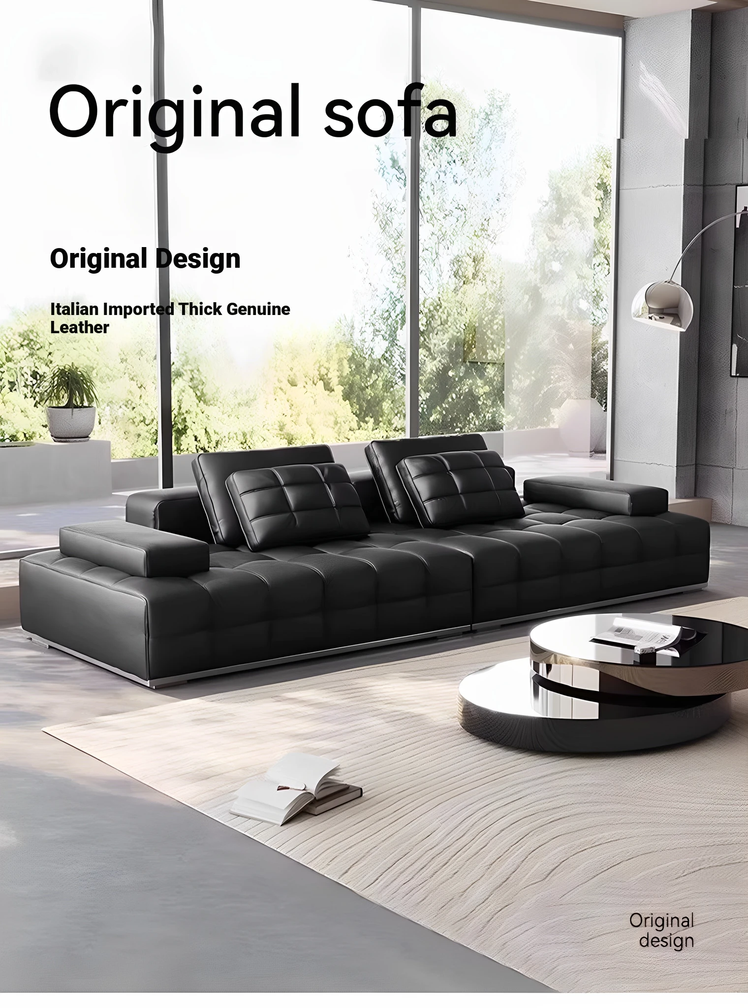 Yunran Lawrence Italian Minimalist Genuine Leather Sofa - Luxurious Black Upholstered Couch for Living Room, Sleek Straight-Line Design