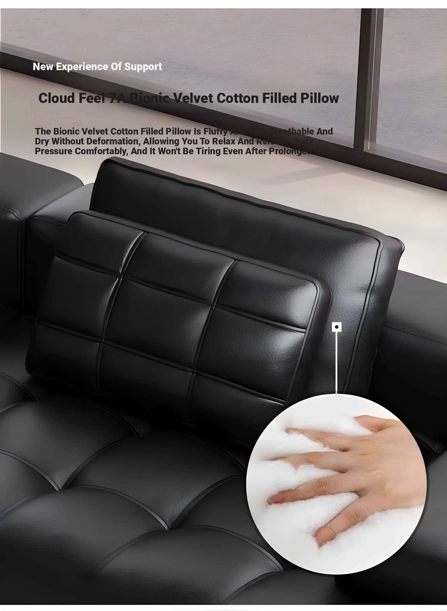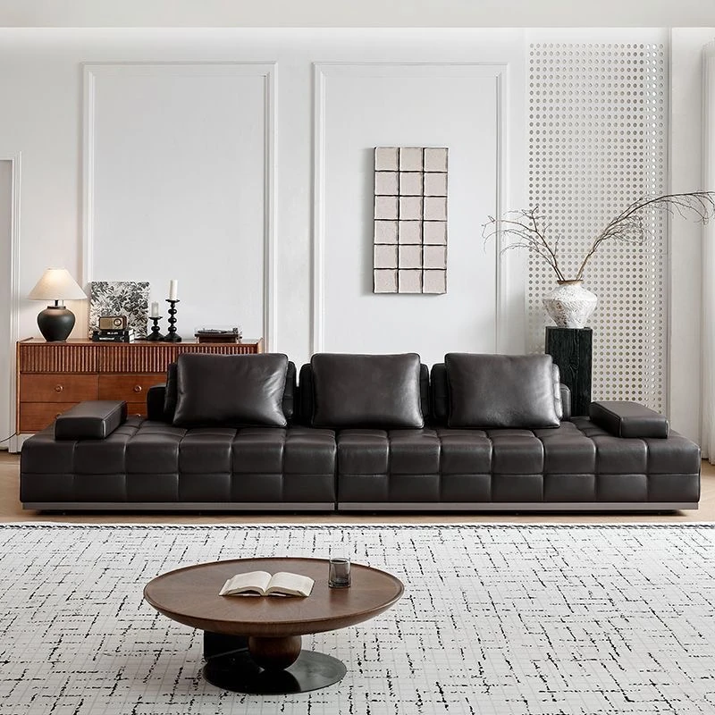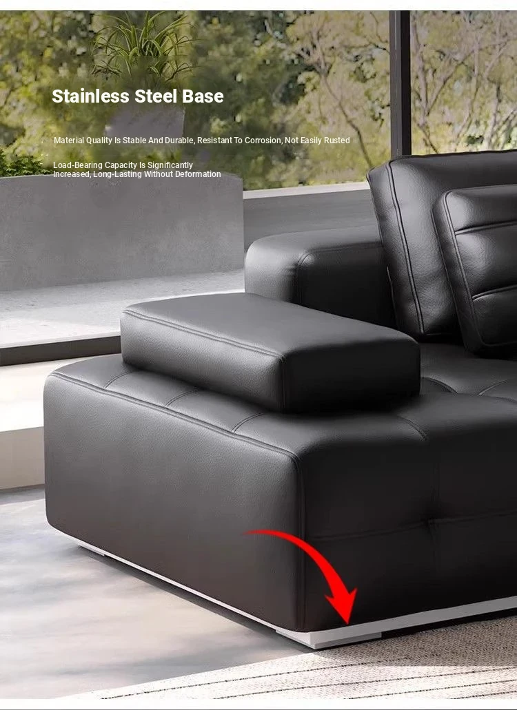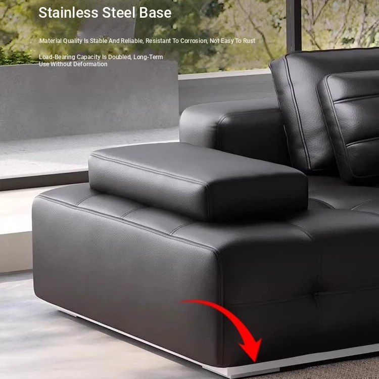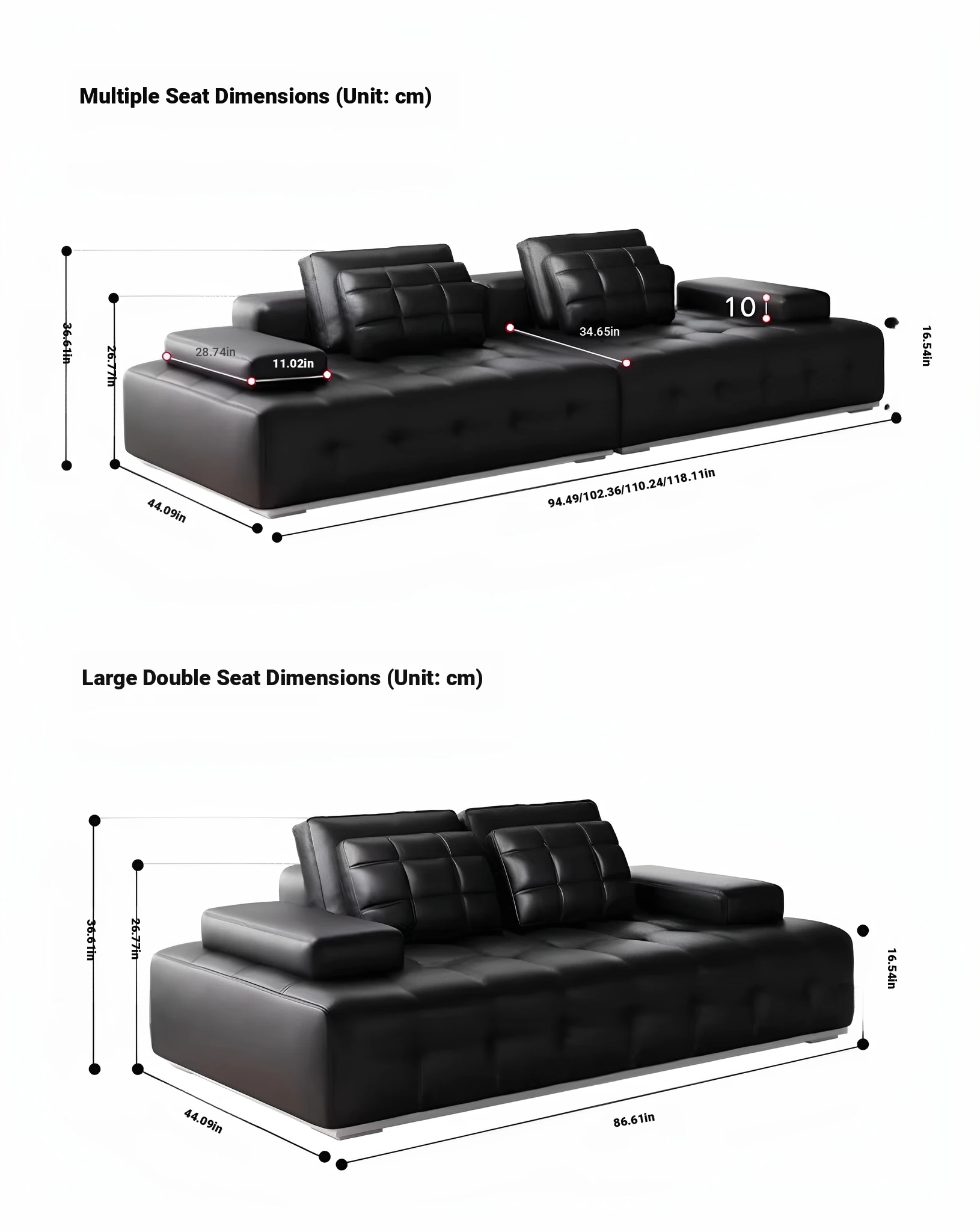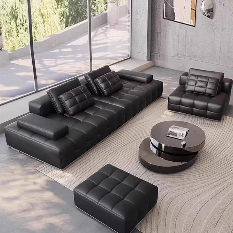 Yunran Lawrence Italian Minimalist Genuine Leather Sofa - Luxurious Black Upholstered Couch for Living Room, Sleek Straight-Line Design