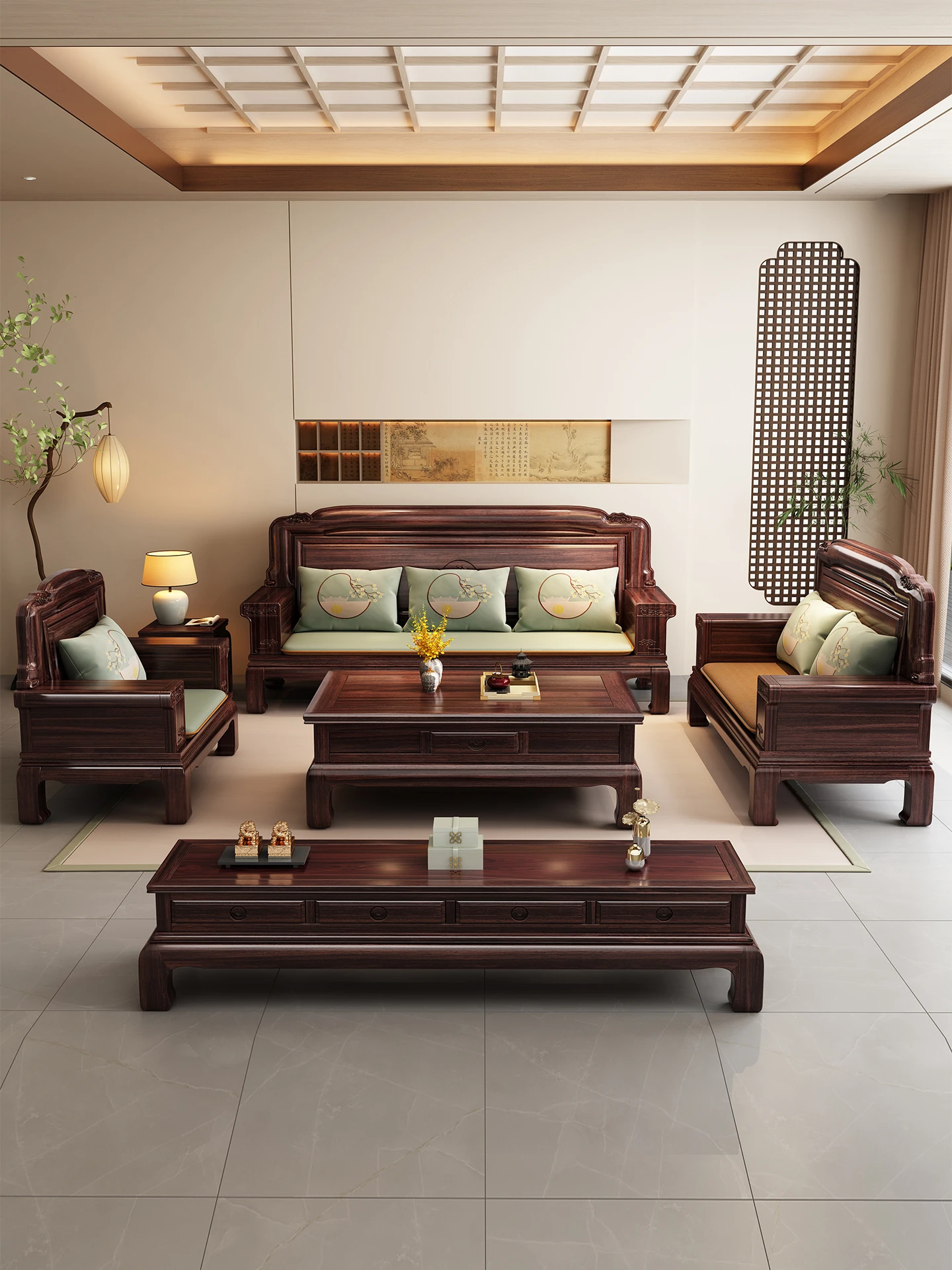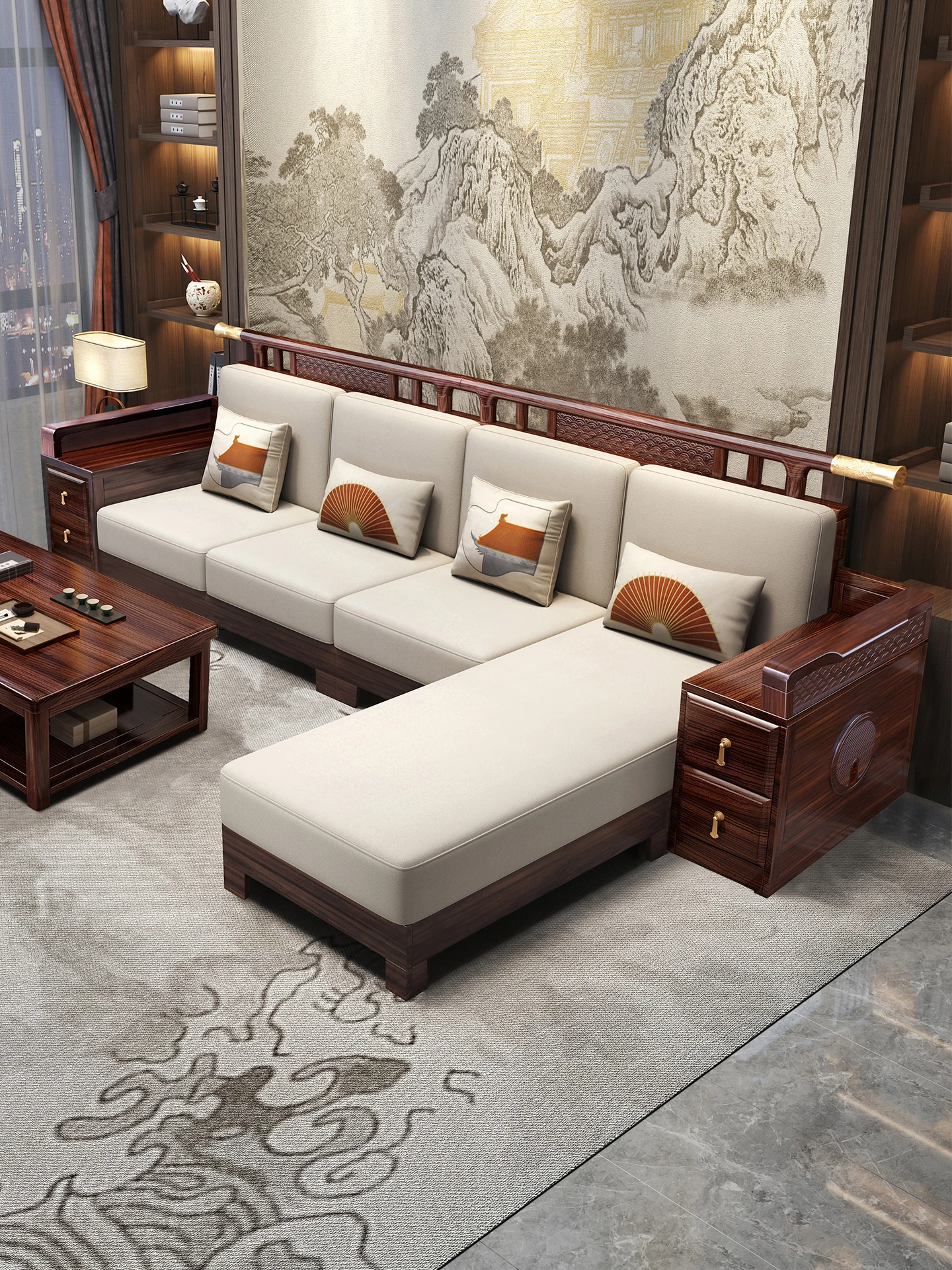 Elegant Modern Chinese Solid Blackwood Sofa Set - Luxurious Corner Combination for Contemporary Living Rooms with Simplistic Chinese Style Design