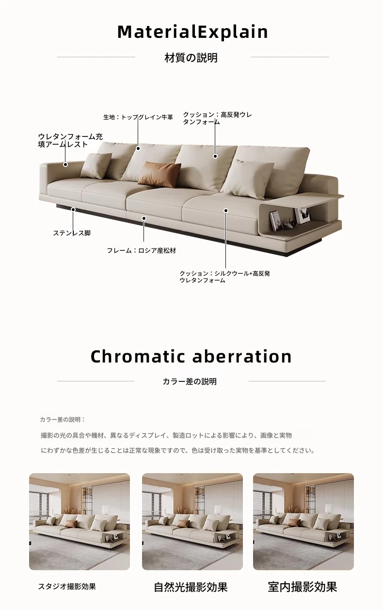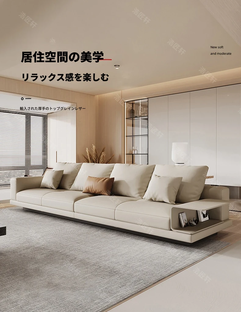 2024年新作!イタリアンミニマリズムソファ - 高級感あふれる本革(トップグレイン)使用の贅沢ソファ。別荘にもぴったりなストレートデザインで、洗練された空間を演出します。