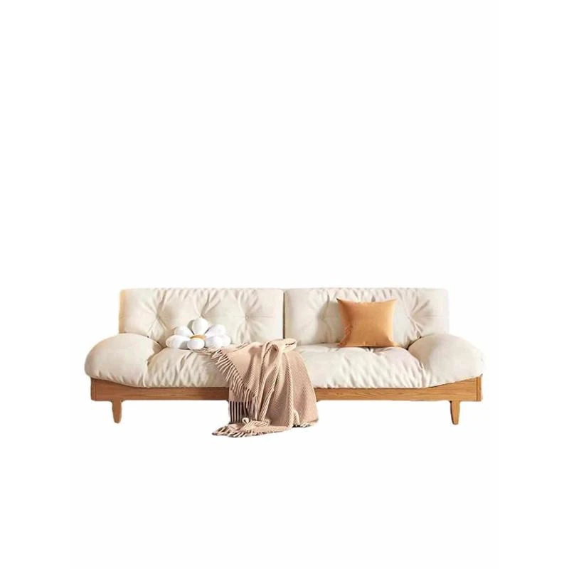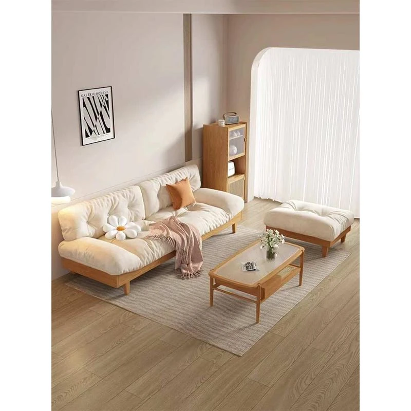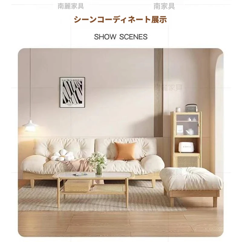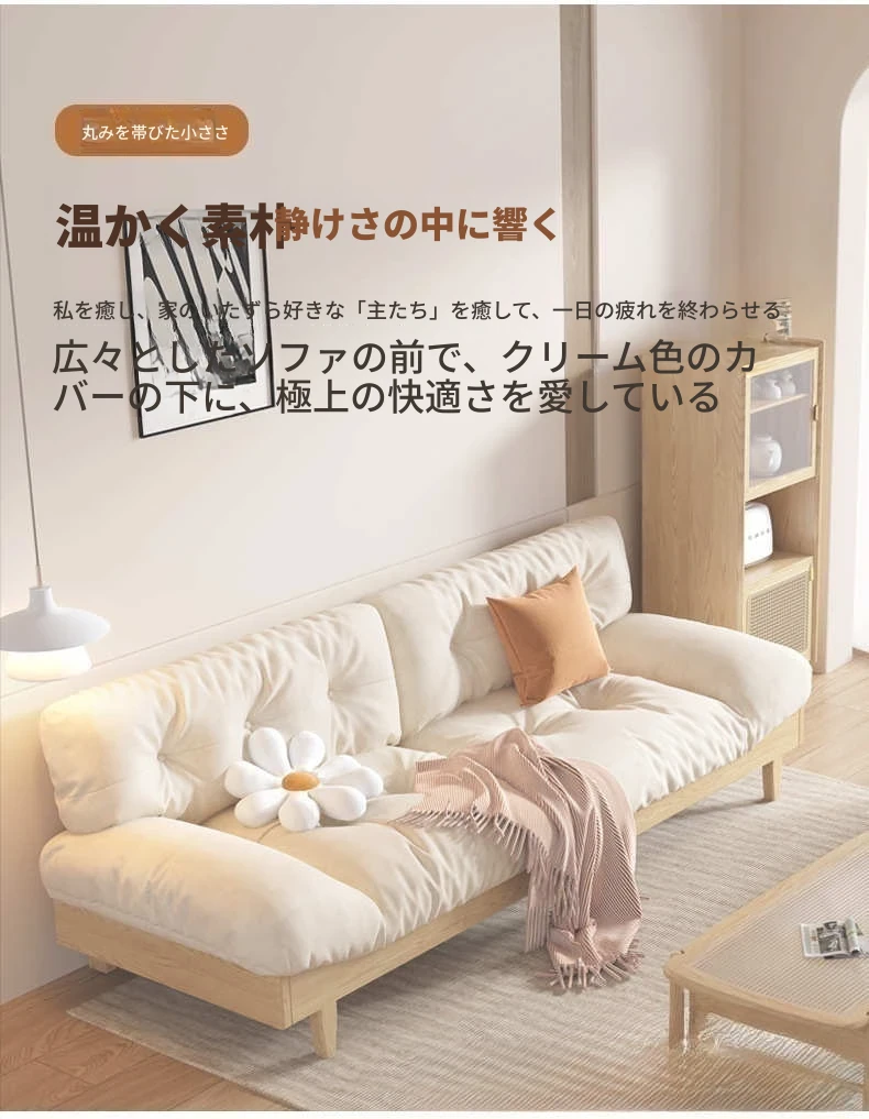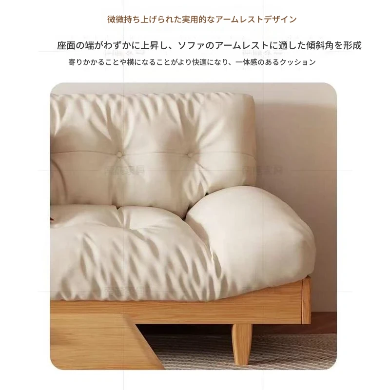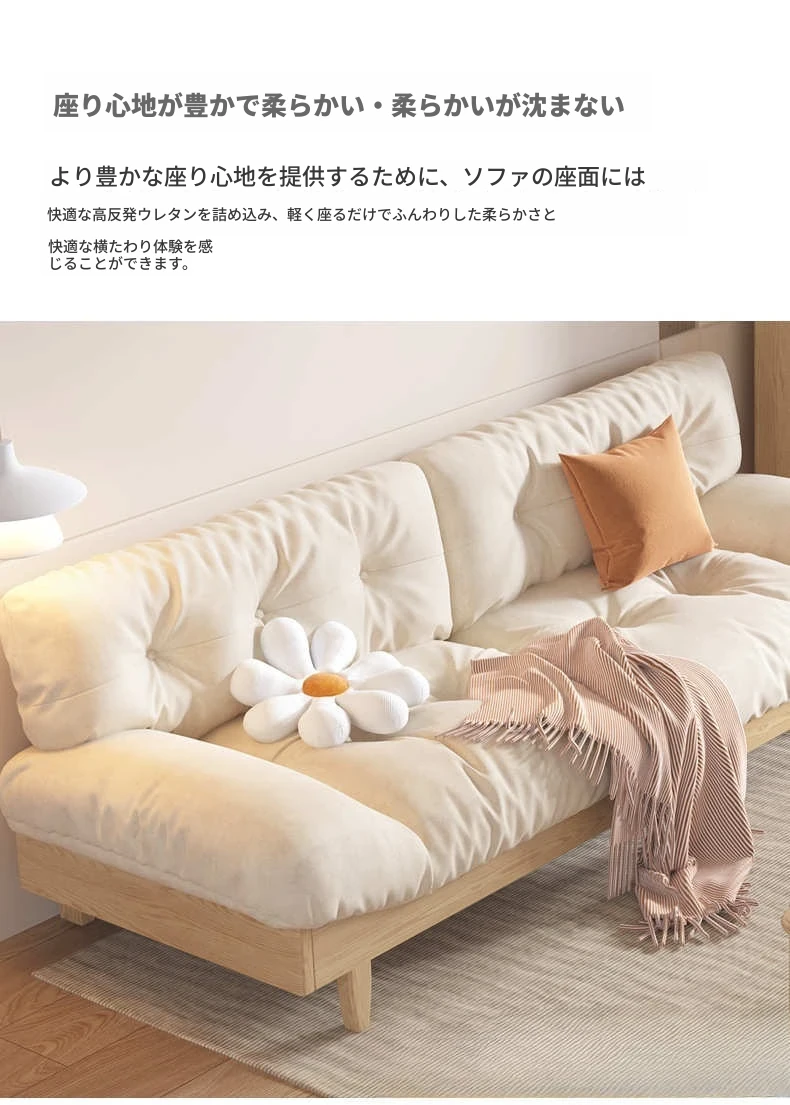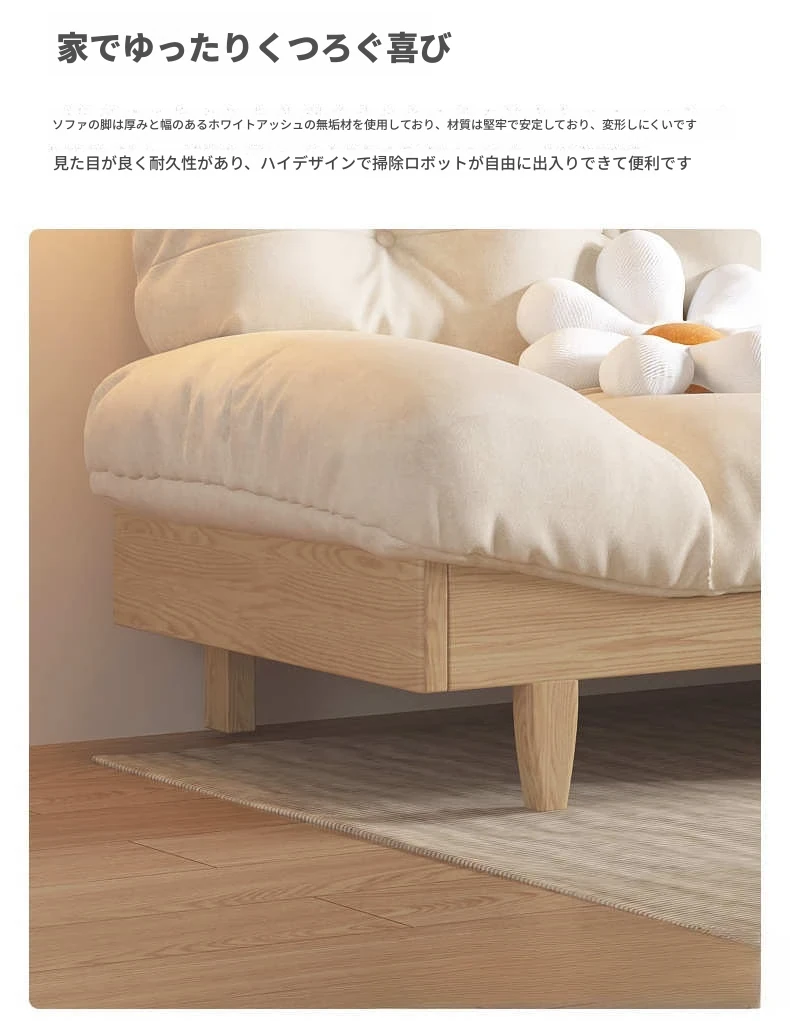 北欧スタイルのナチュラル木製クリームソファ 2024年新作 シンプルな和風デザイン 小型住居にぴったりのクラウドソファ
