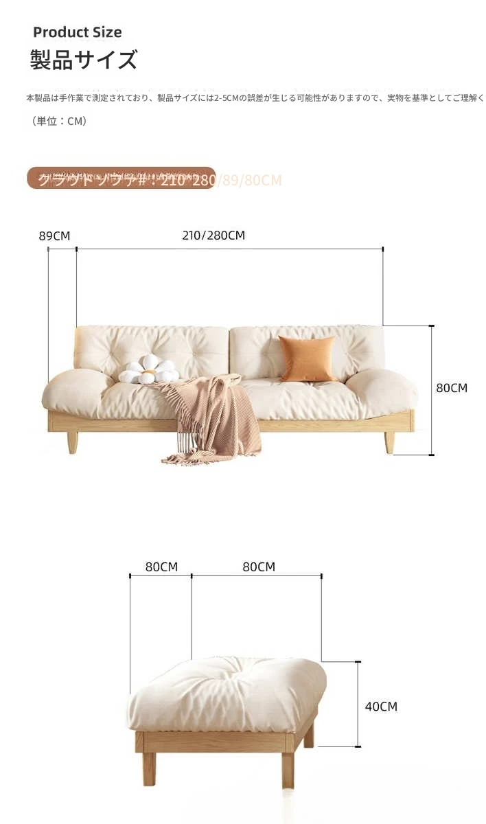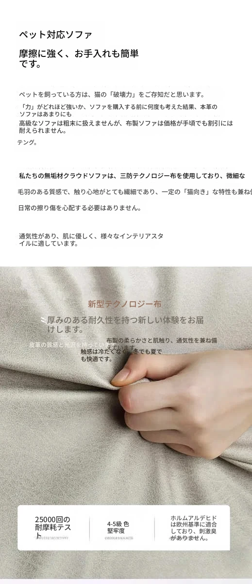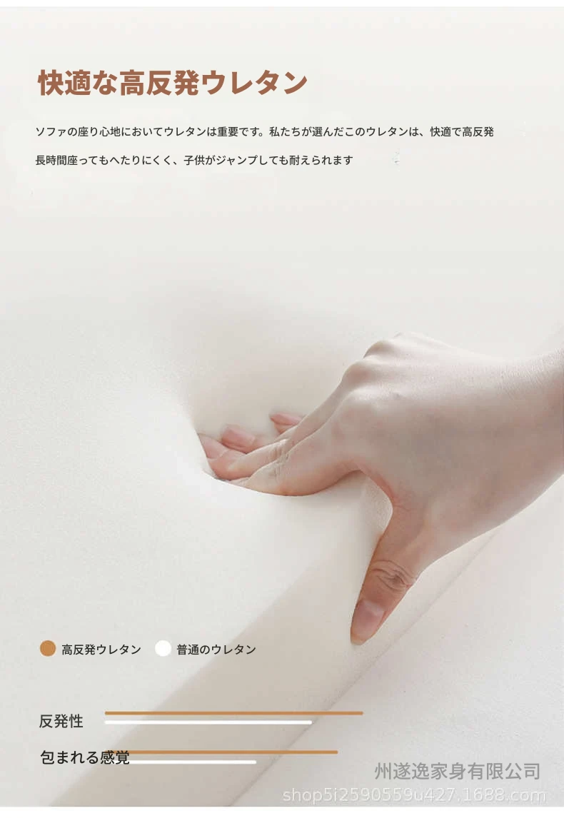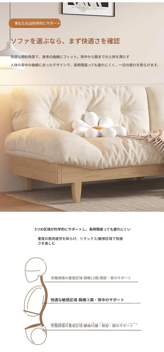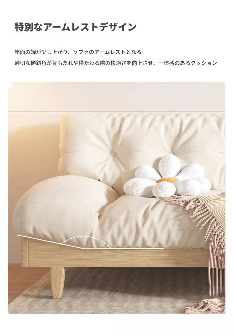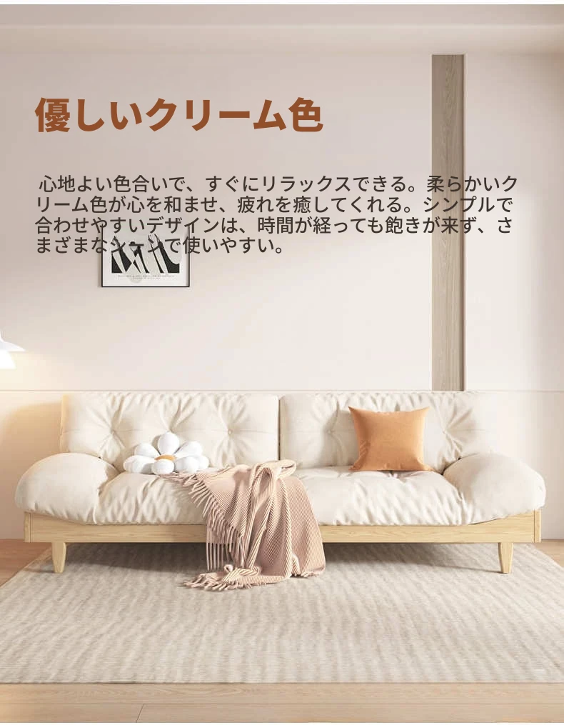北欧スタイルのナチュラル木製クリームソファ 2024年新作 シンプルな和風デザイン 小型住居にぴったりのクラウドソファ