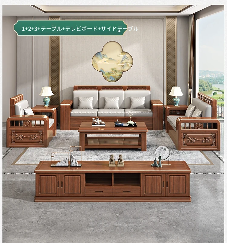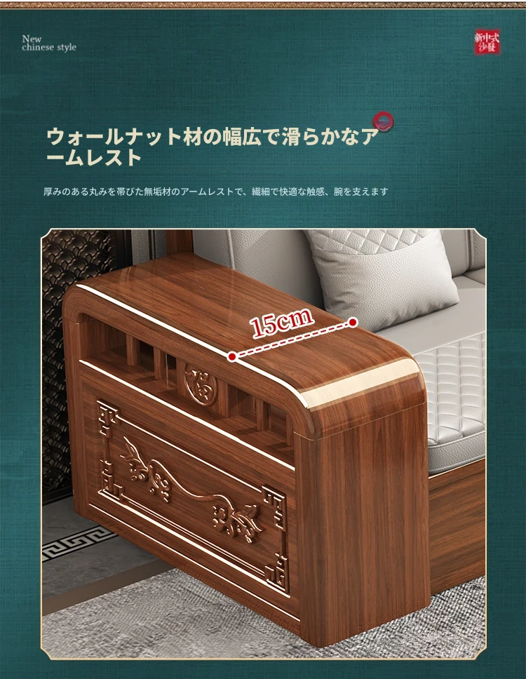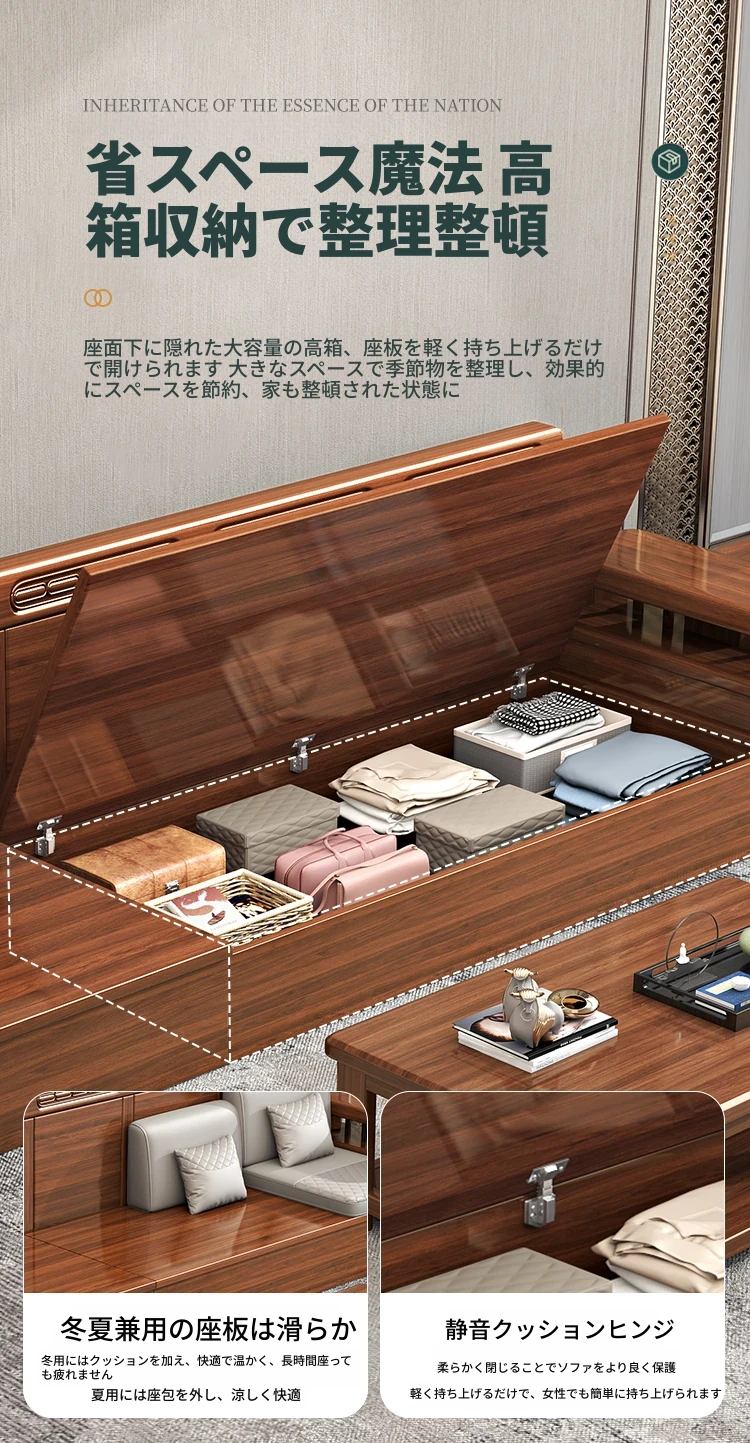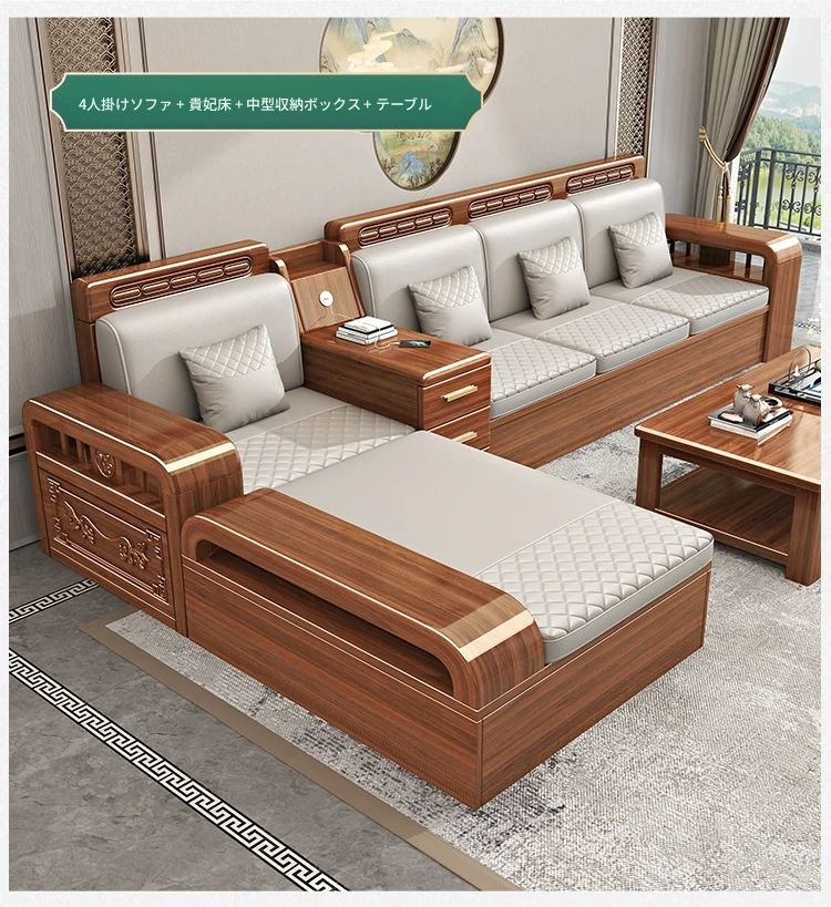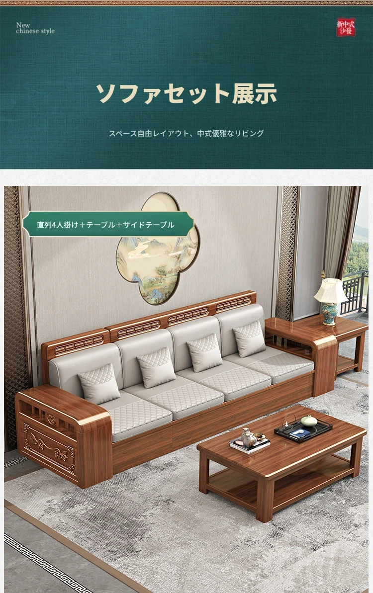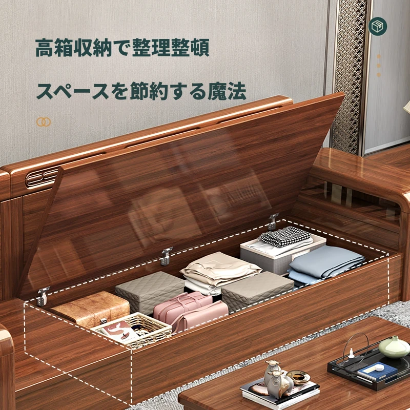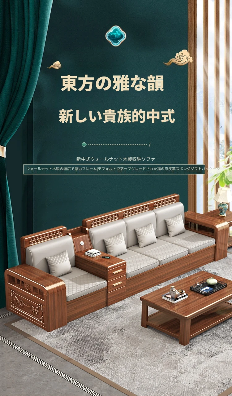 新中式スタイルの無垢材ソファ、収納付き!小型住宅に最適なデザインで、リビングをスタイリッシュに演出。2025年の新作、快適な座り心地をお楽しみください!
