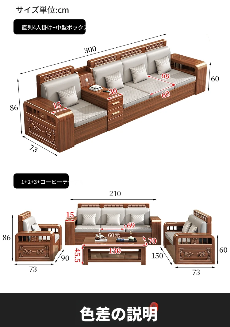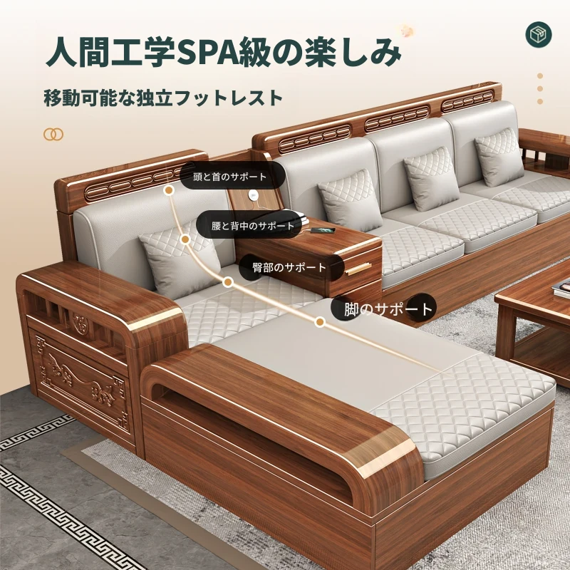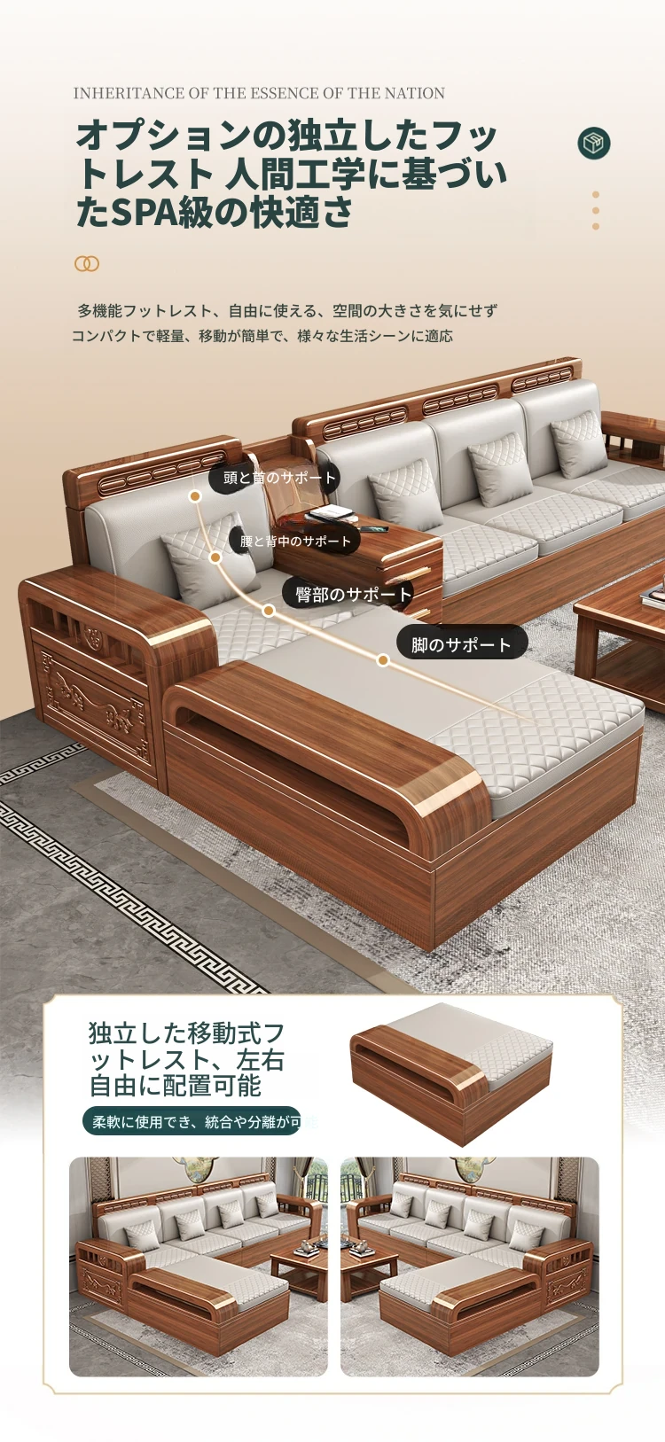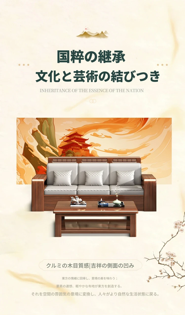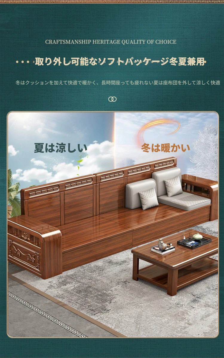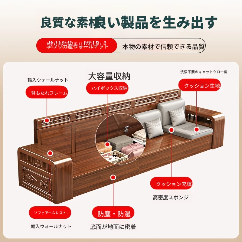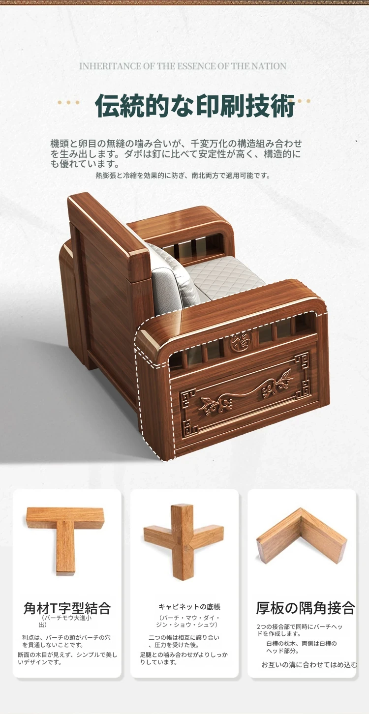 新中式スタイルの無垢材ソファ、収納付き!小型住宅に最適なデザインで、リビングをスタイリッシュに演出。2025年の新作、快適な座り心地をお楽しみください!