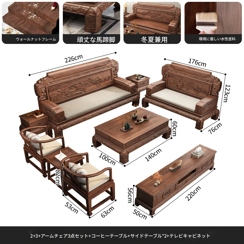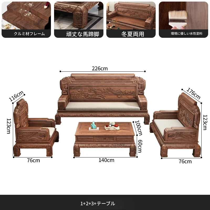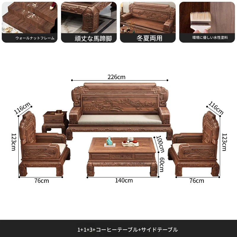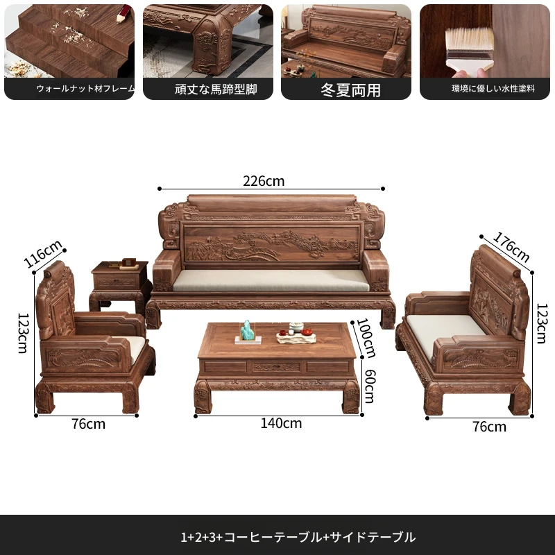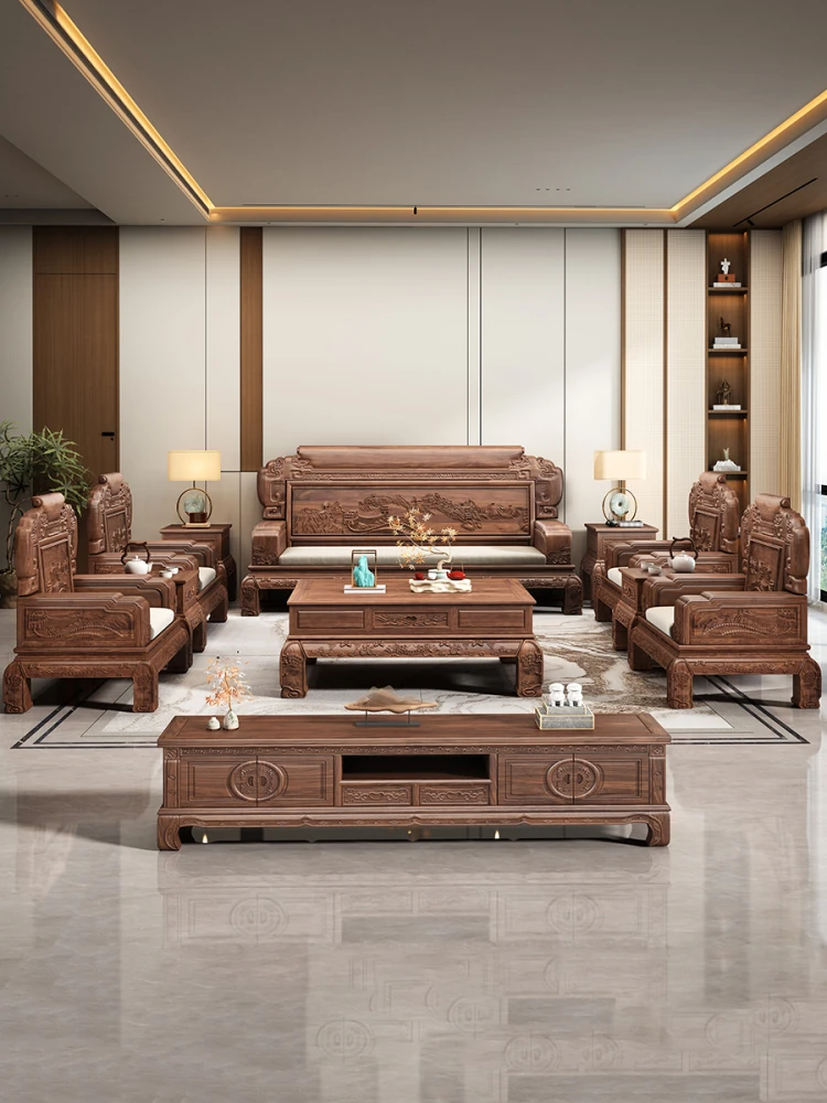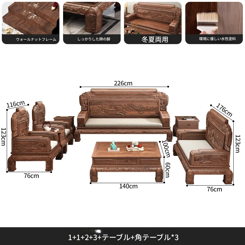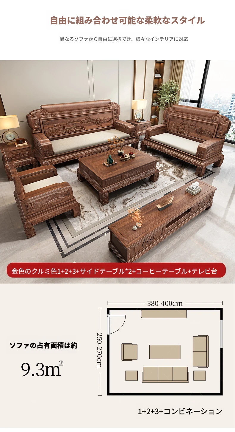 2025年新作!胡桃木全実木ソファー - 中式古典宋風美学の魅力を引き立てる万里長城彫刻家具。あなたのリビングに洗練された雰囲気をプラス!