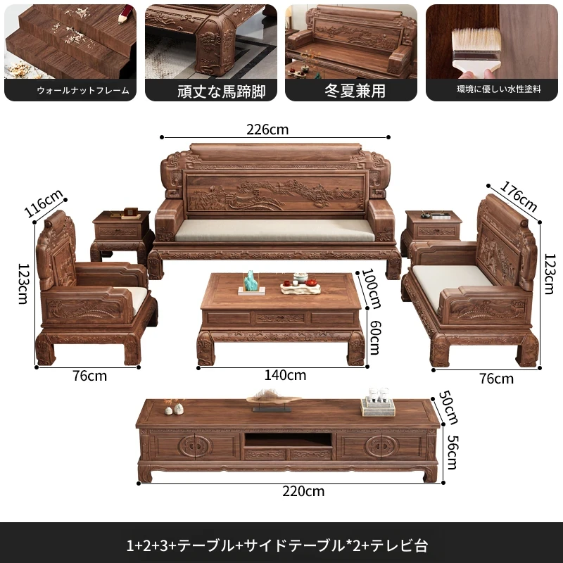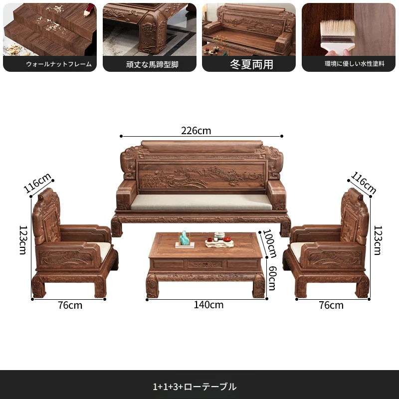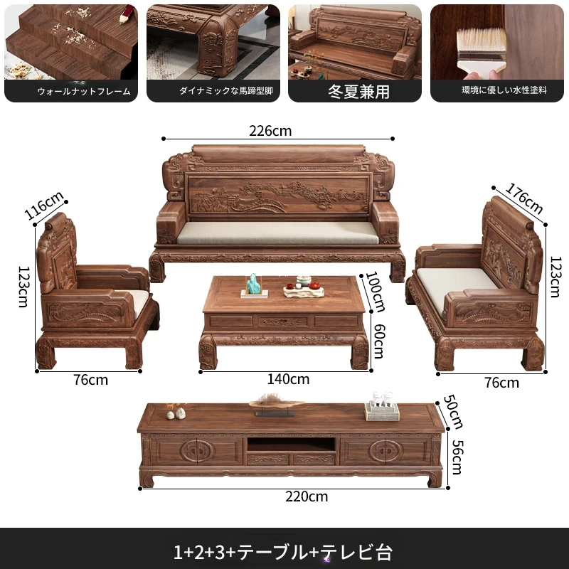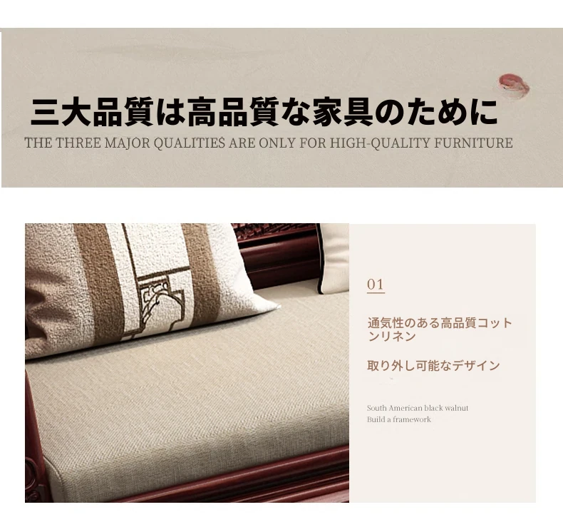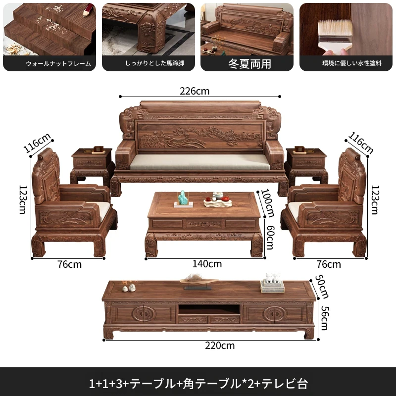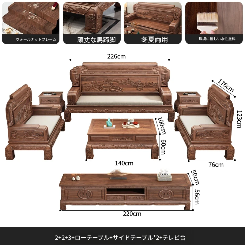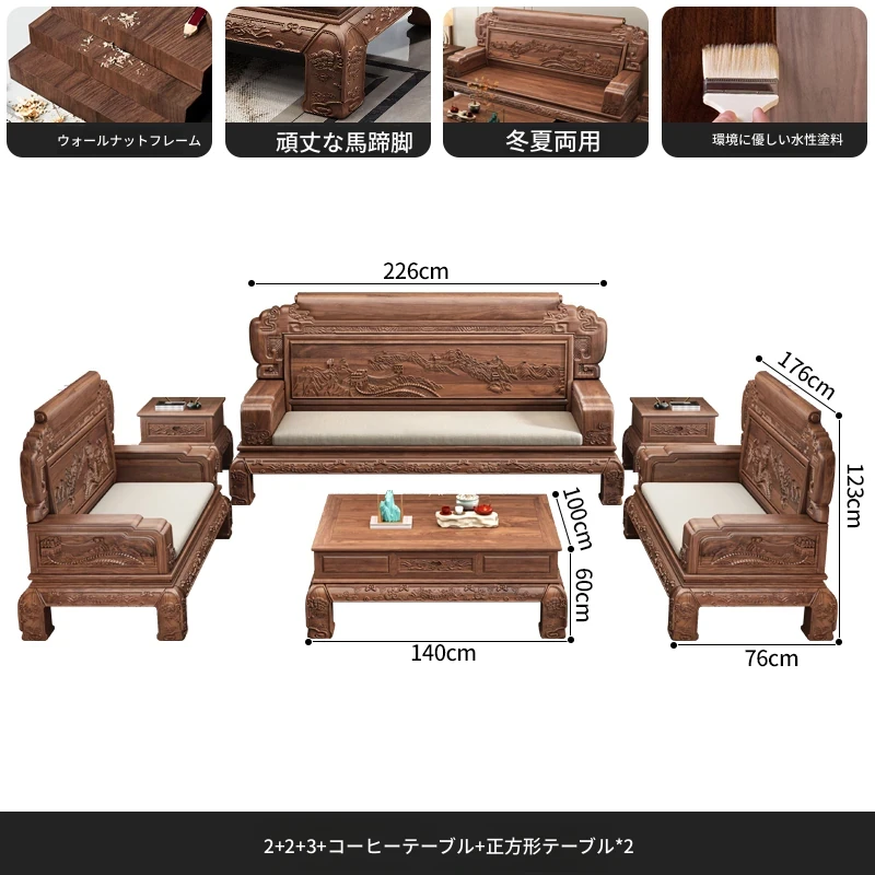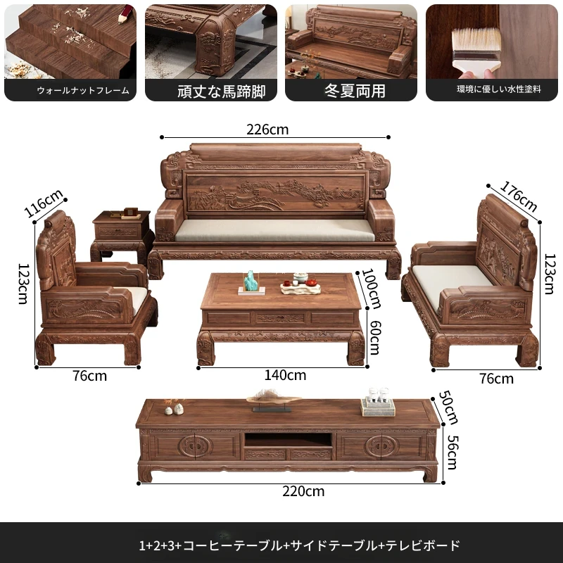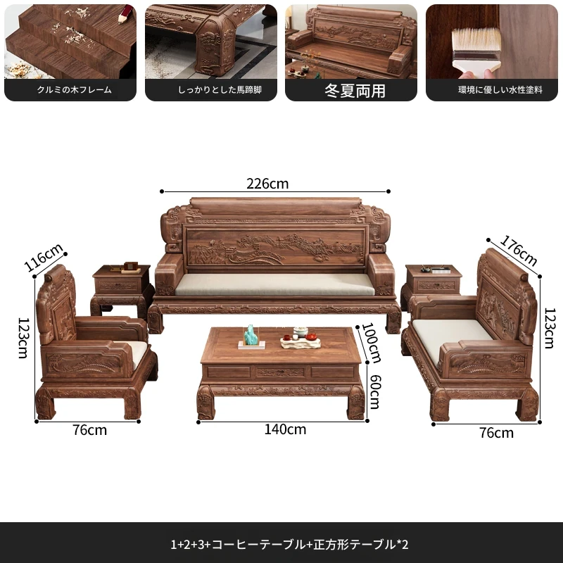 2025年新作!胡桃木全実木ソファー - 中式古典宋風美学の魅力を引き立てる万里長城彫刻家具。あなたのリビングに洗練された雰囲気をプラス!