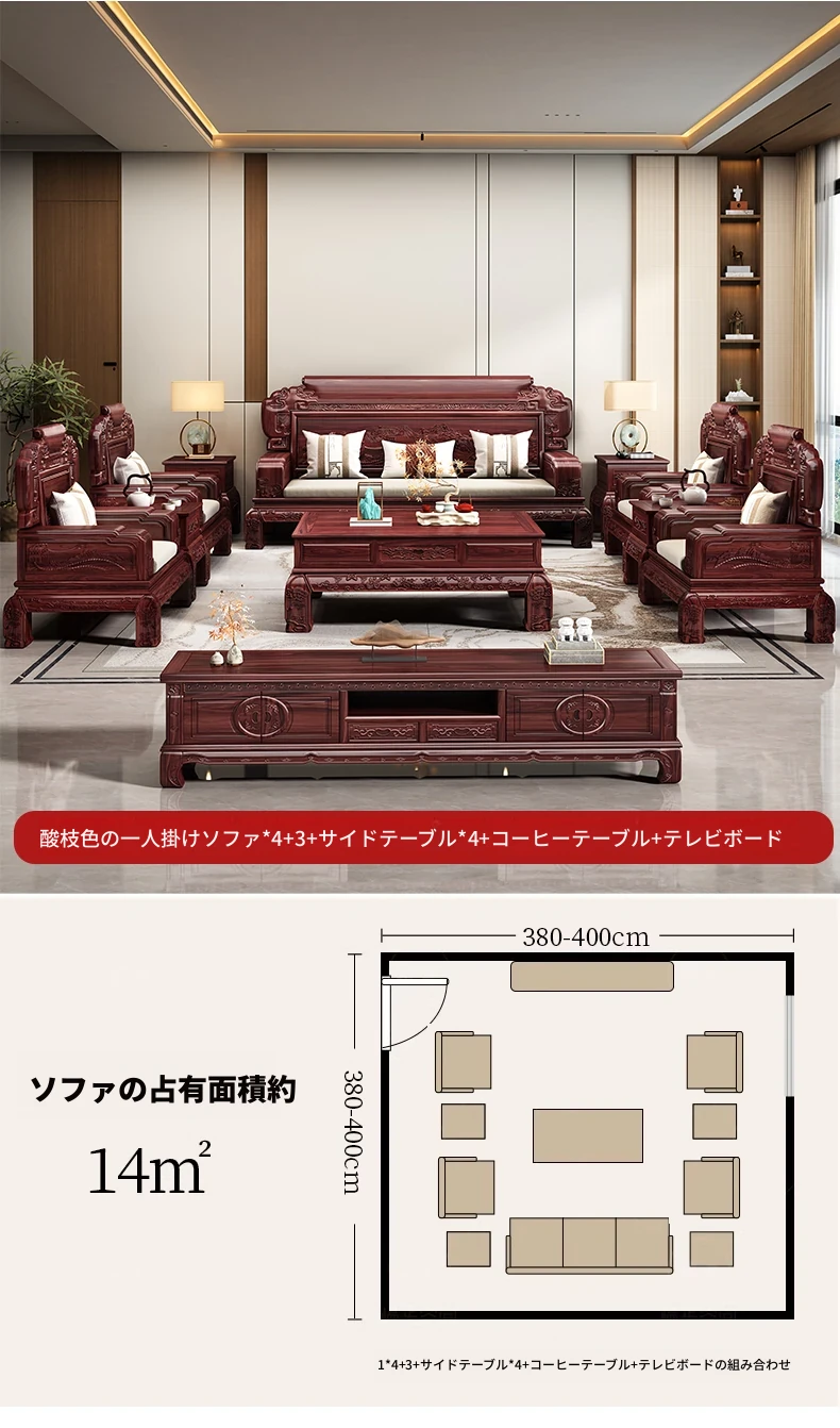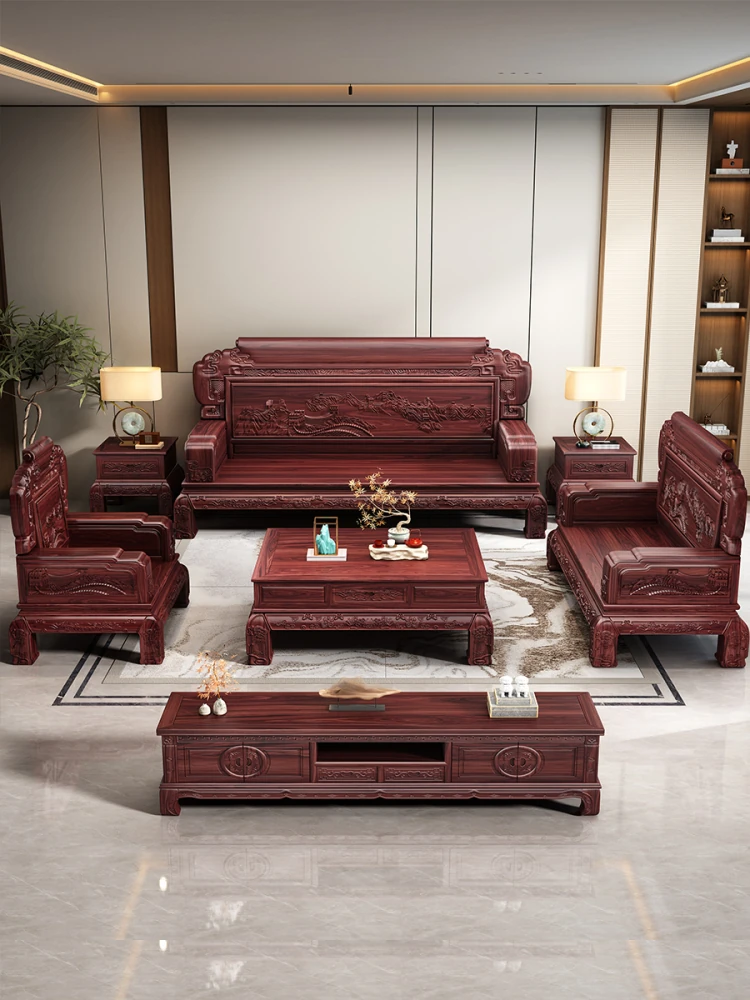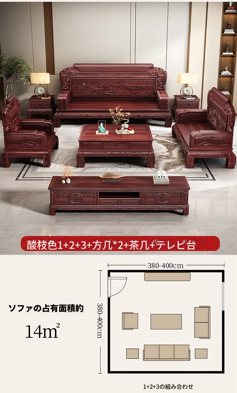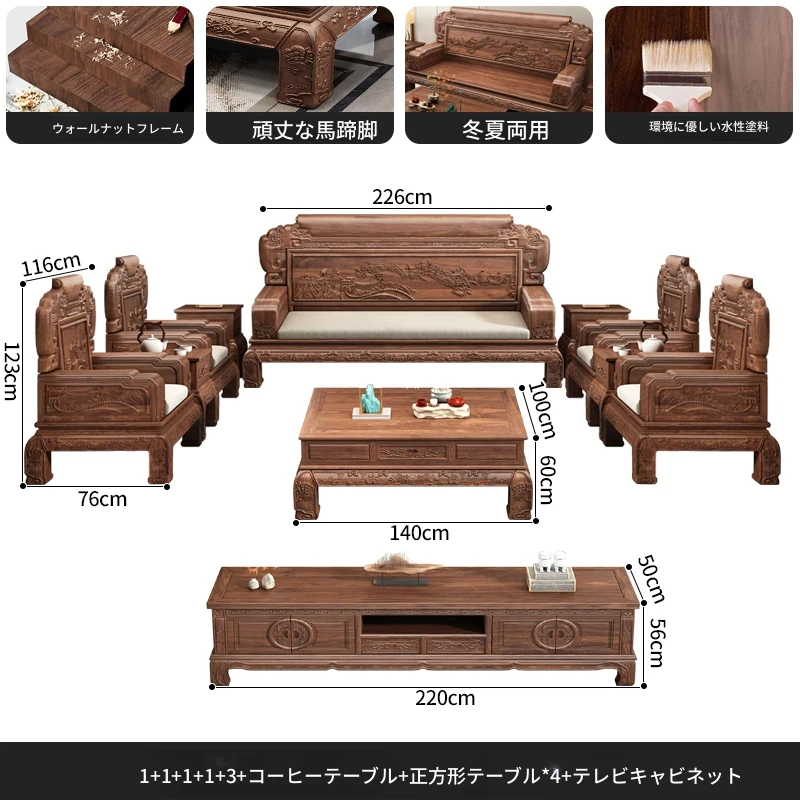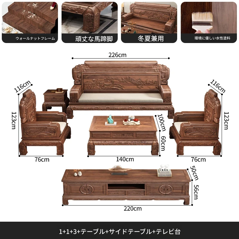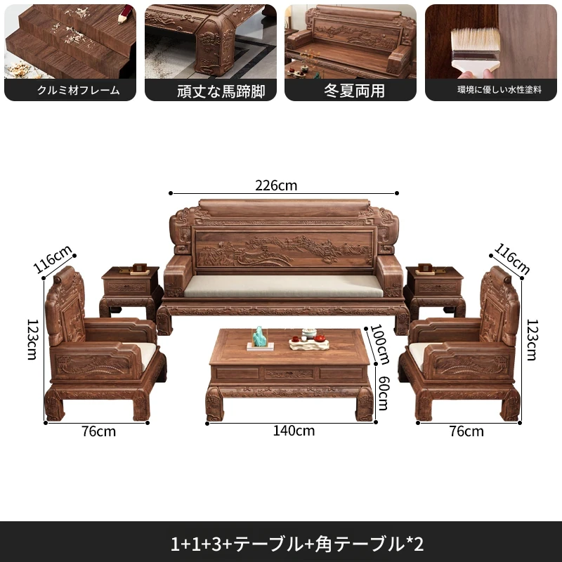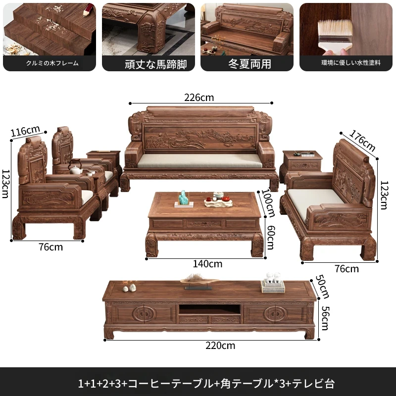 2025年新作!胡桃木全実木ソファー - 中式古典宋風美学の魅力を引き立てる万里長城彫刻家具。あなたのリビングに洗練された雰囲気をプラス!