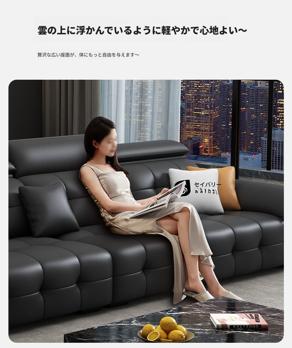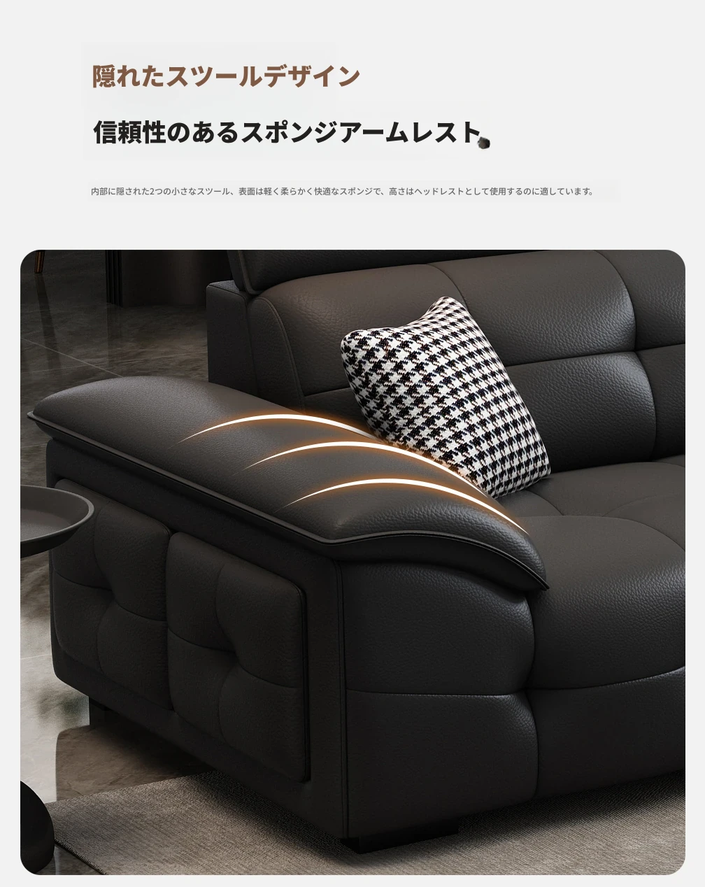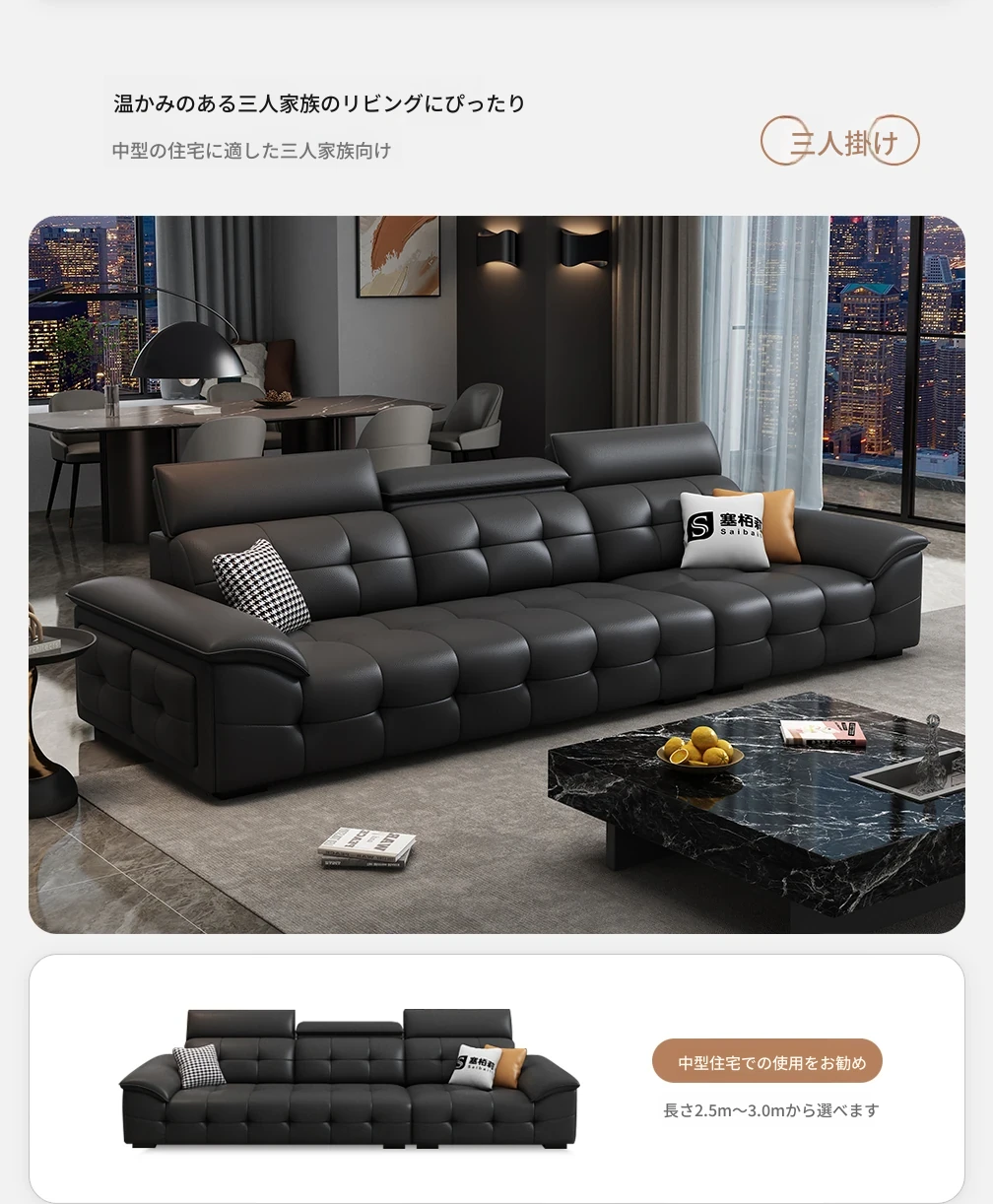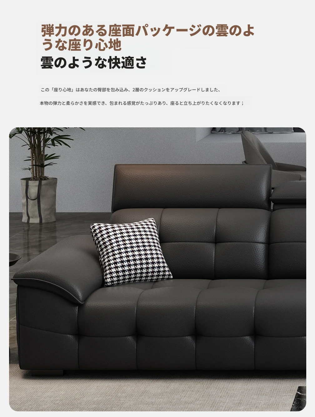 2025年新作!ローランス イタリアンレザー ソファ - モダンミニマリズムの3人掛けコンビネーションソファ、小型リビングにぴったり!高級感と快適さを兼ね備えた一品です。