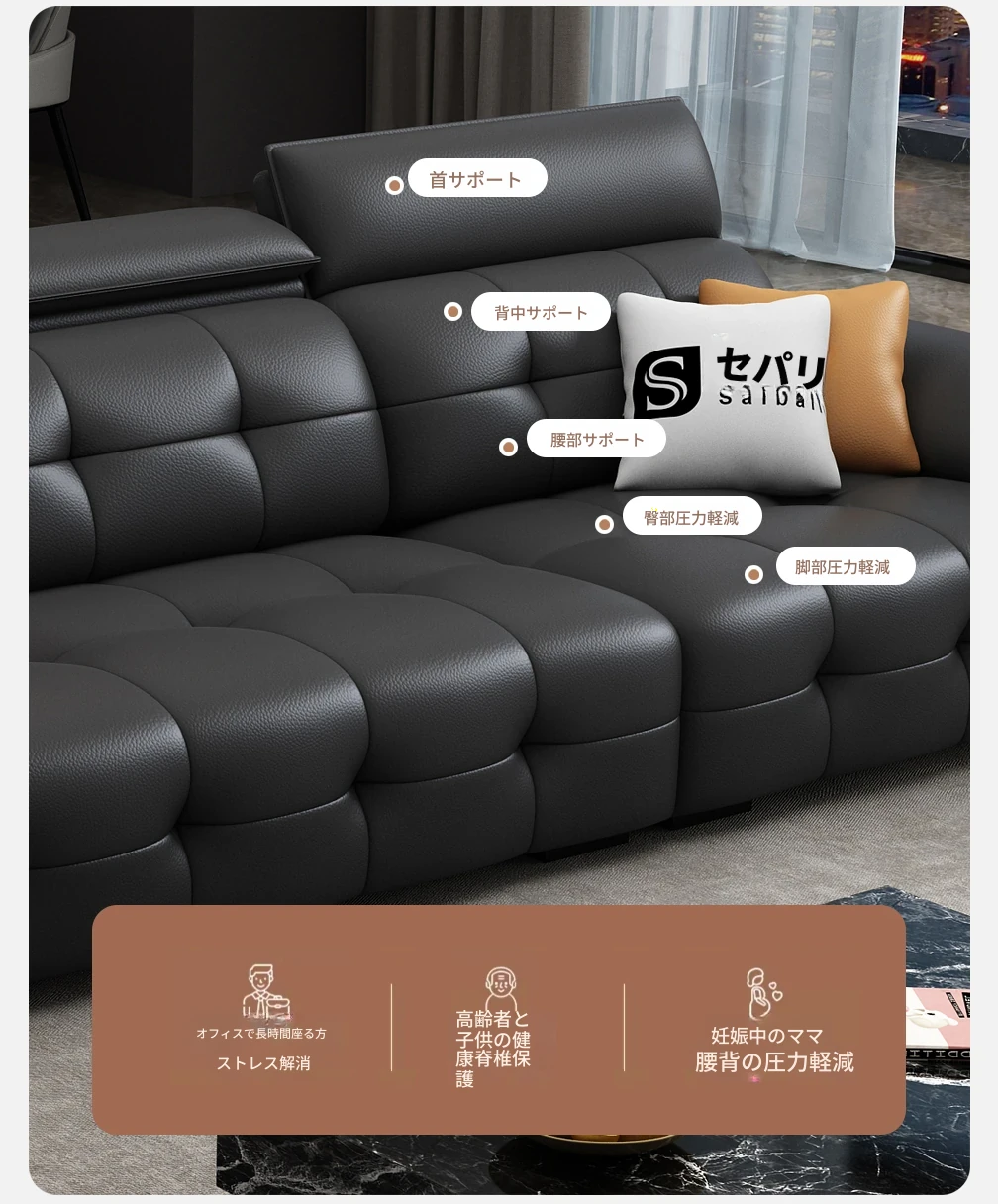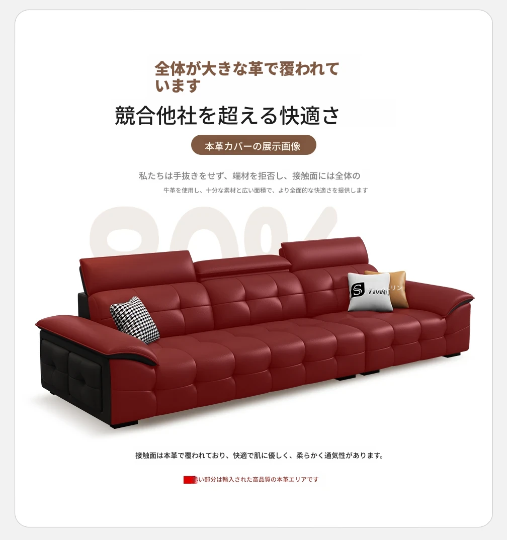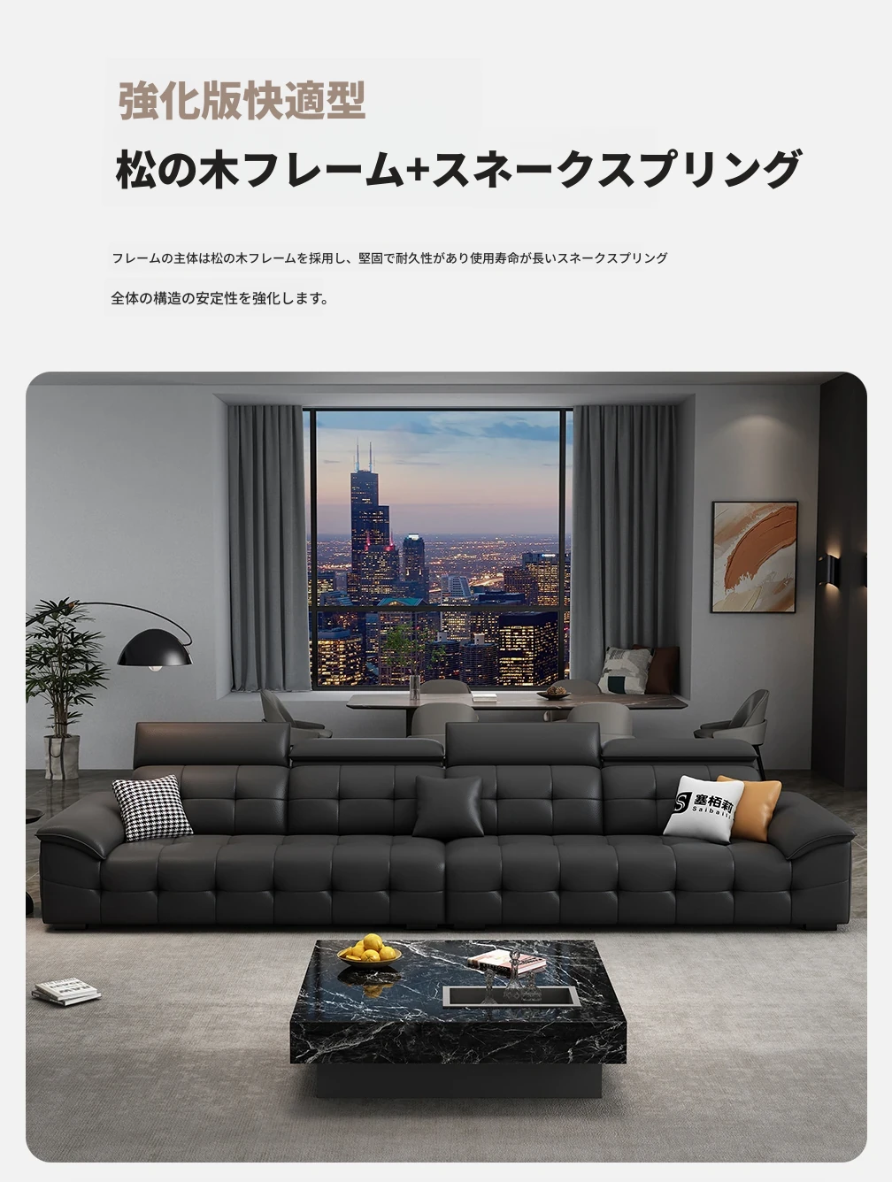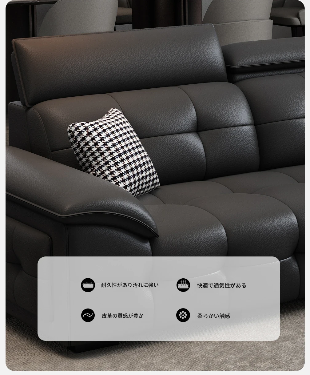 2025年新作!ローランス イタリアンレザー ソファ - モダンミニマリズムの3人掛けコンビネーションソファ、小型リビングにぴったり!高級感と快適さを兼ね備えた一品です。