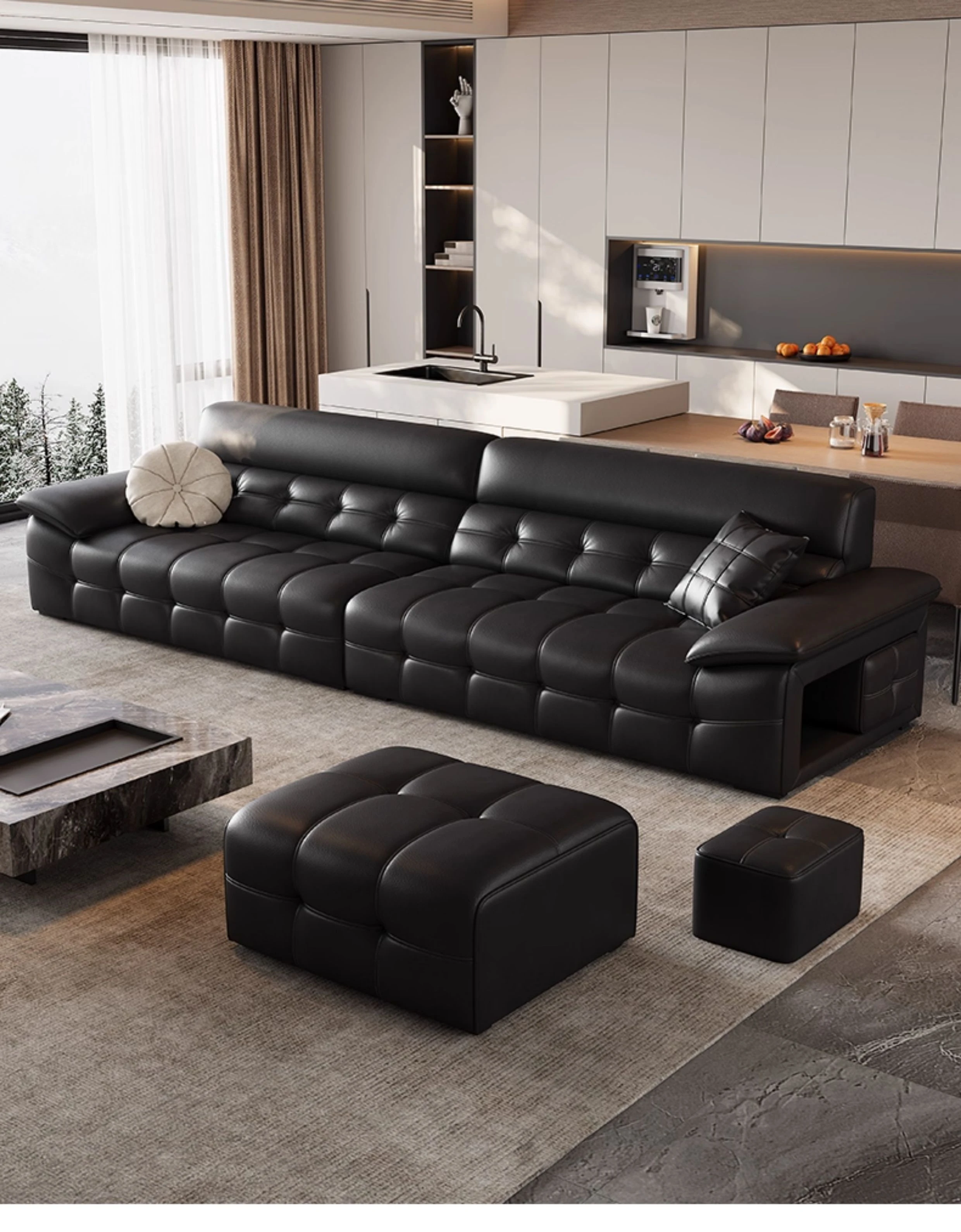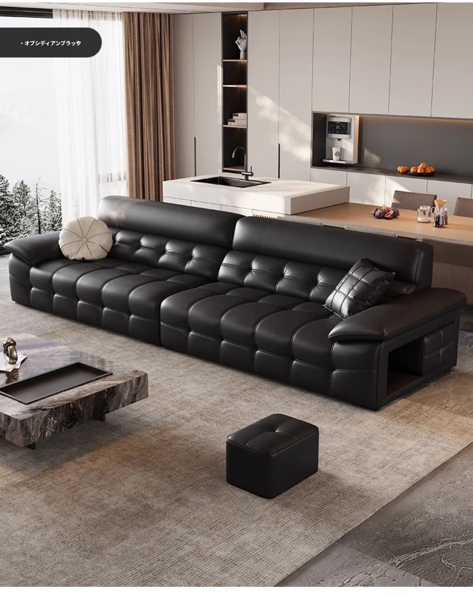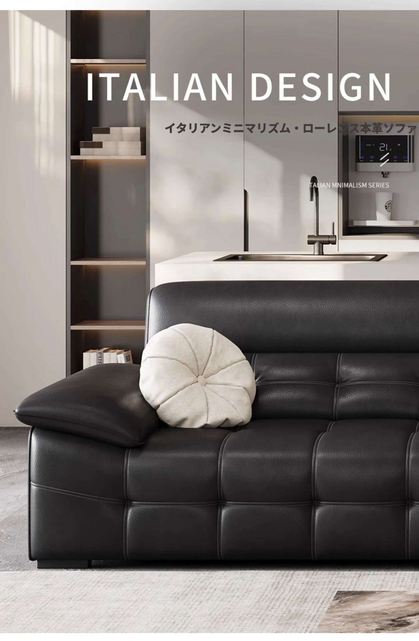 2025年最新モデル!モダンなラウレンスソファー 全真皮使用 イタリアントップグレインレザー 軽やかで贅沢なデザイン 高級感あふれる黒色ソファー、広東省仏山市からお届け!