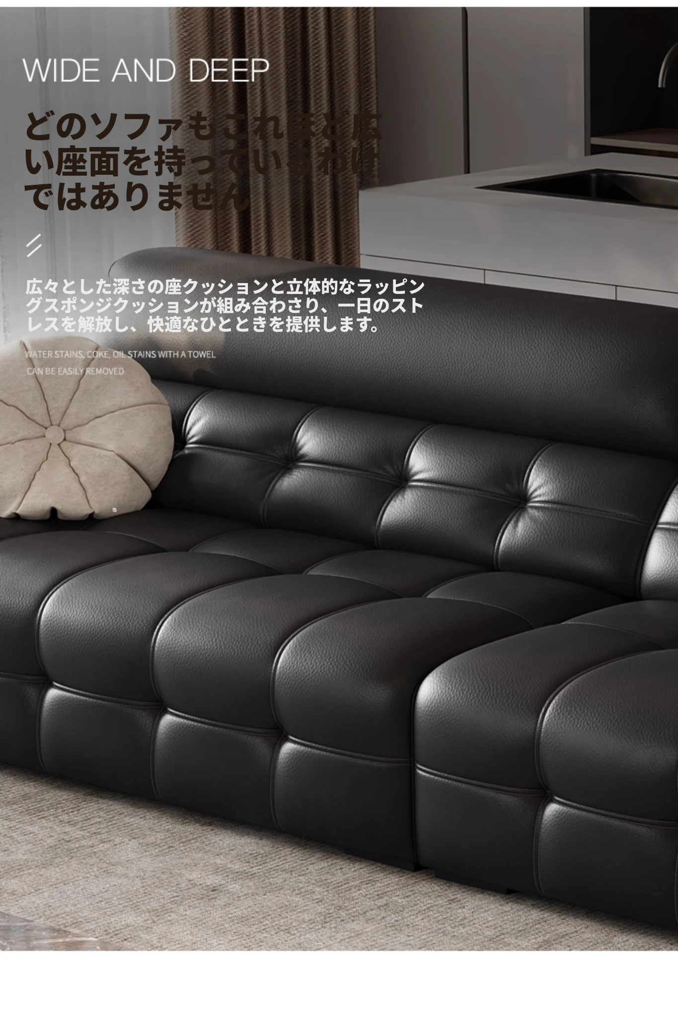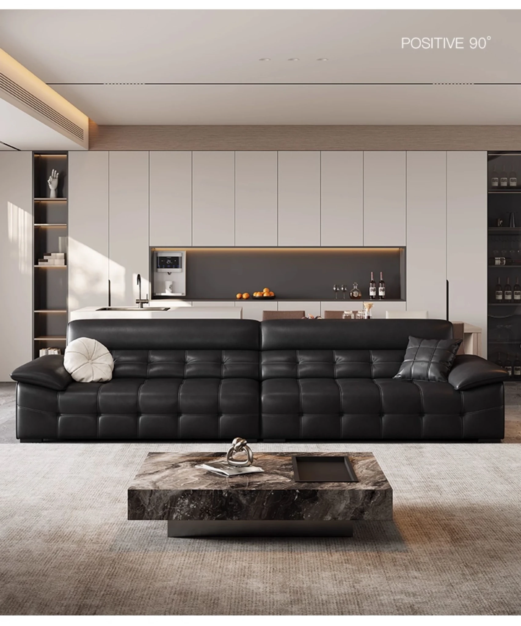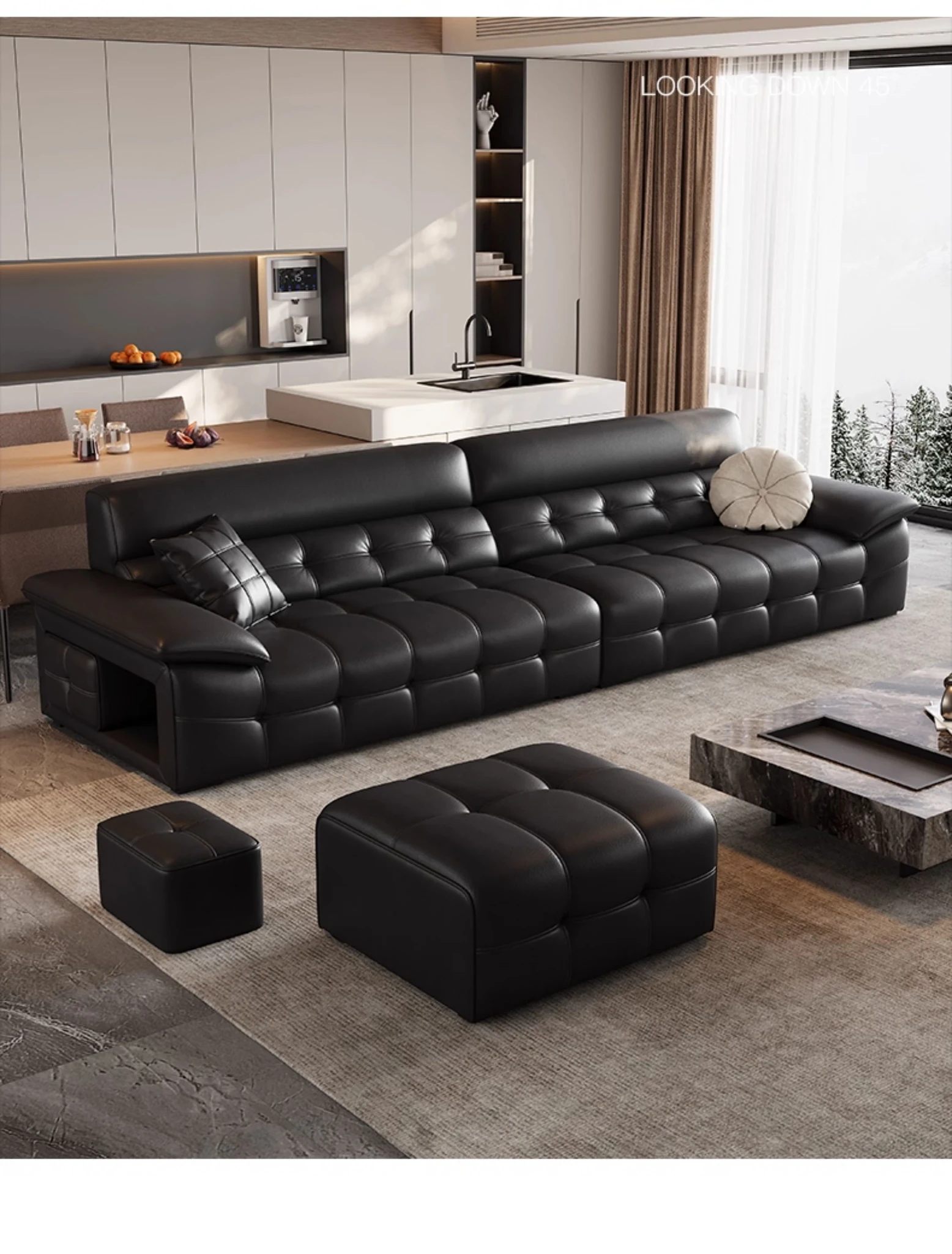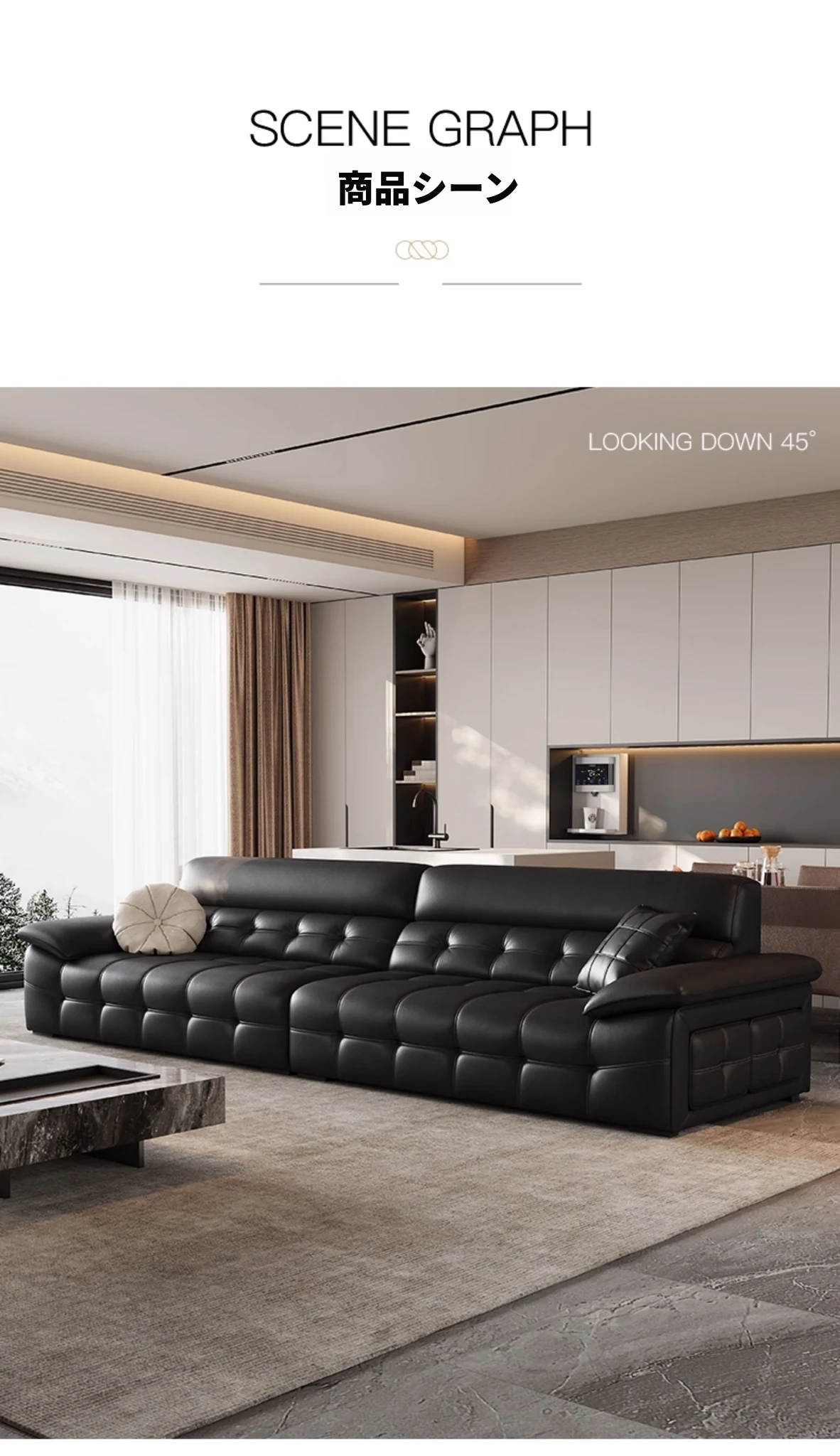 2025年最新モデル!モダンなラウレンスソファー 全真皮使用 イタリアントップグレインレザー 軽やかで贅沢なデザイン 高級感あふれる黒色ソファー、広東省仏山市からお届け!
