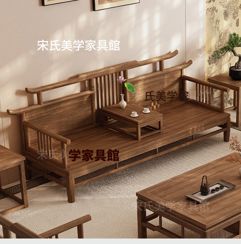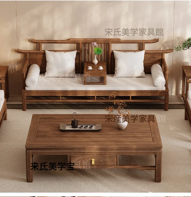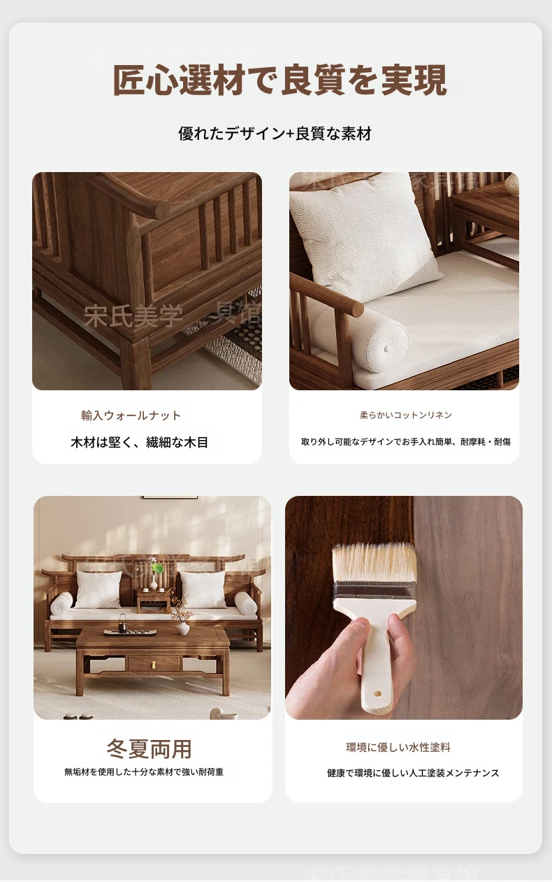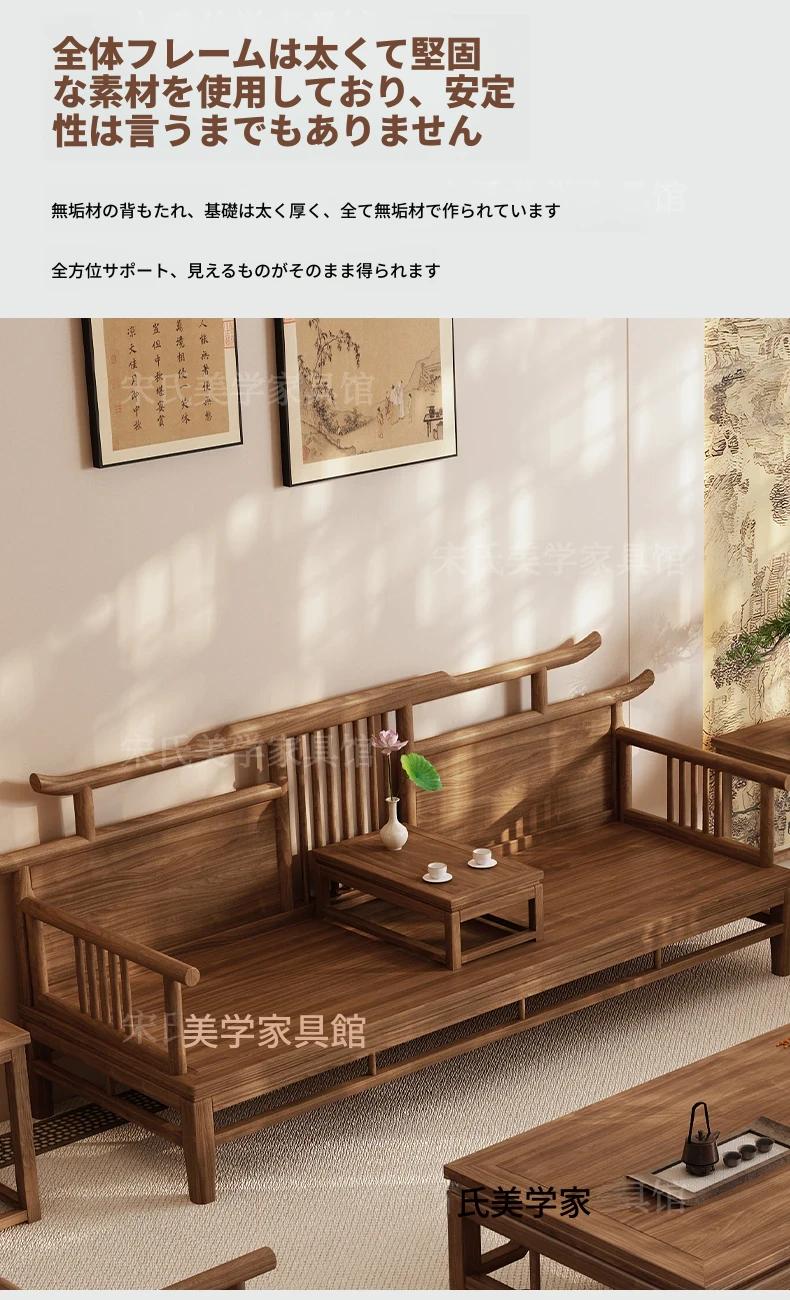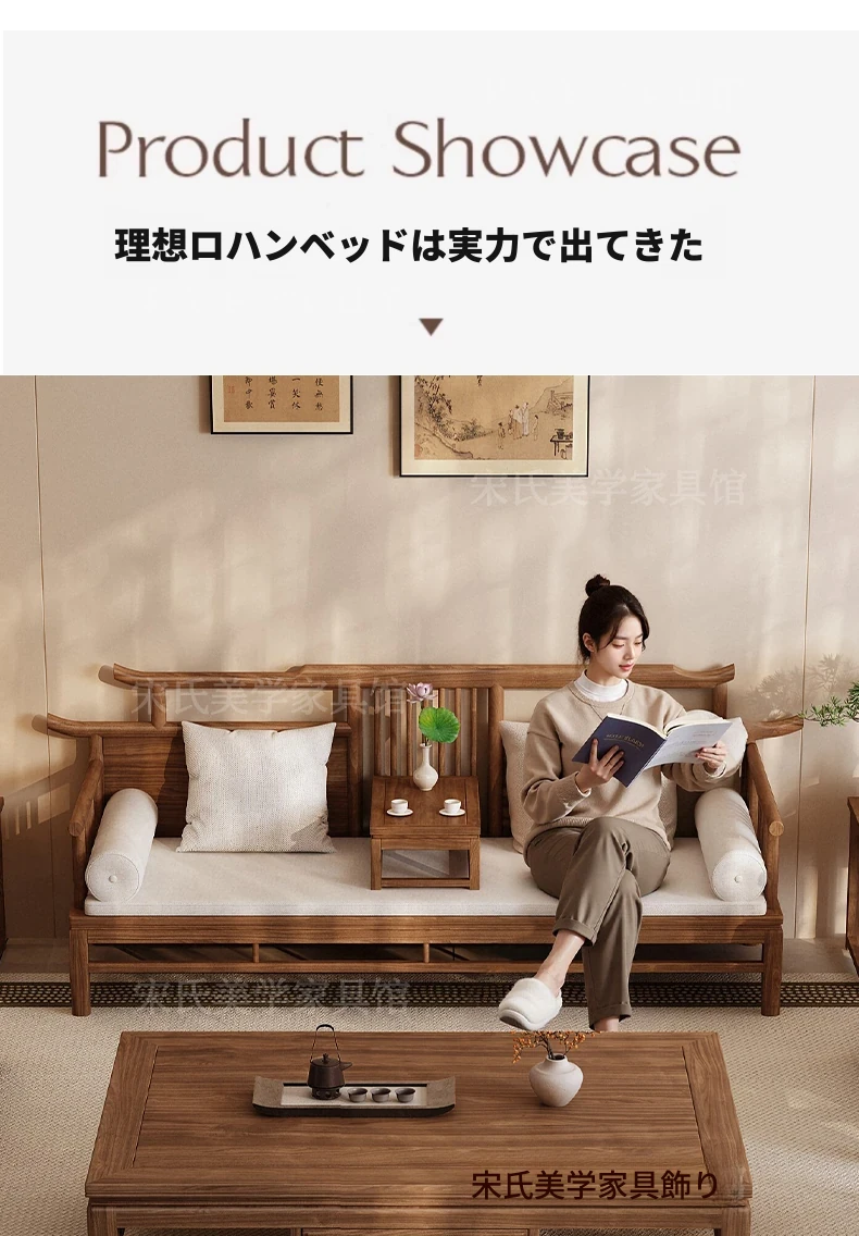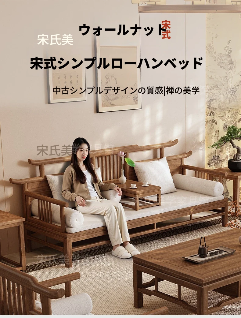 2025年新作!新中式胡桃木全実木ロハンベッド - 冬夏両用のシンプルで禅の美学を感じる宋風家具。心地良い眠りを提供し、あなたの空間を豊かに彩ります!