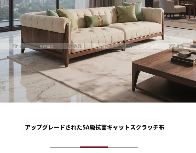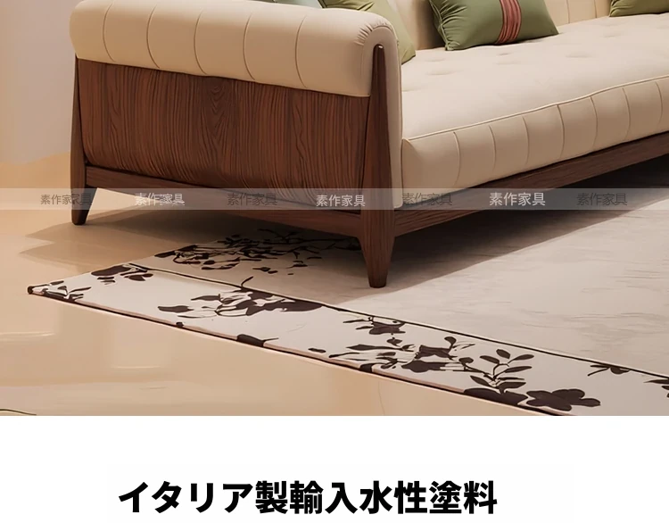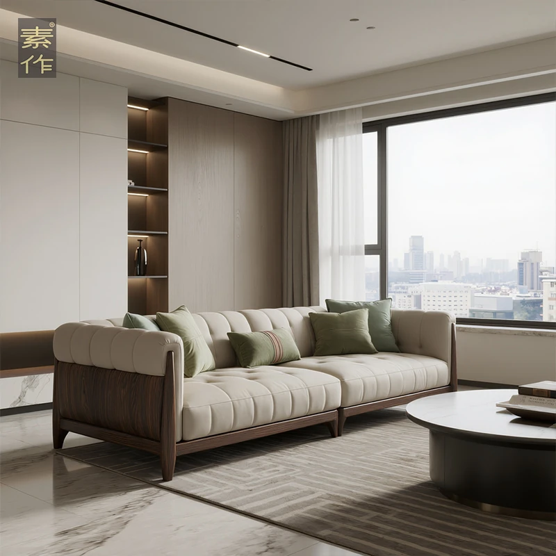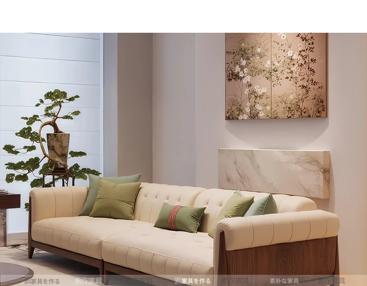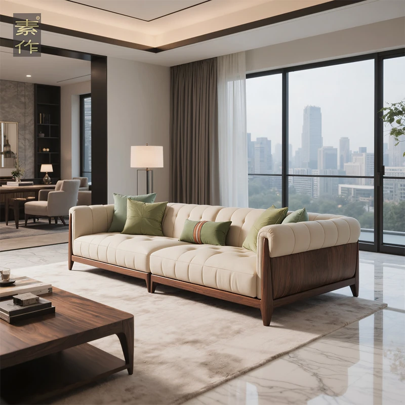 2025年新作!新中式スタイルのブラックウォールナットソファ - モダンでシンプルなデザイン、実用性抜群!ヴィラにもぴったりなリビング用直排ソファで、心地よい空間を演出します。