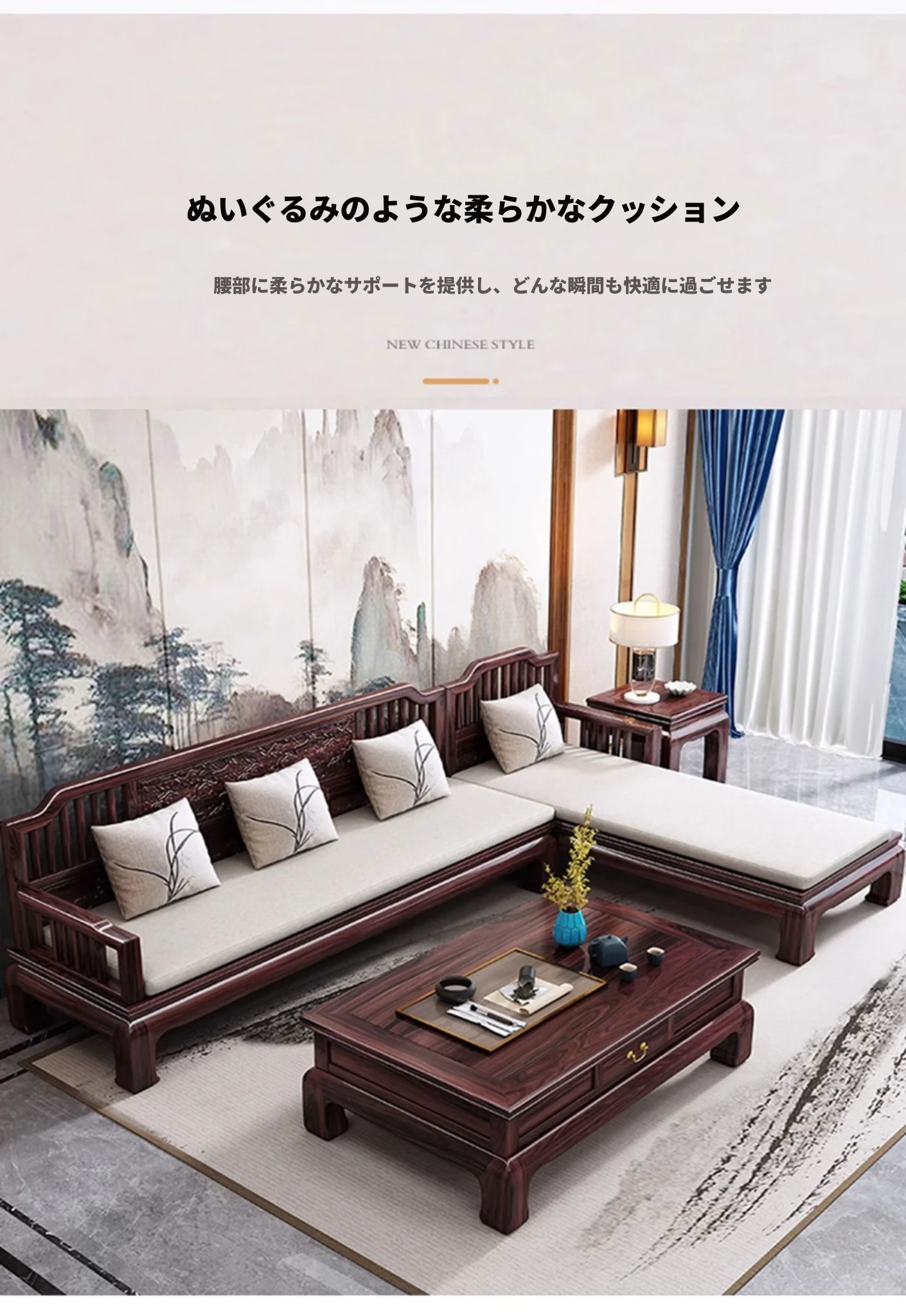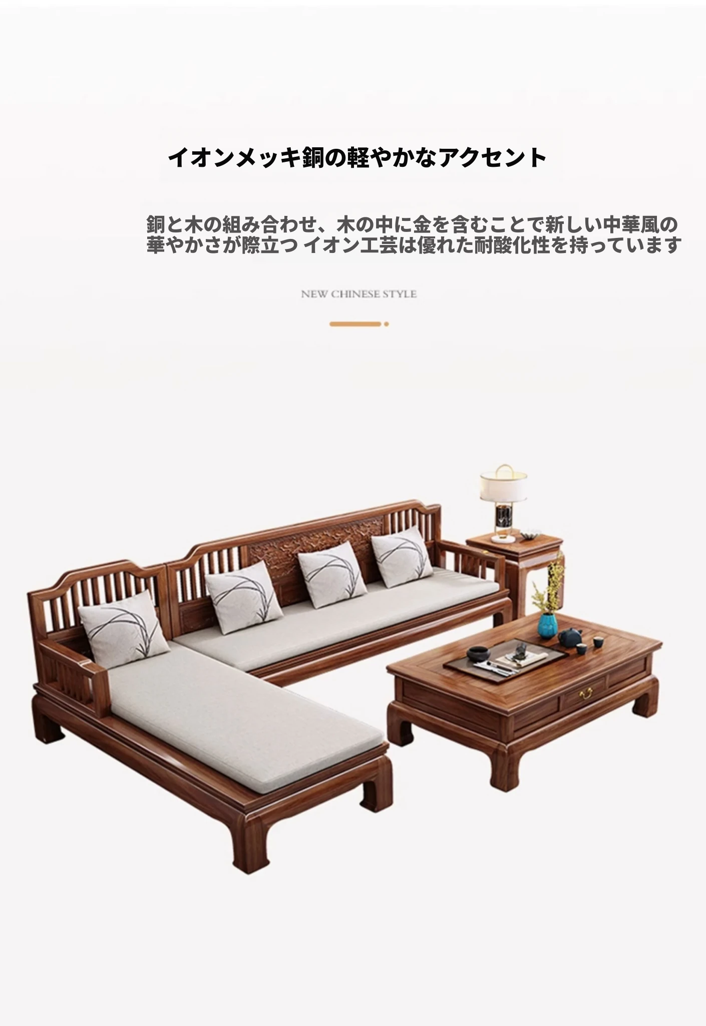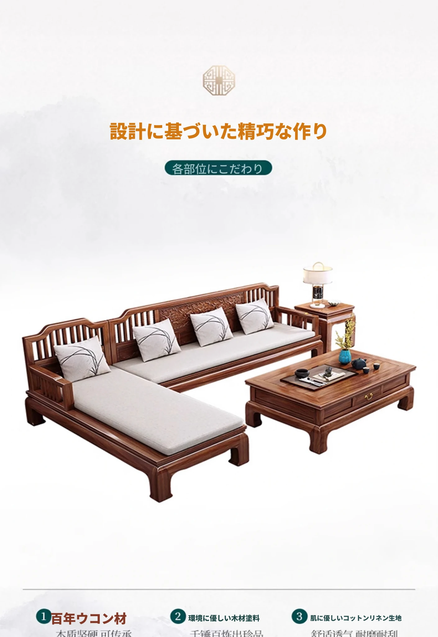 2025年新作!ウッディなウーキン木製ソファセット - コンパクトなリビングにぴったりのコーナー・ロマンティックデザイン、冬夏両用で快適さを追求した直排家具!おしゃれな空間を演出します。