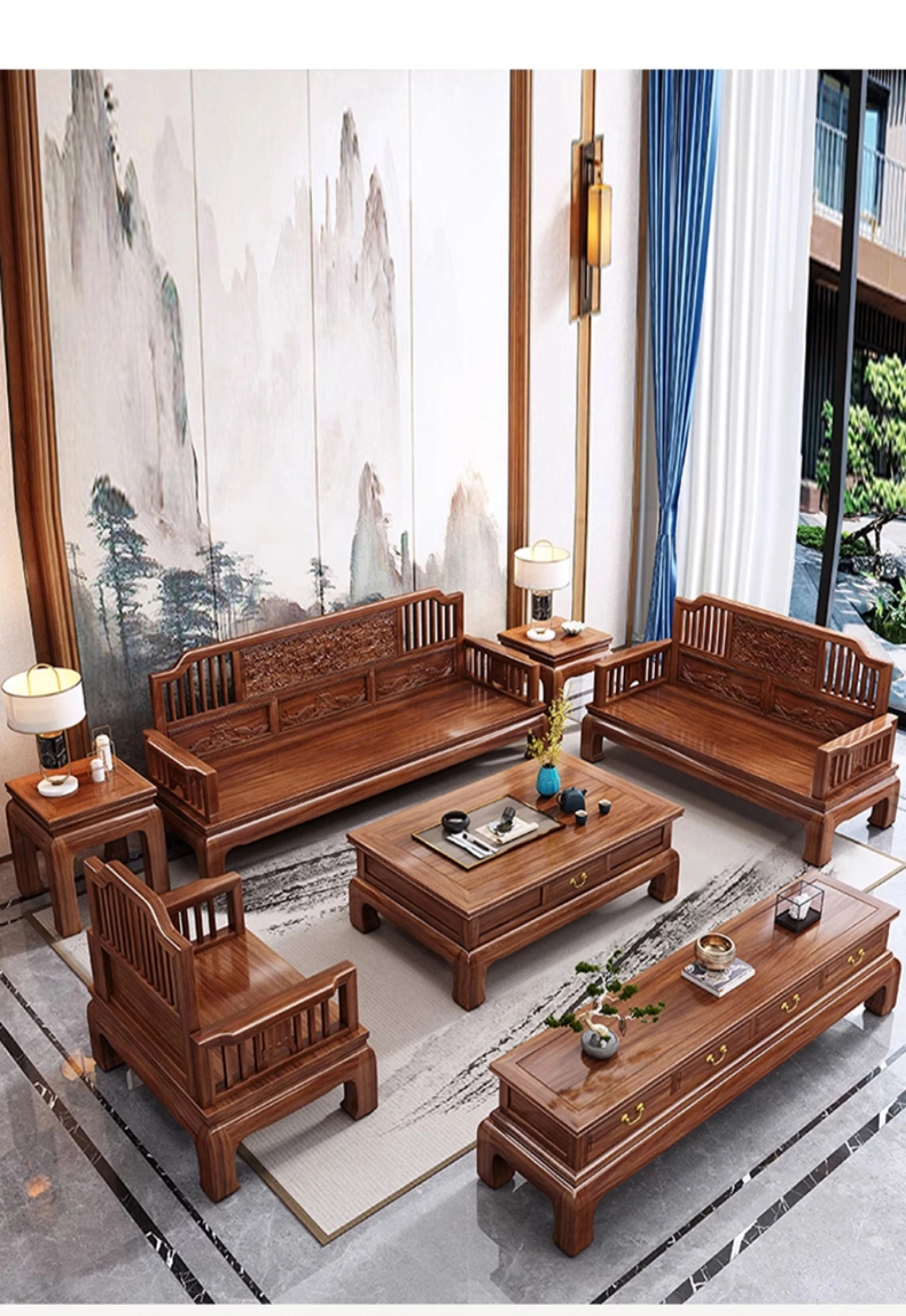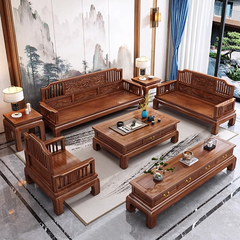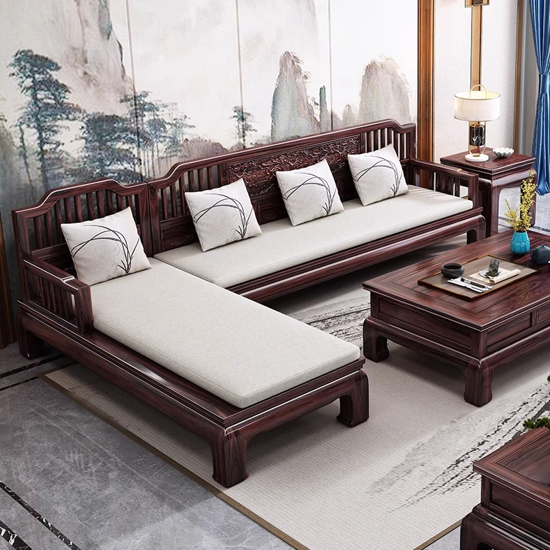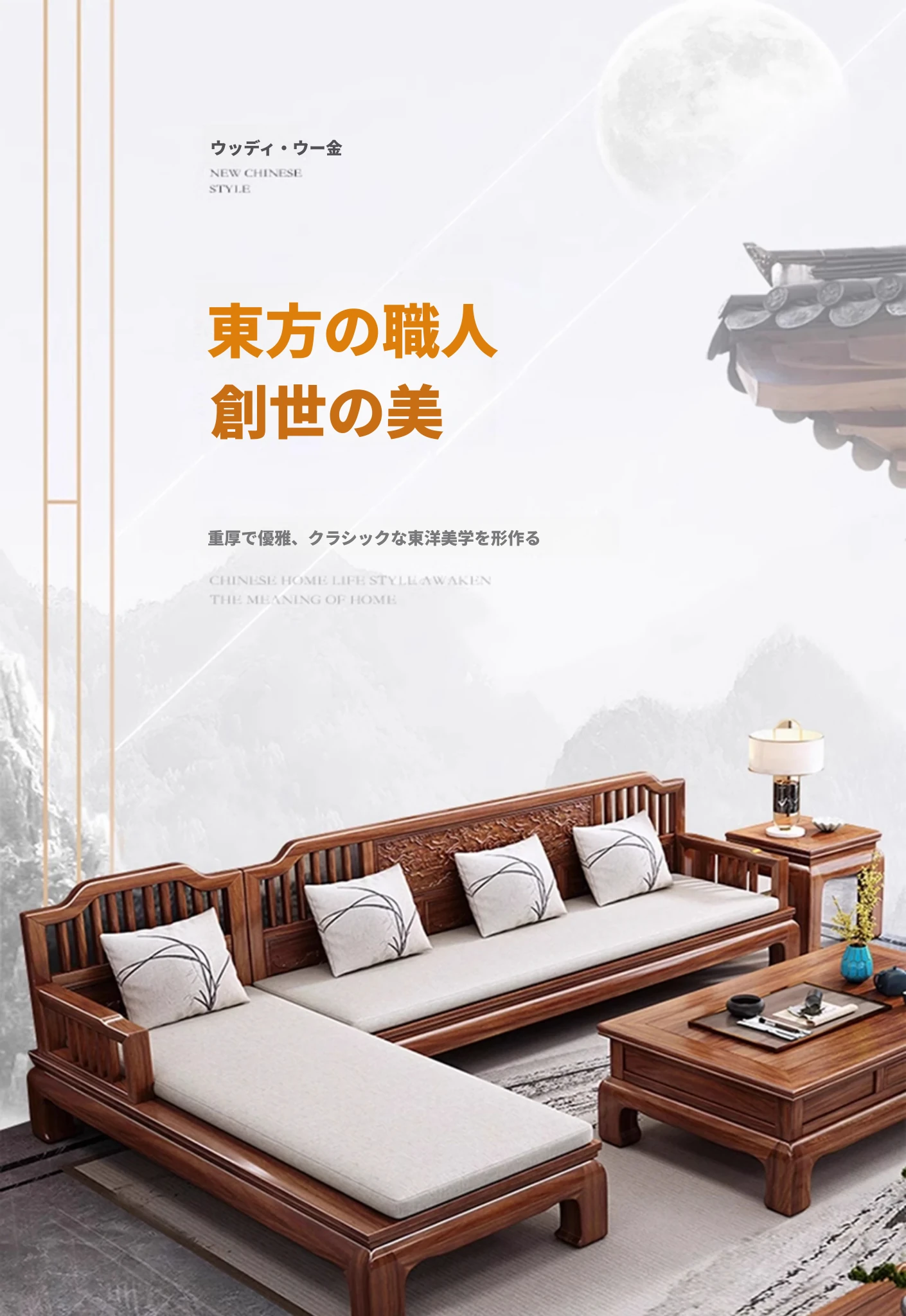 2025年新作!ウッディなウーキン木製ソファセット - コンパクトなリビングにぴったりのコーナー・ロマンティックデザイン、冬夏両用で快適さを追求した直排家具!おしゃれな空間を演出します。