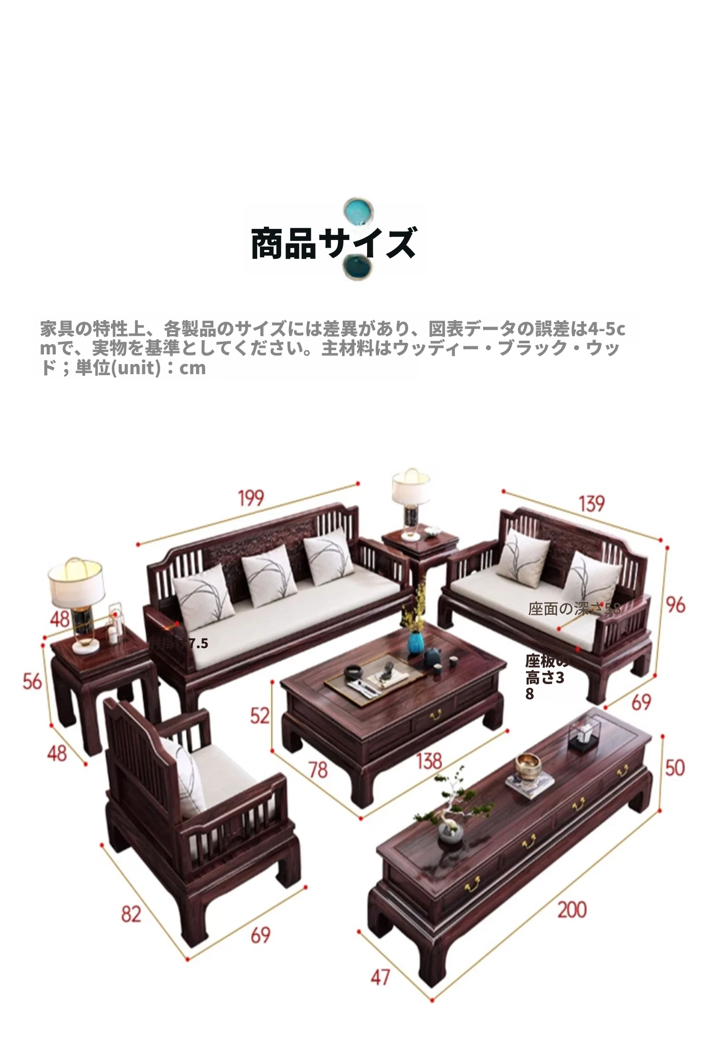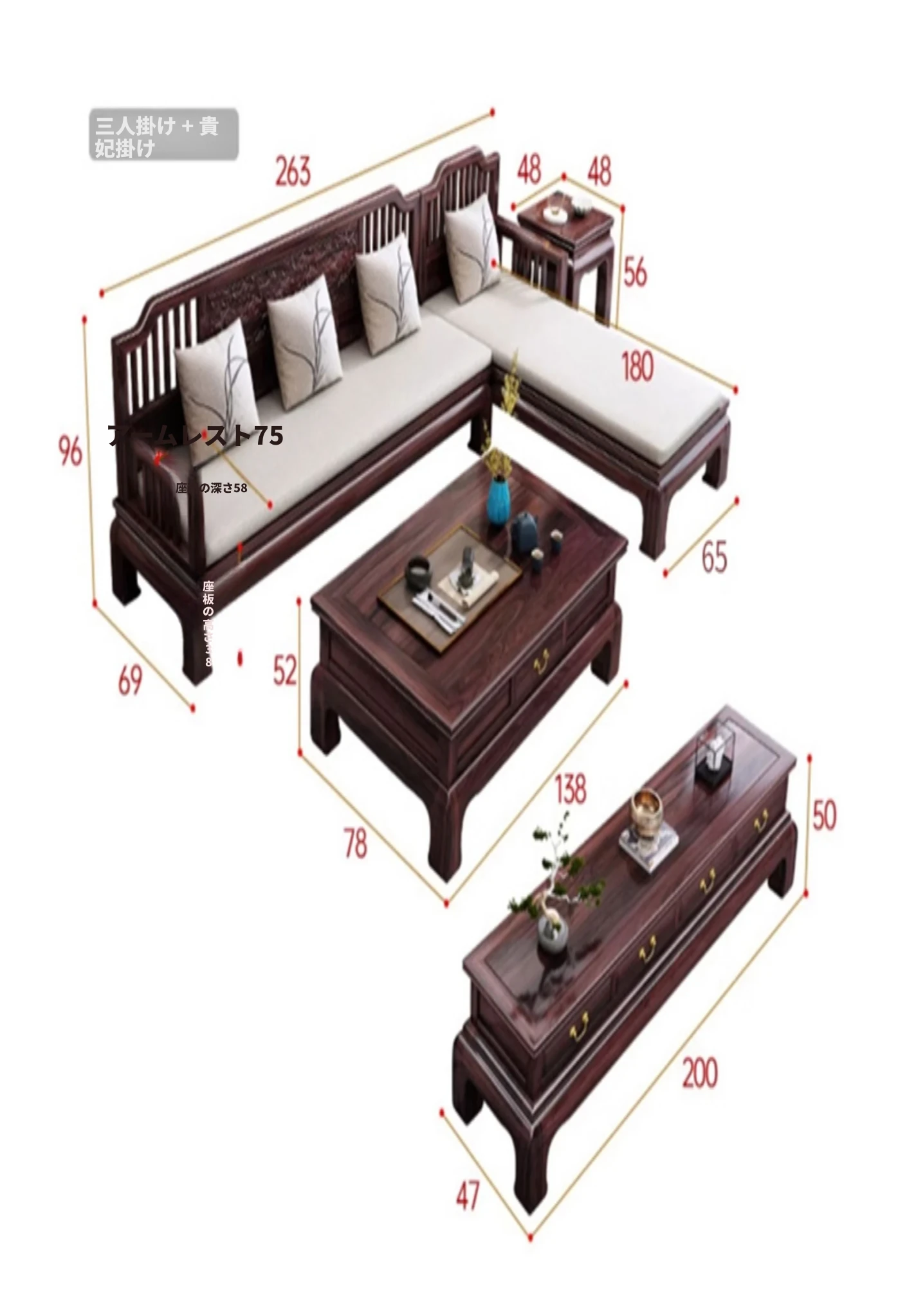 3人掛け+貴妃+コーヒーテーブル+正方形テーブル(クッション付き)