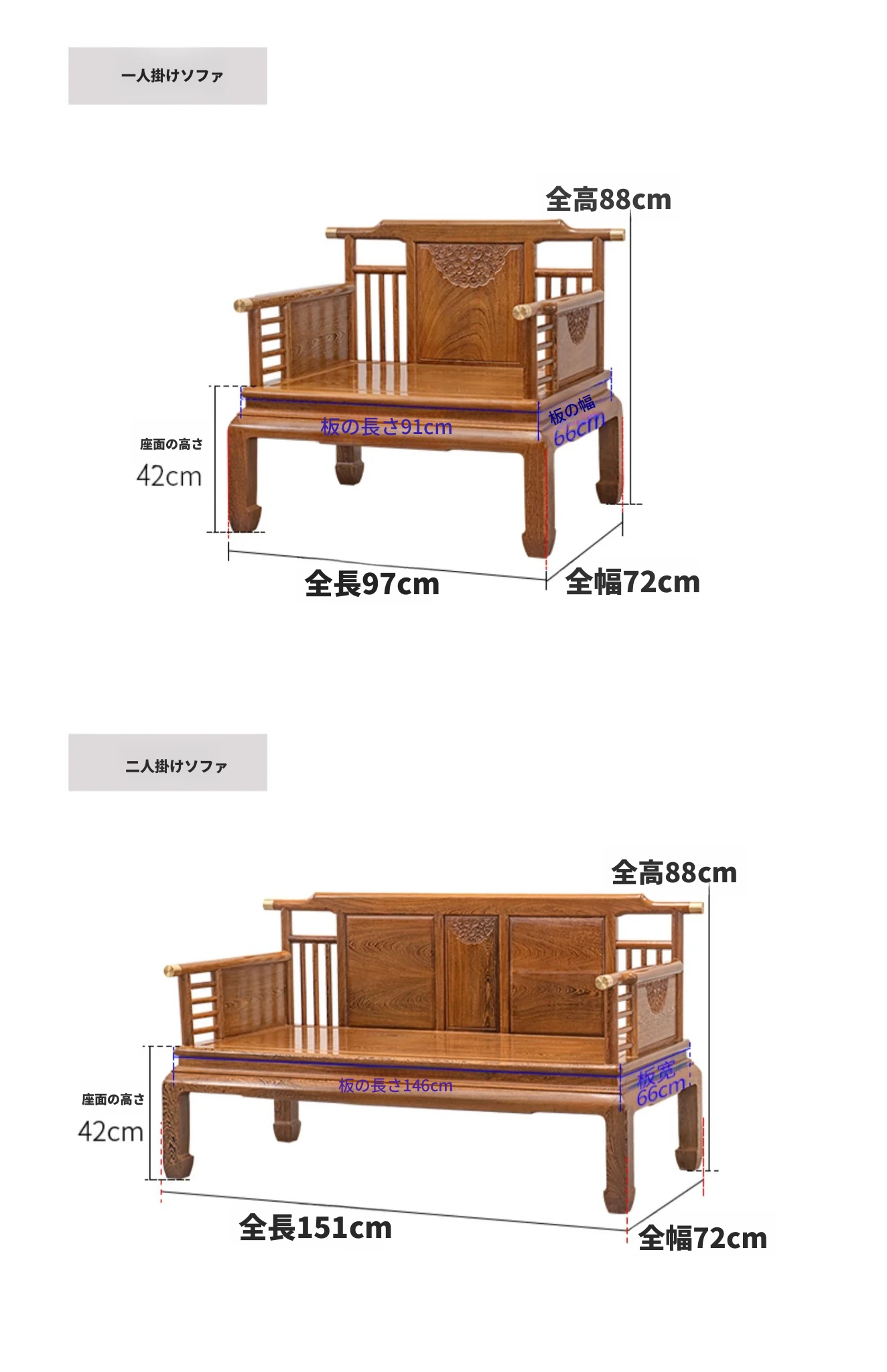 玉葉金柯ソファ二人用