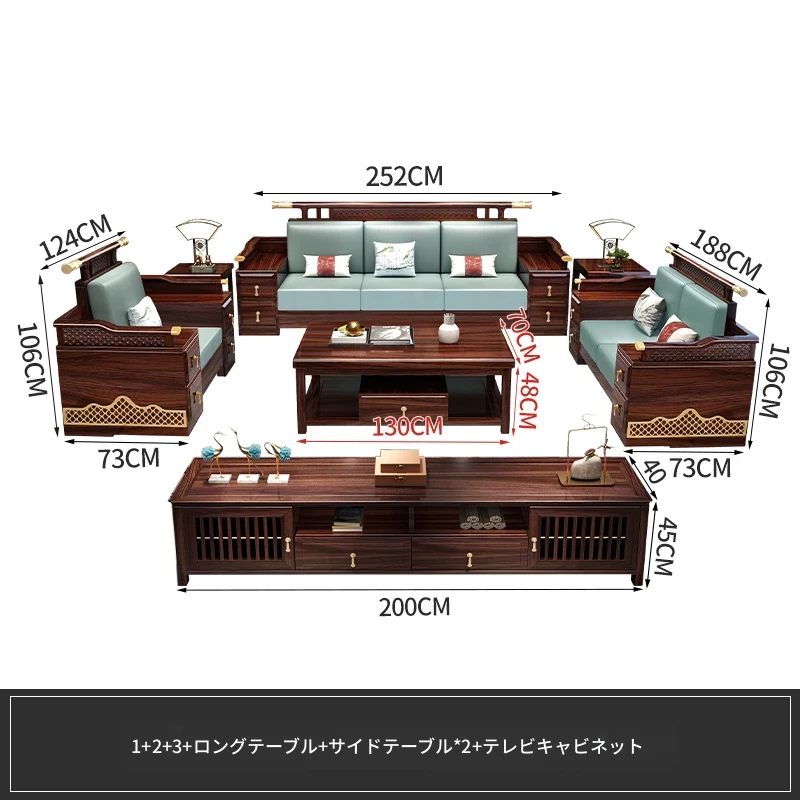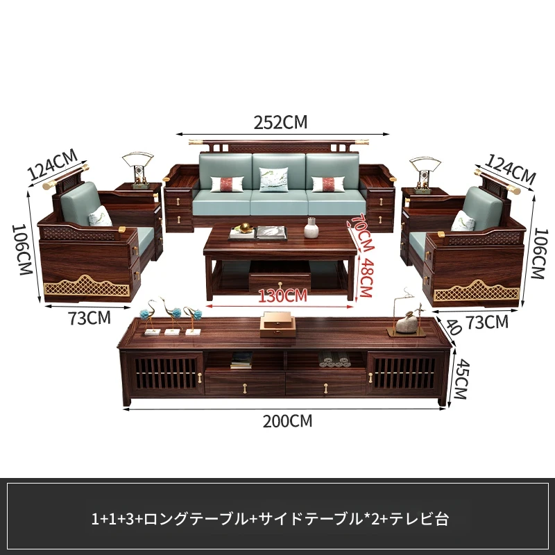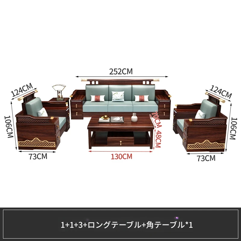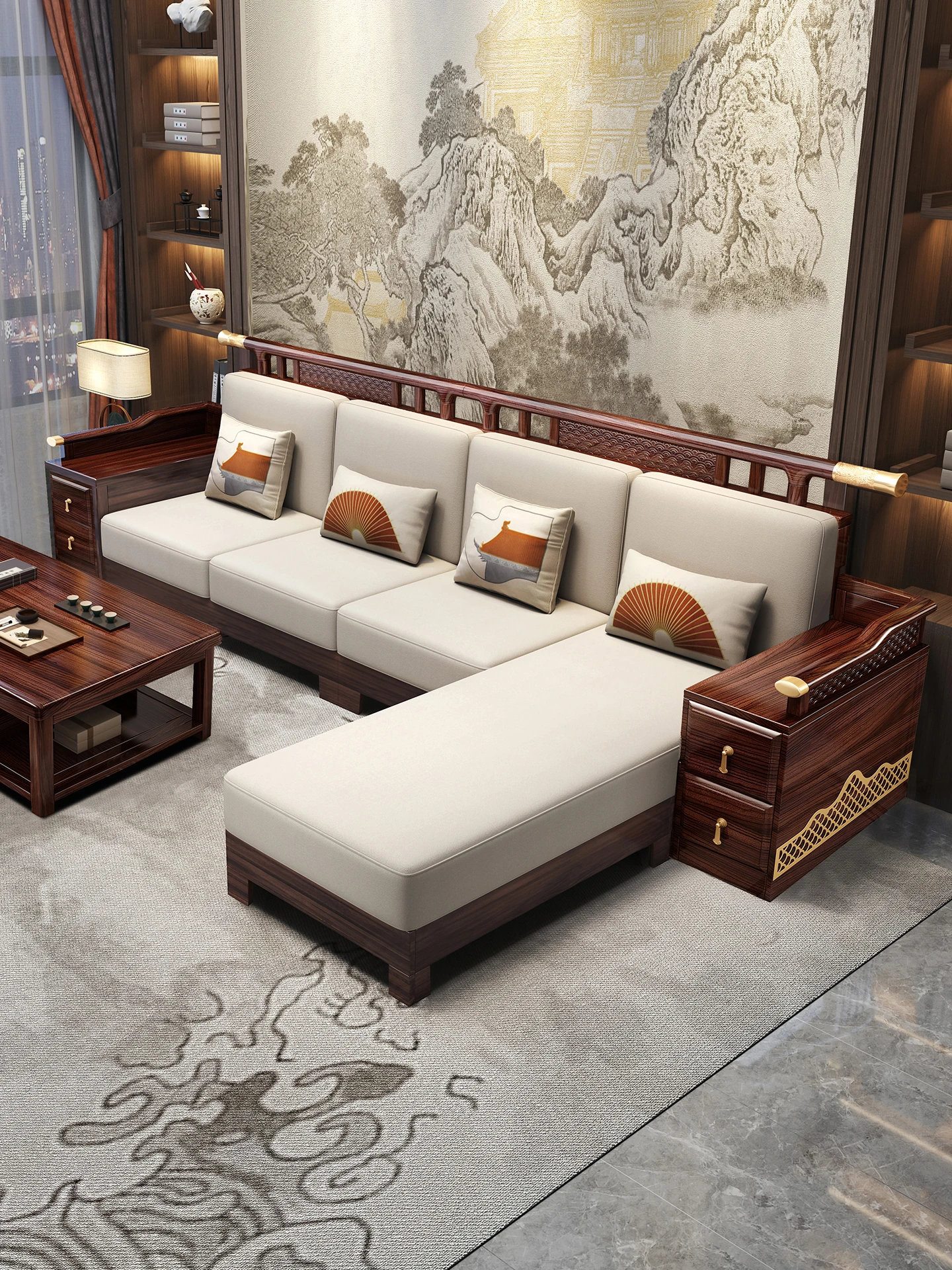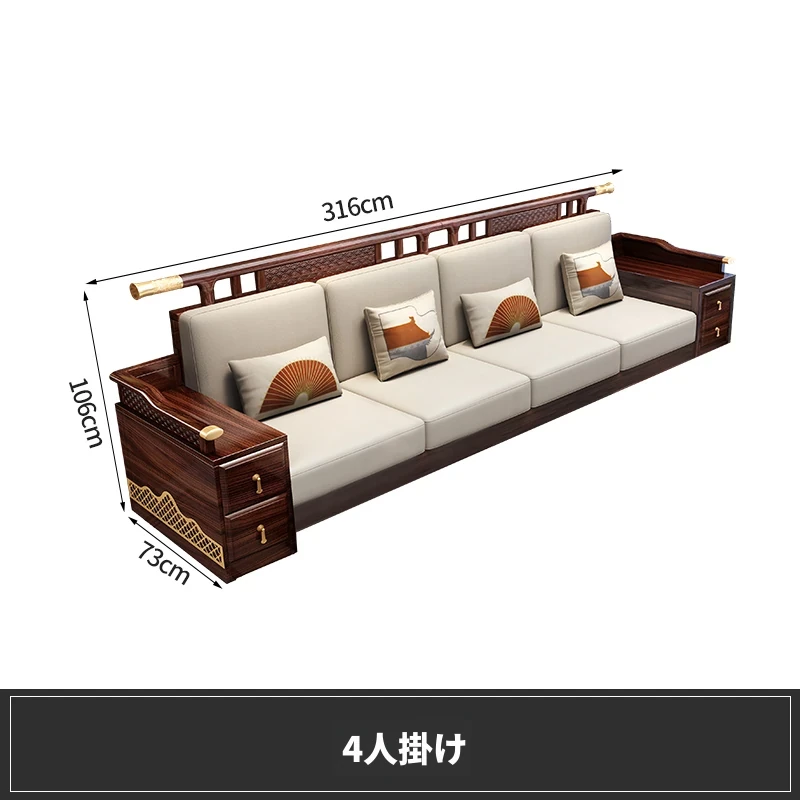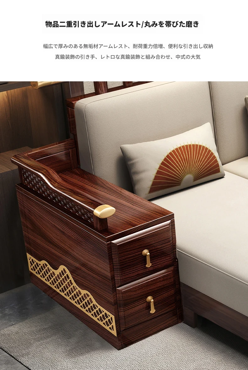 ウーキン木の無垢材ソファセット 新中式の軽奢華スタイル L字型の貴妃ソファ 大小どちらのリビングにぴったりなシンプルな木製家具で、優雅な空間を演出します。