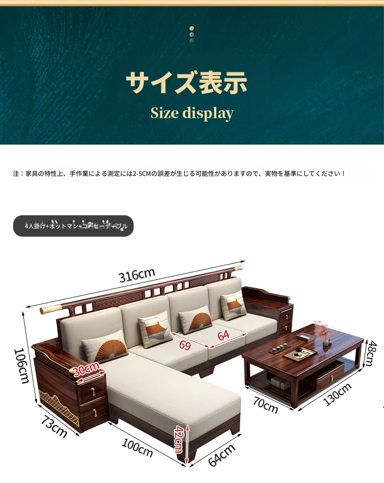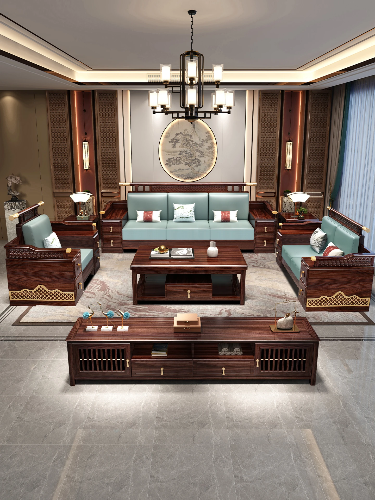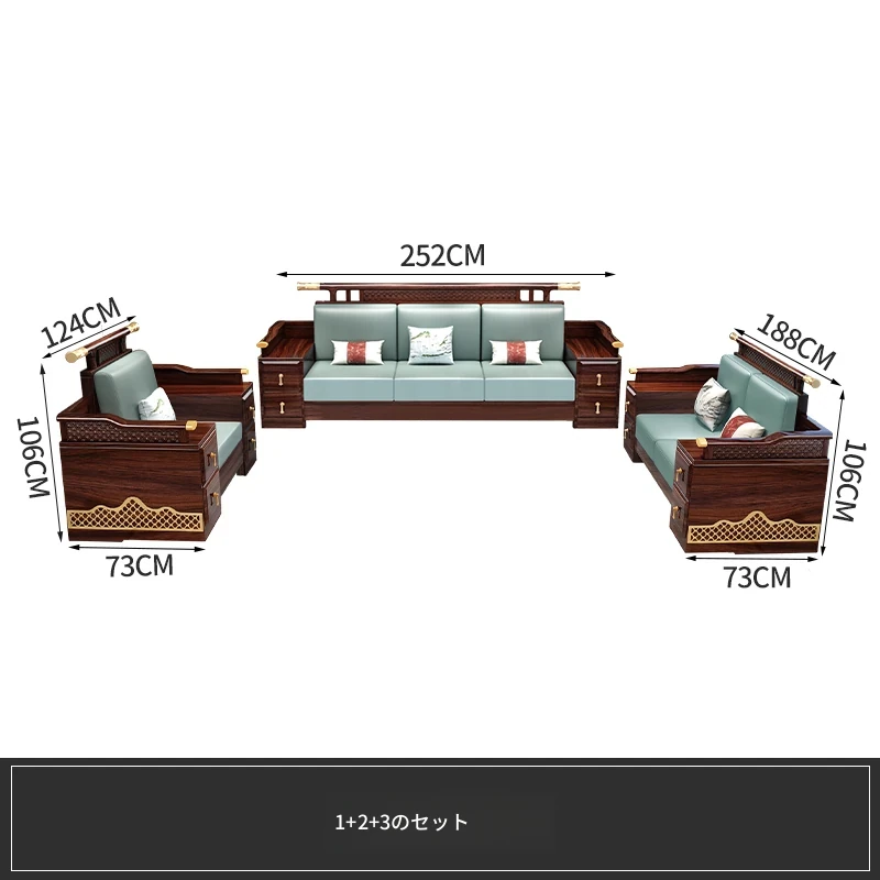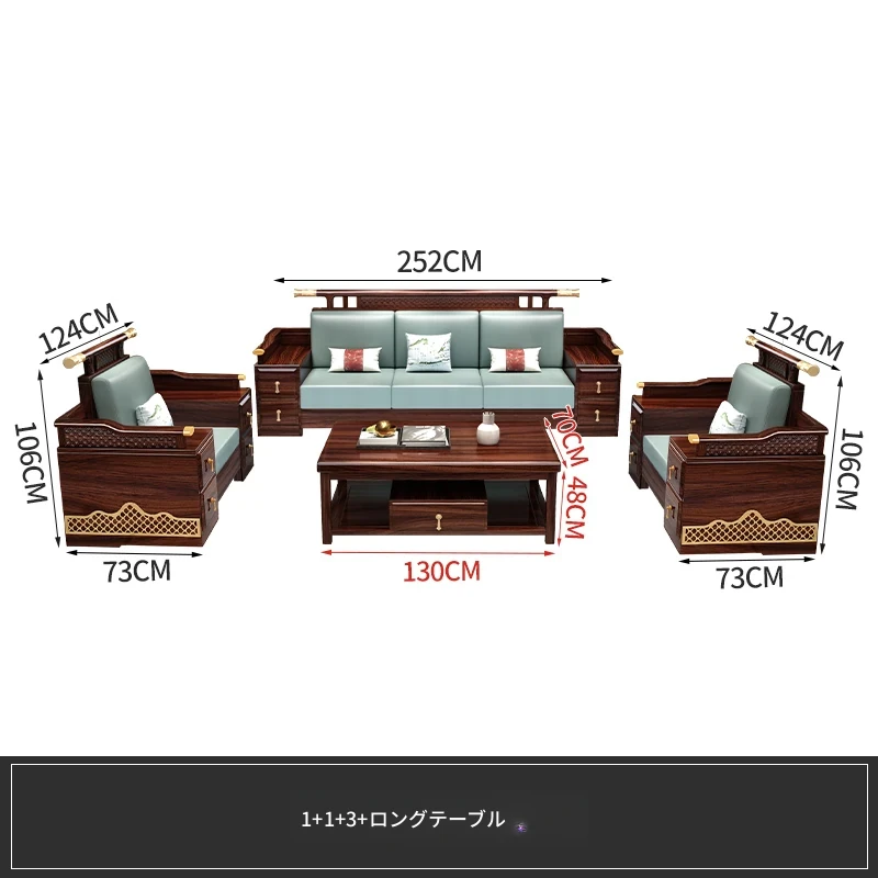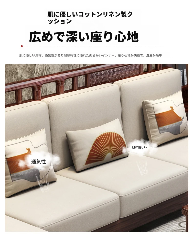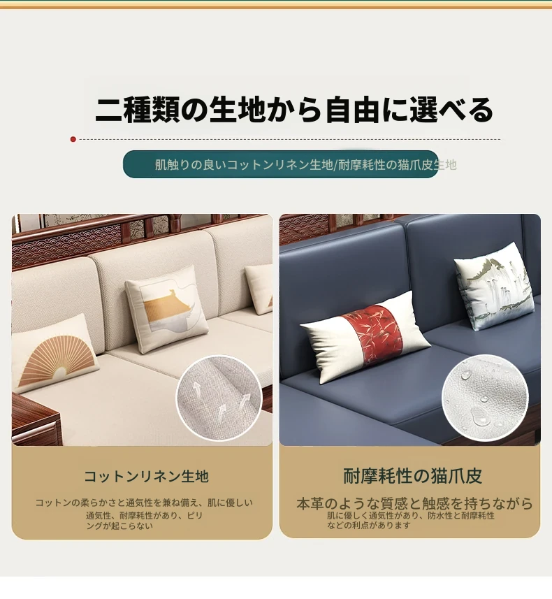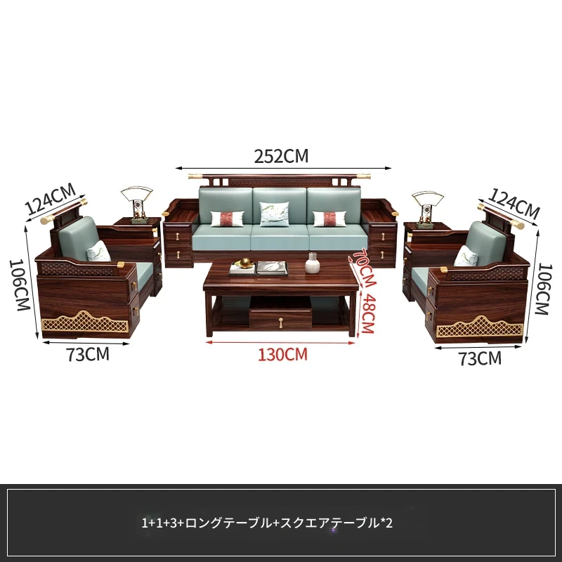 ウーキン木の無垢材ソファセット 新中式の軽奢華スタイル L字型の貴妃ソファ 大小どちらのリビングにぴったりなシンプルな木製家具で、優雅な空間を演出します。