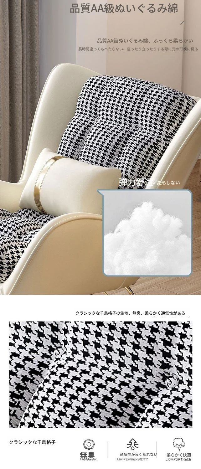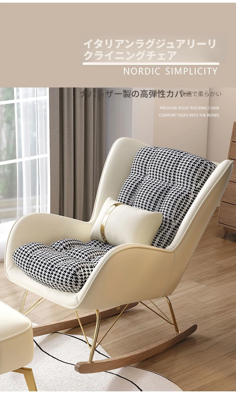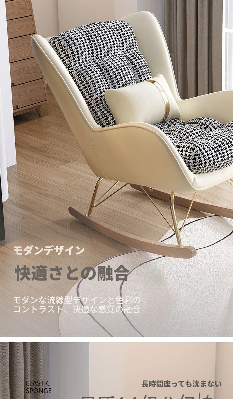 北欧風のラグジュアリーなリラックスチェア|おしゃれなバルコニーやリビング、寝室にぴったり!千鳥格子デザインのトレンディな揺り椅子で、快適なひとときをお楽しみください。
