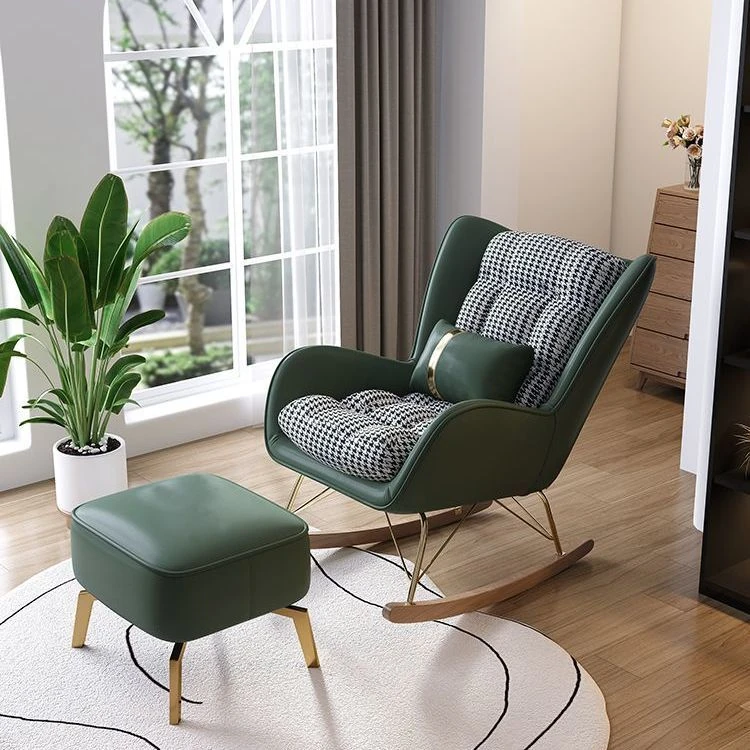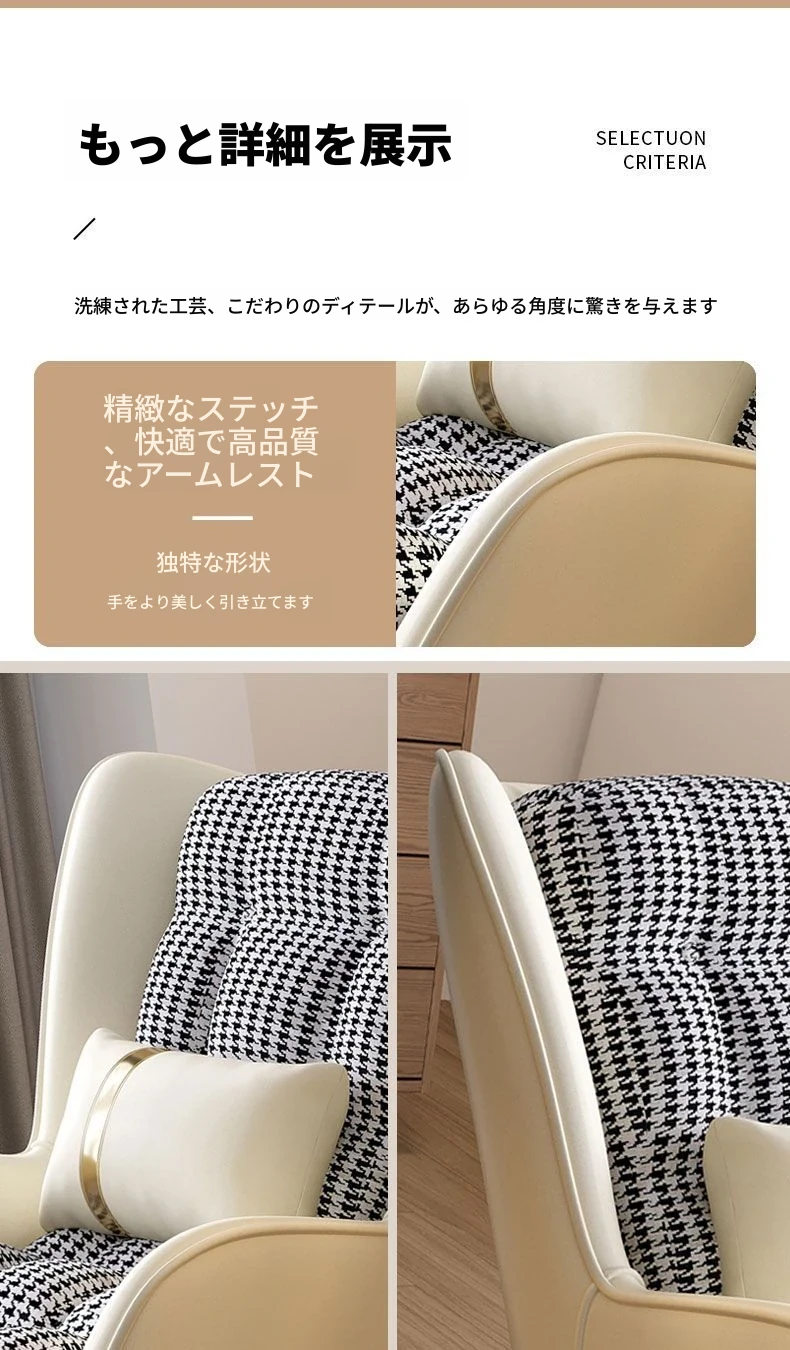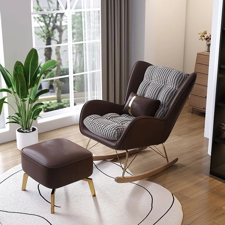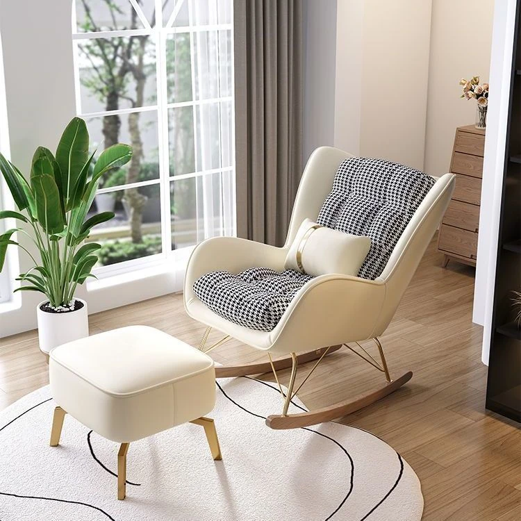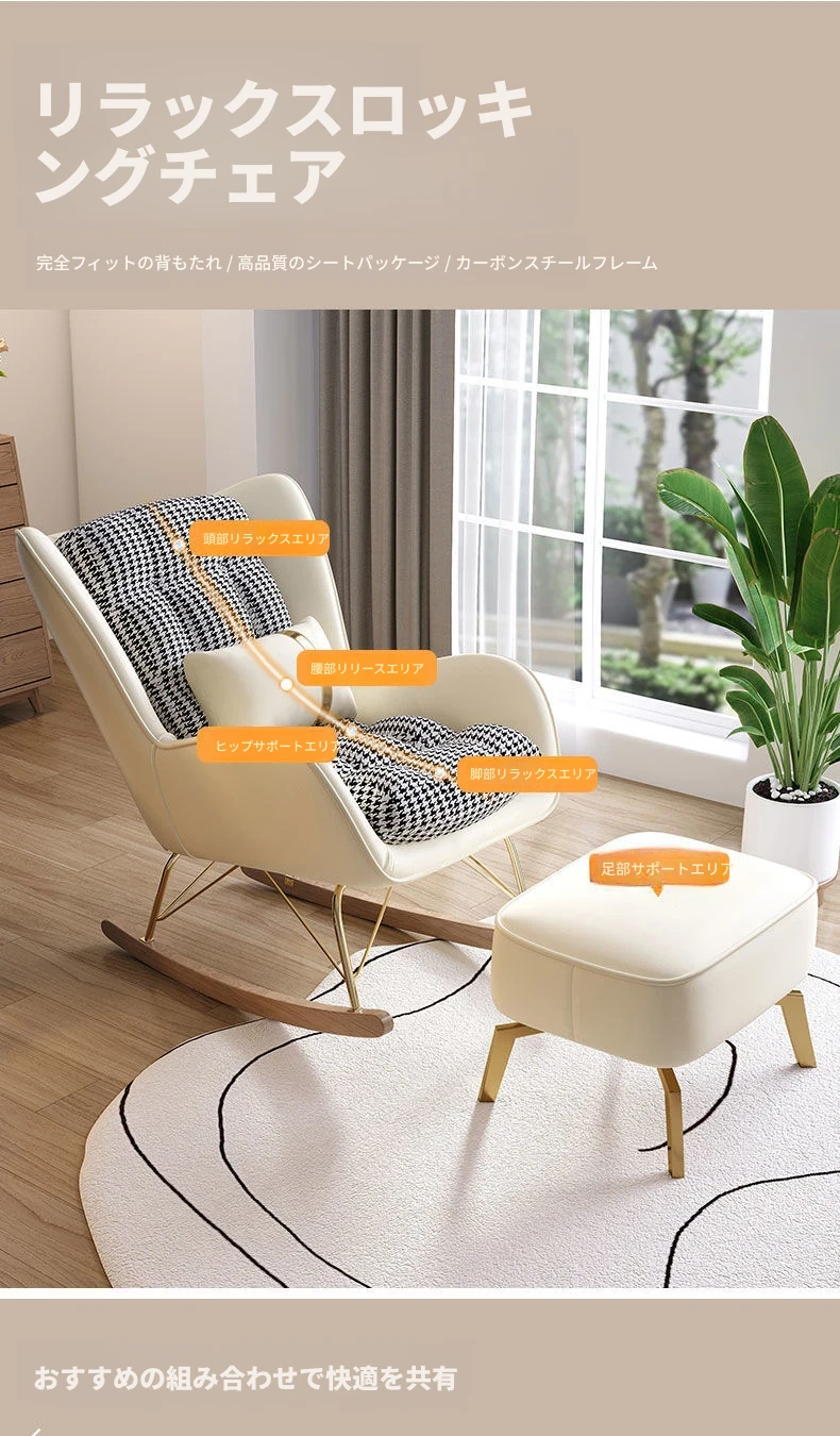 北欧風のラグジュアリーなリラックスチェア|おしゃれなバルコニーやリビング、寝室にぴったり!千鳥格子デザインのトレンディな揺り椅子で、快適なひとときをお楽しみください。