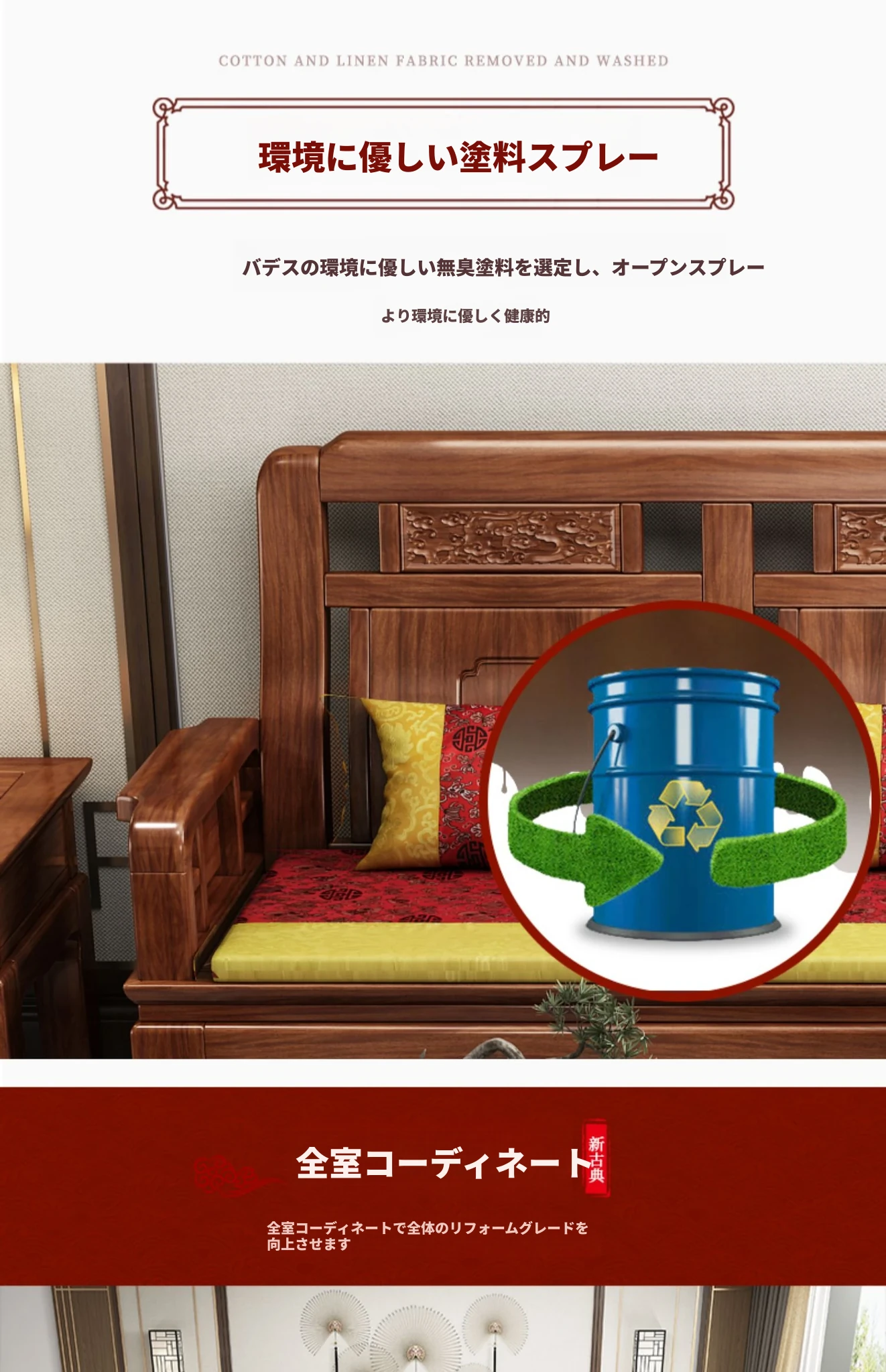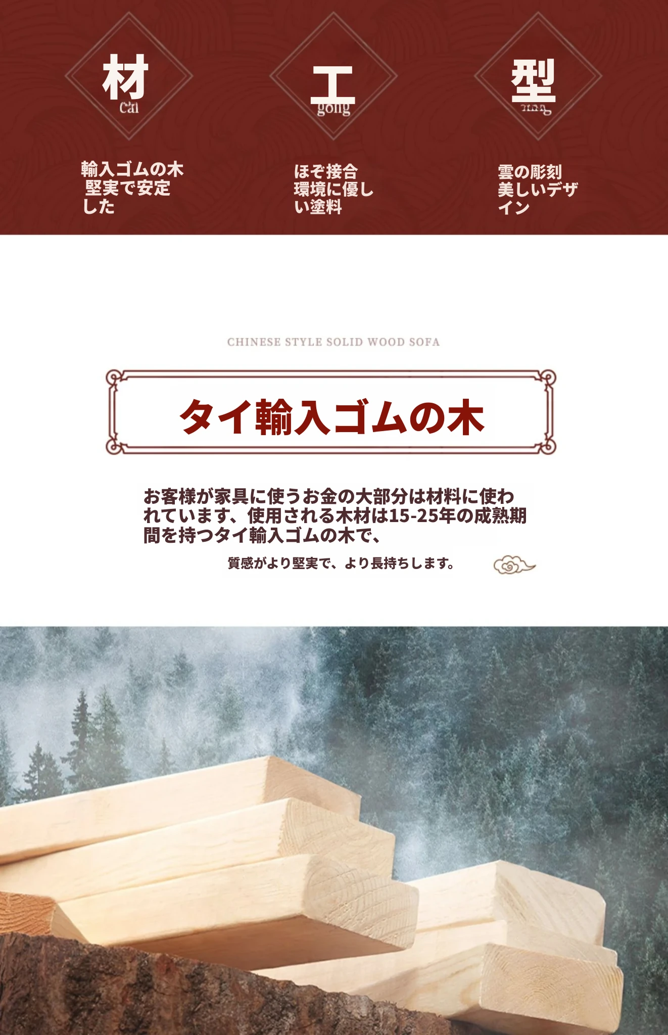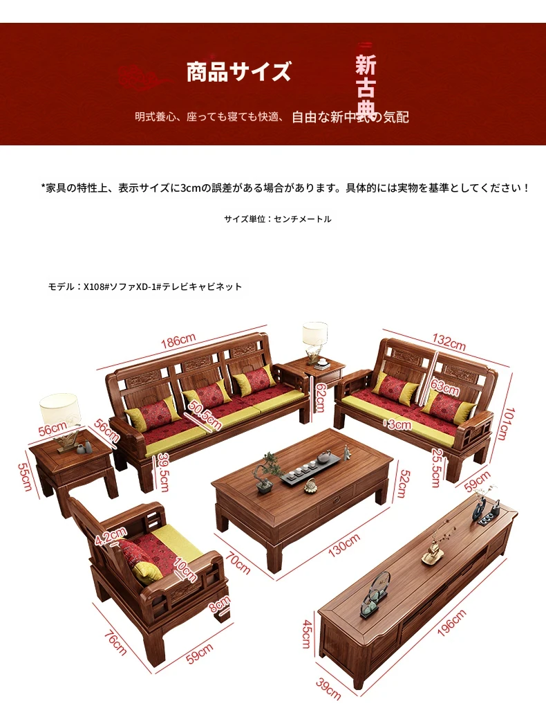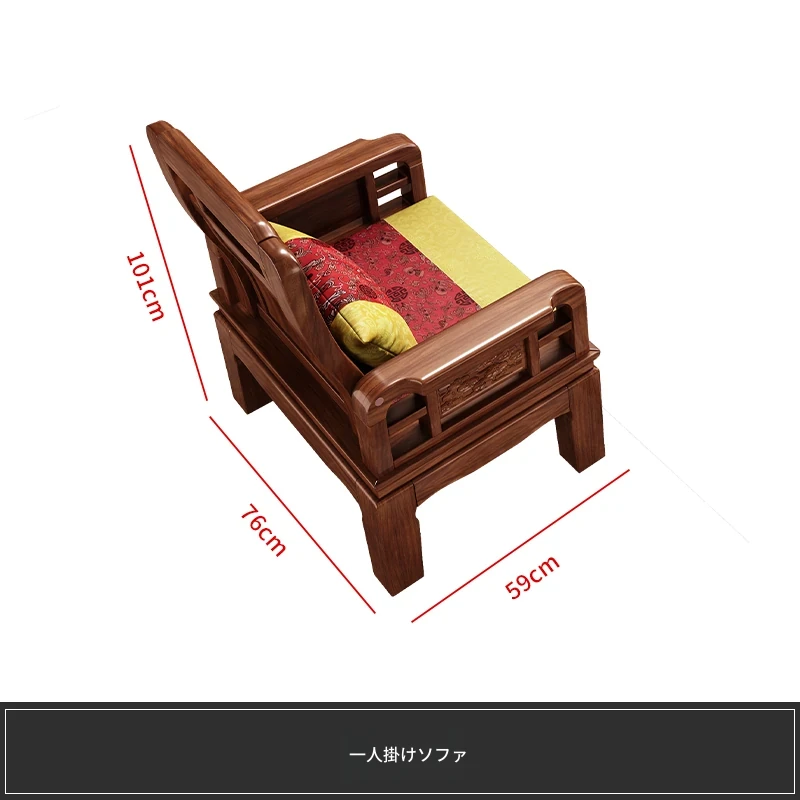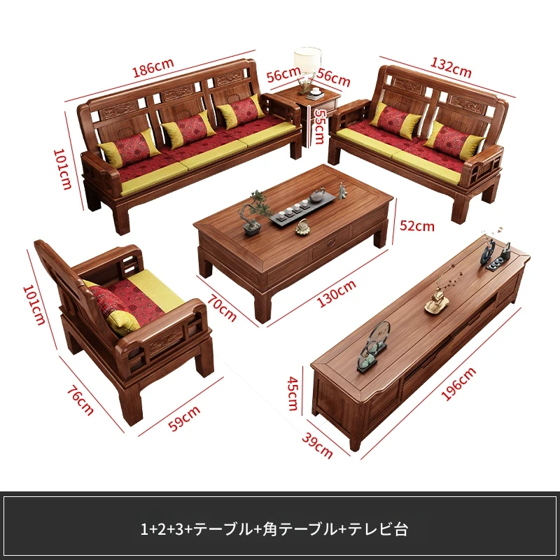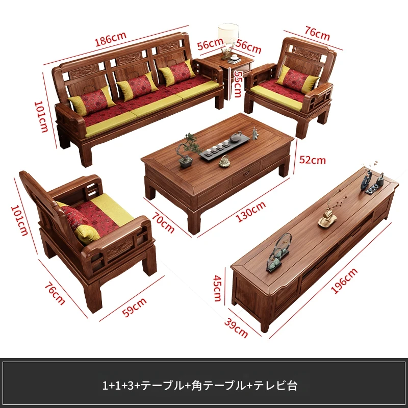 彫刻デザインの古典中式実木ソファ - 小型住宅に最適!冬夏両用、明清風のアンティークスタイルで、リビングルームを華やかに彩る123仿紅木家具。快適さと美しさを兼ね備えた一品!