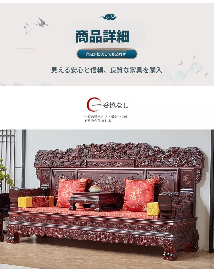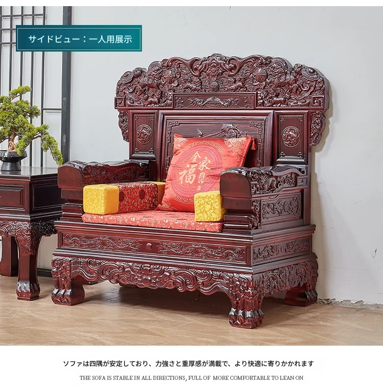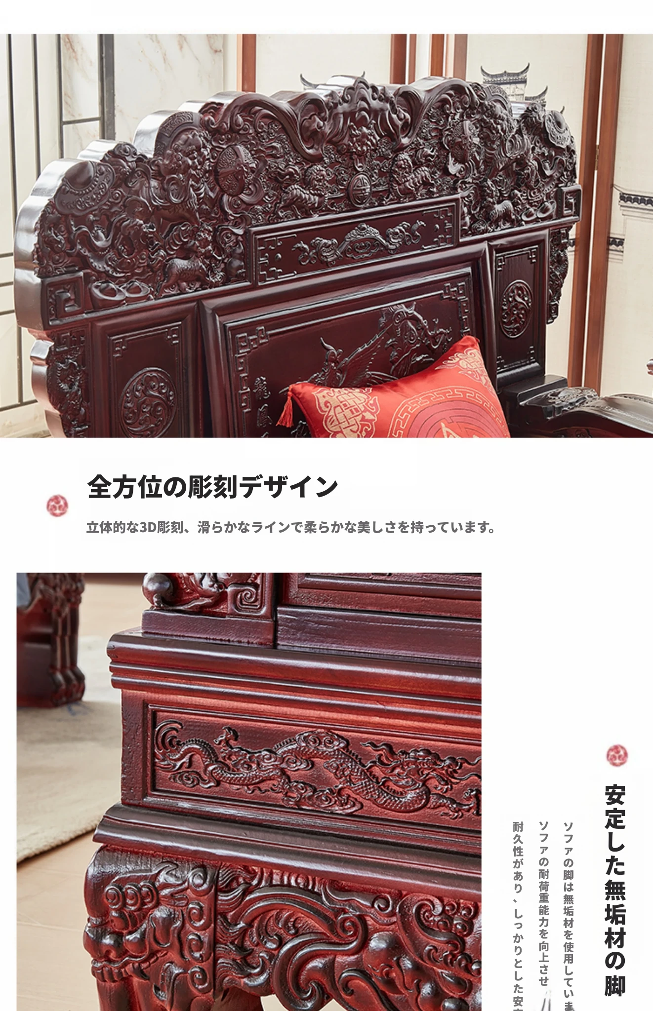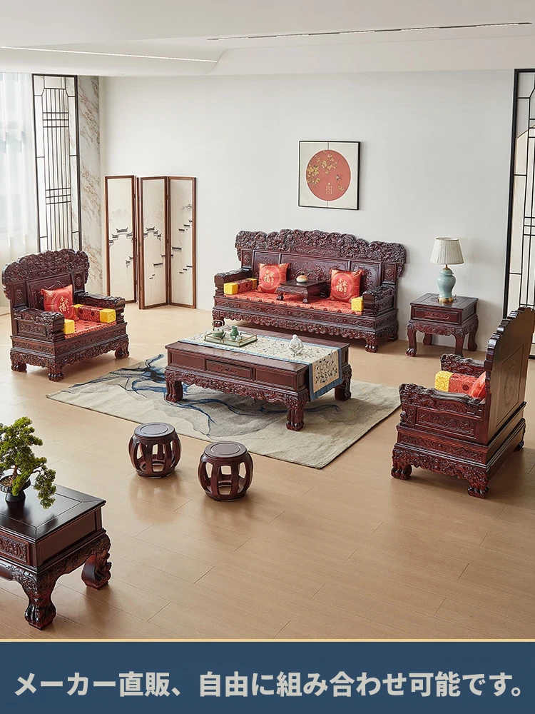明清風格の中華スタイル、本格的な無垢材のソファセット!豪華な紅木家具、リビングルームにぴったり。大小様々な部屋に対応したアンティーク調デザインで、洗練された空間を演出します。