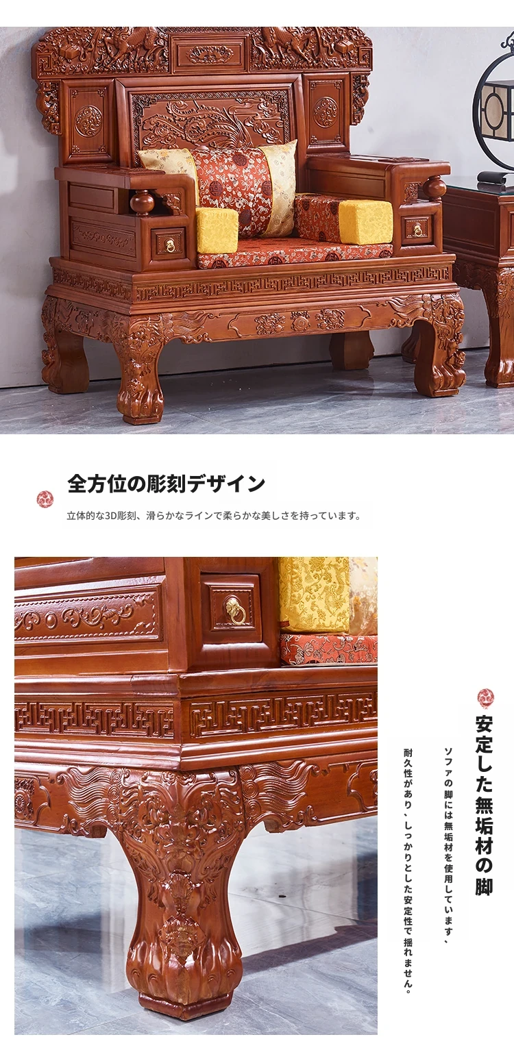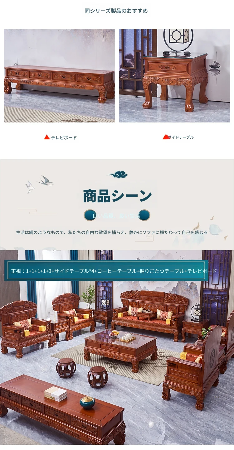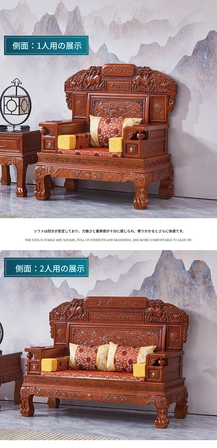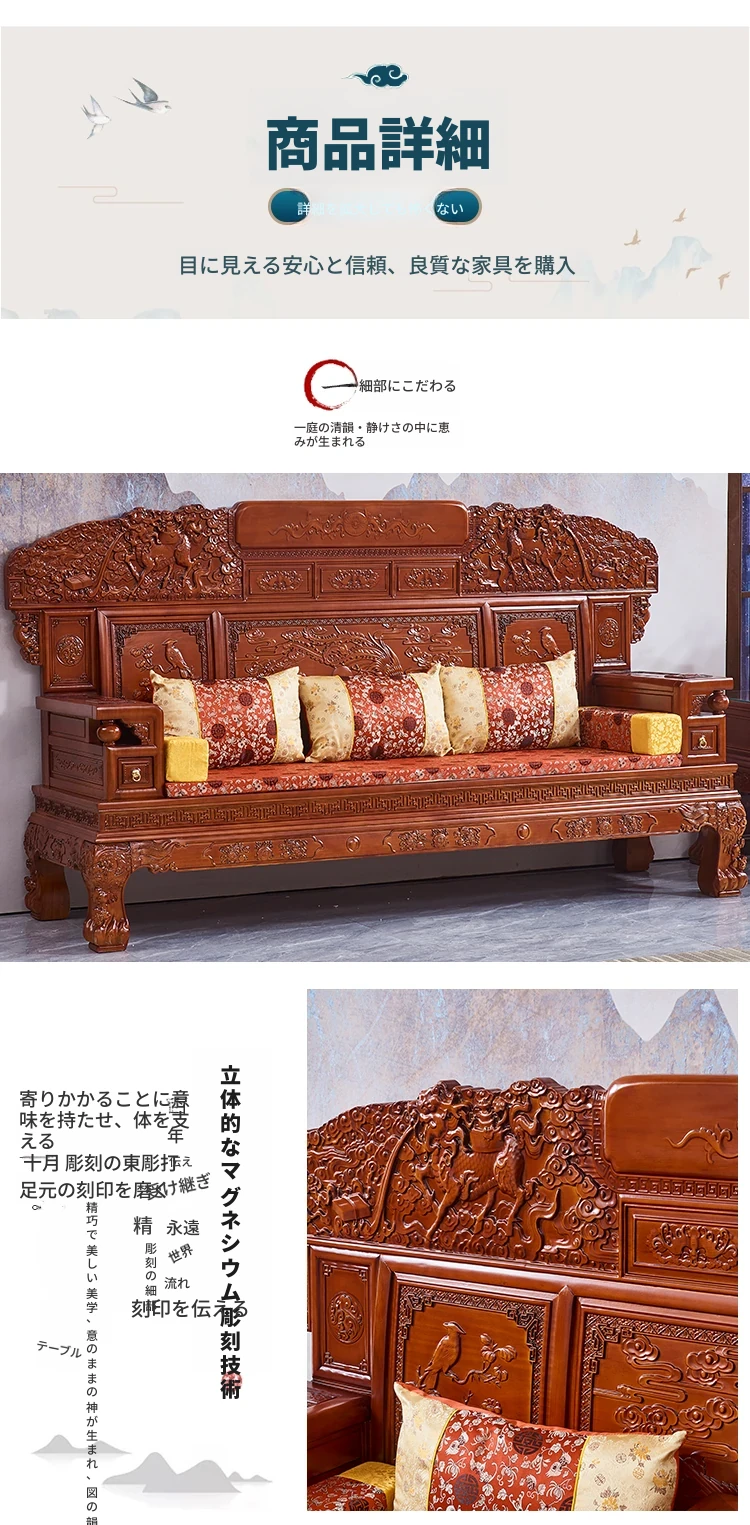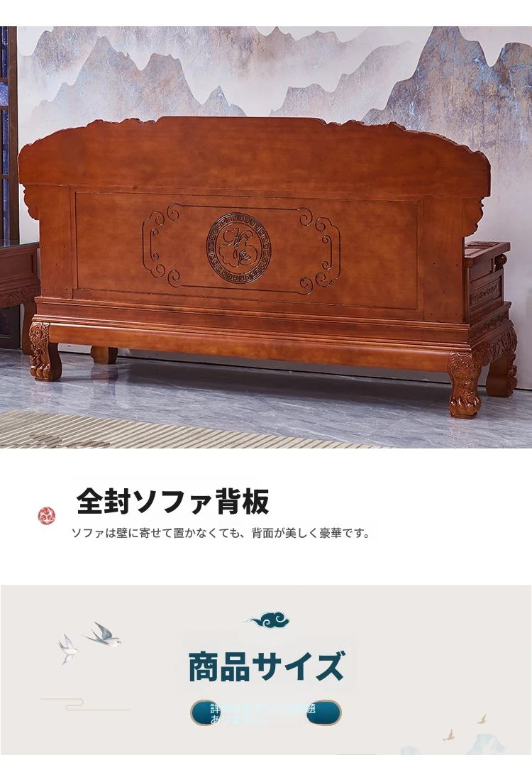 明清風格の本格的な無垢材ソファセット - 高級紅木製、彫刻が美しい古典的なデザインで、リビングルームにぴったりの全家具揃い!エレガントな雰囲気を演出し、上質なひとときをお楽しみください。