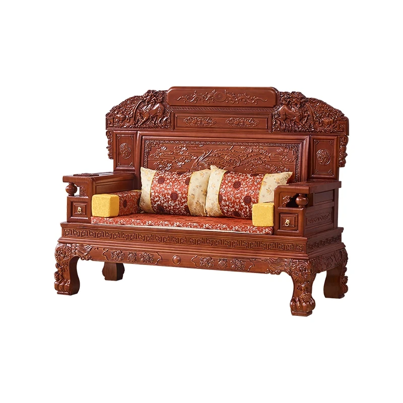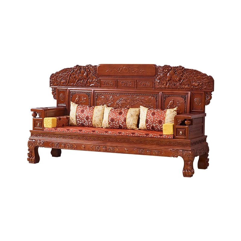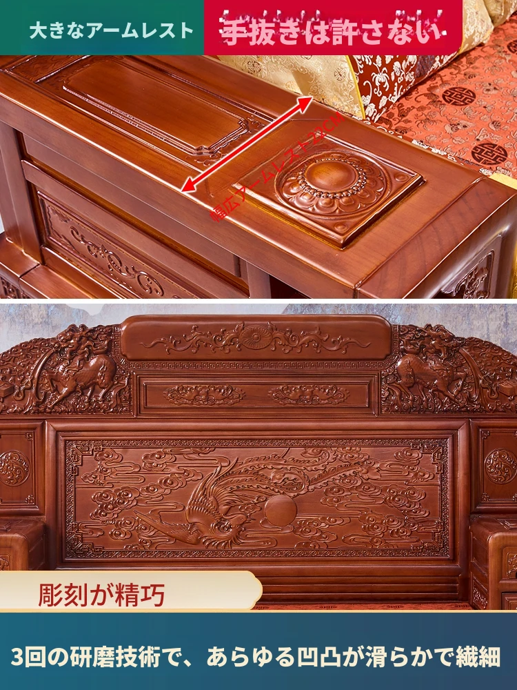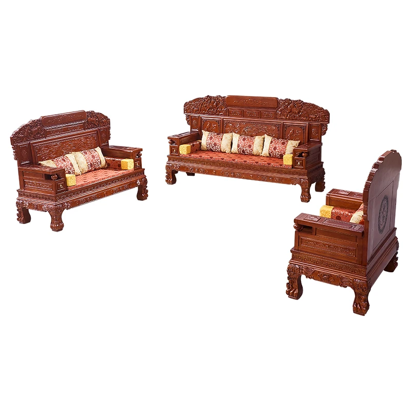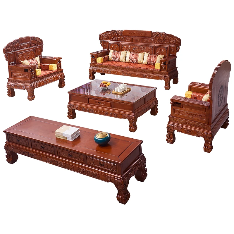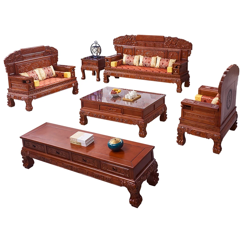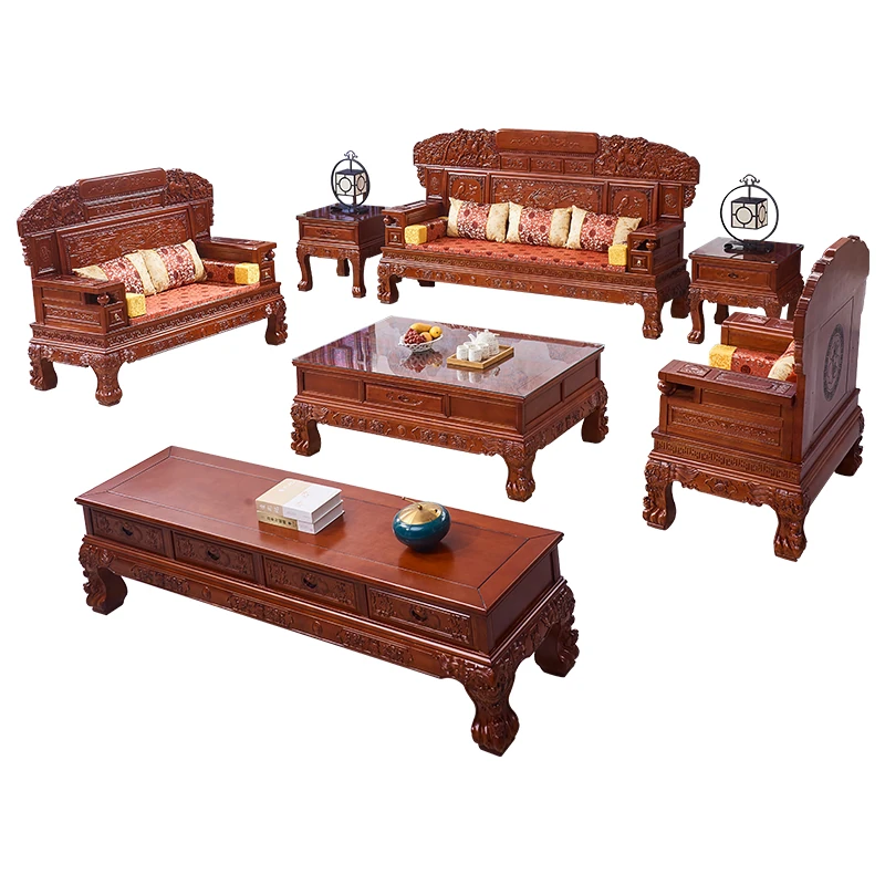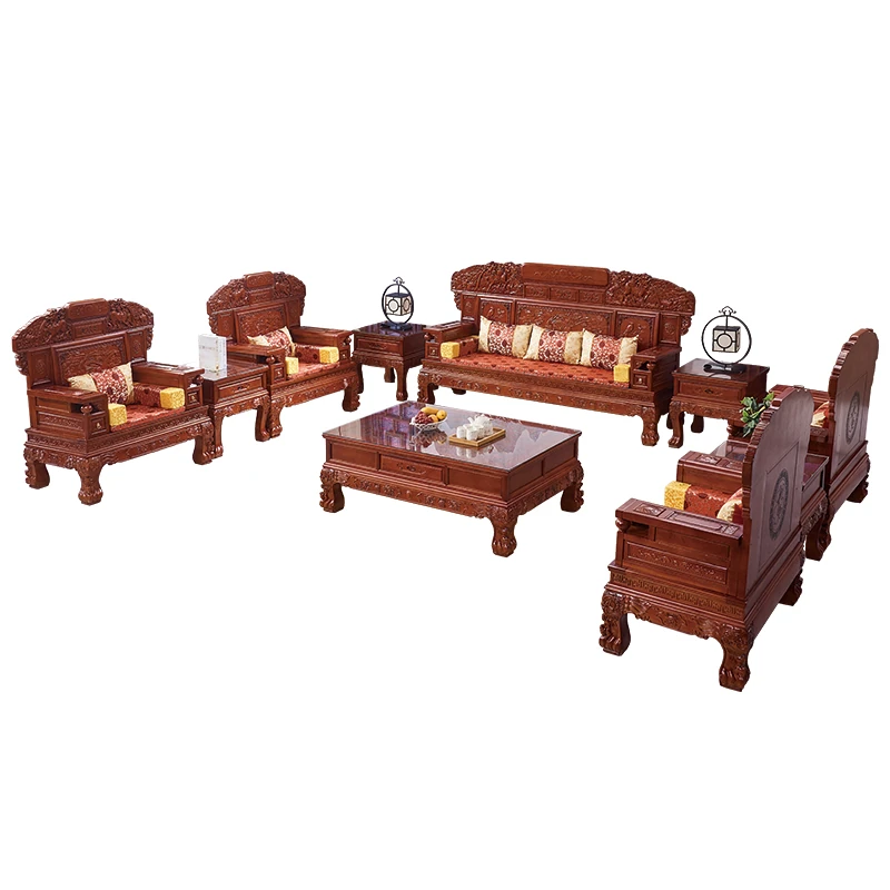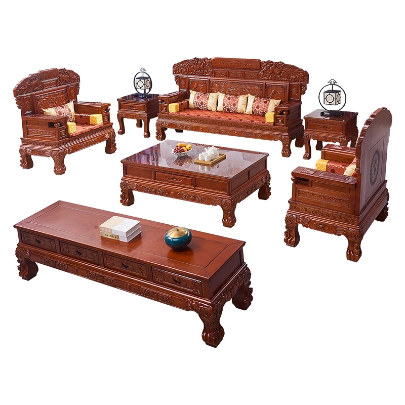 明清風格の本格的な無垢材ソファセット - 高級紅木製、彫刻が美しい古典的なデザインで、リビングルームにぴったりの全家具揃い!エレガントな雰囲気を演出し、上質なひとときをお楽しみください。