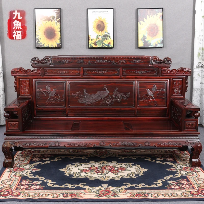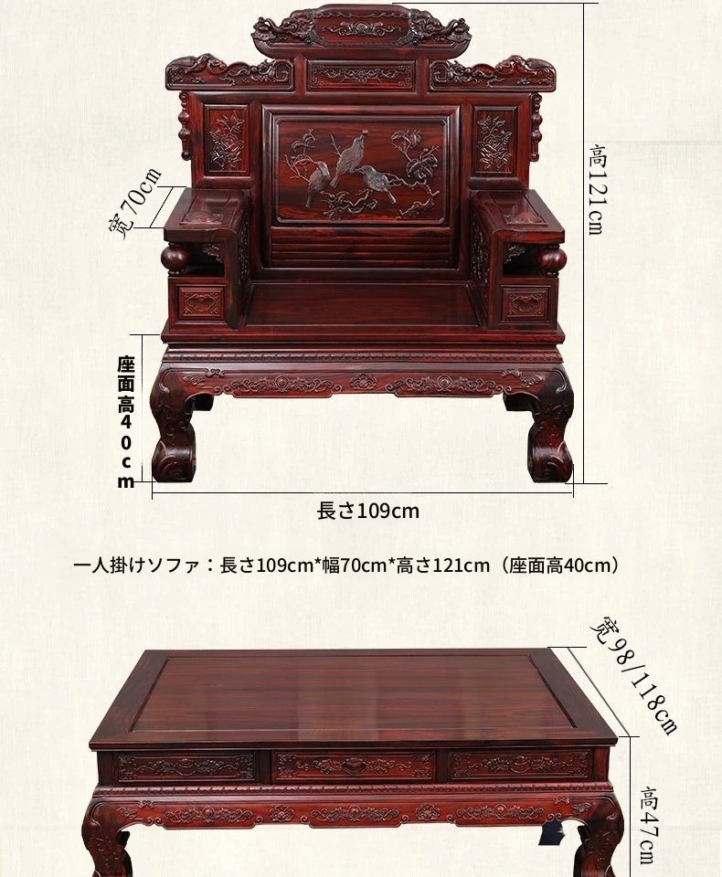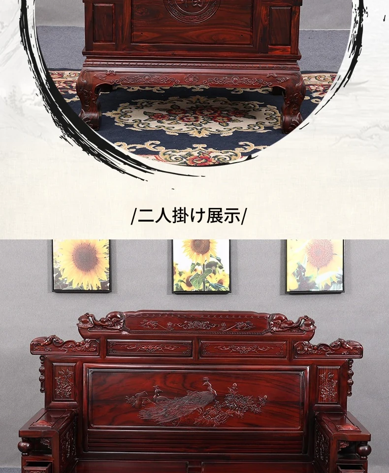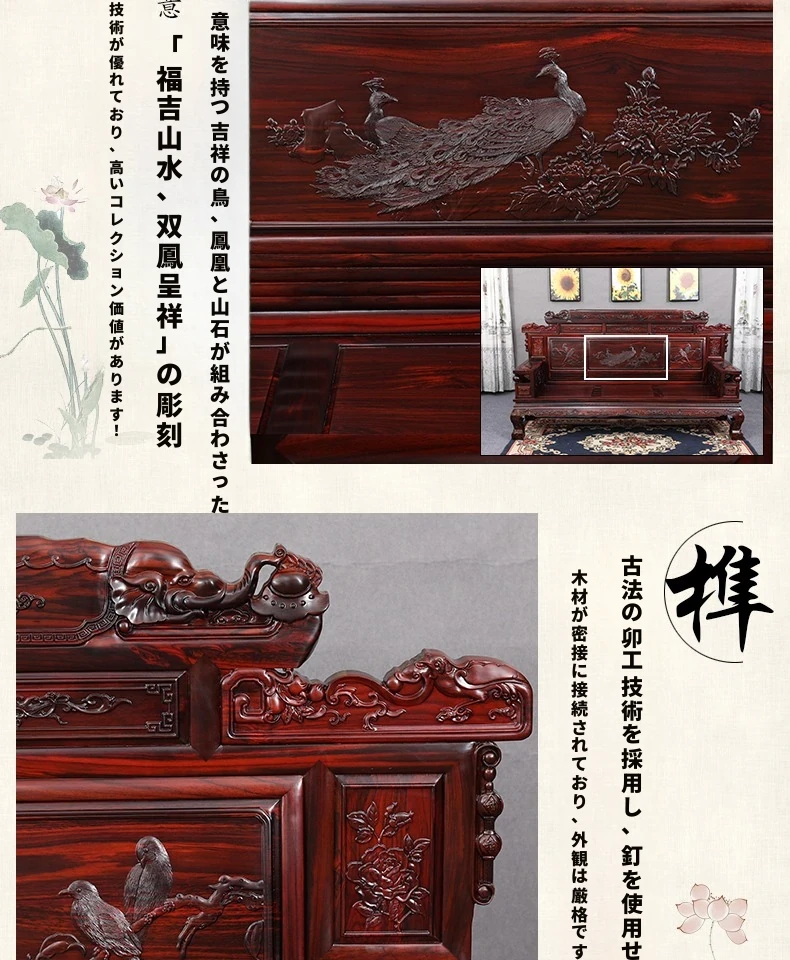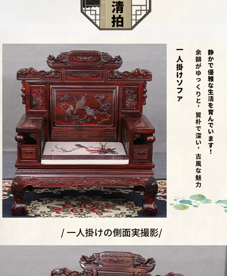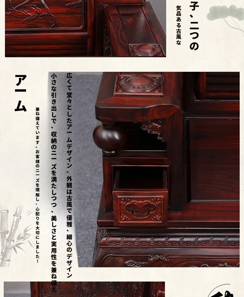 国産レッドウッド家具 フルセット リビングルーム用 インドネシア産ブラックローズウッドソファ 幅広のイエローパルサンダー 中華風アフリカンローズウッド使用!高級感溢れるデザインで、上質なひとときをお届けします。