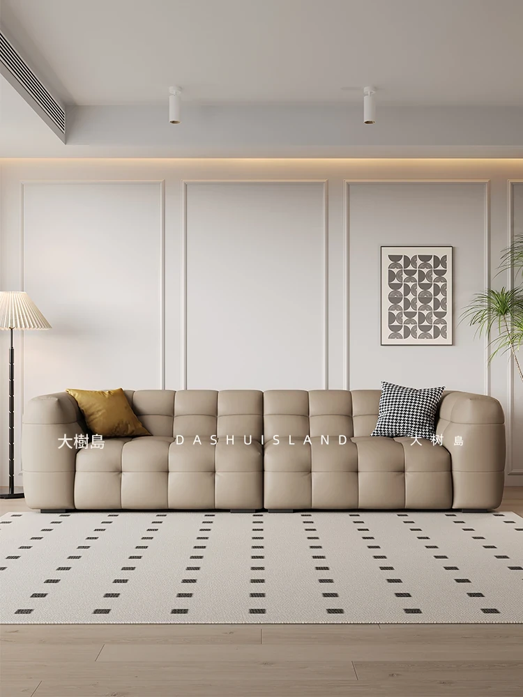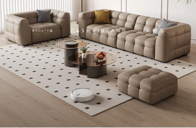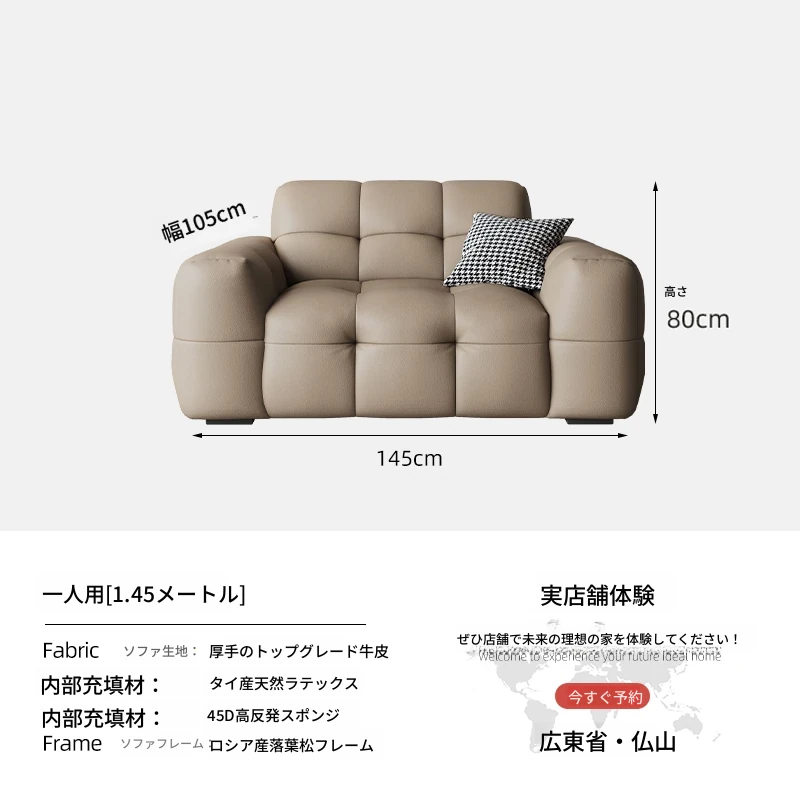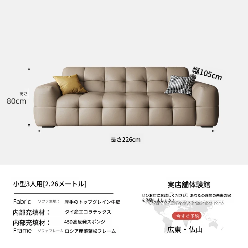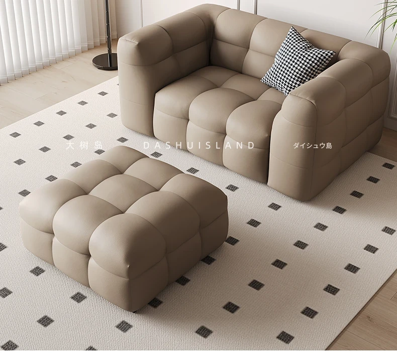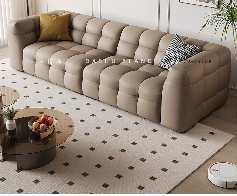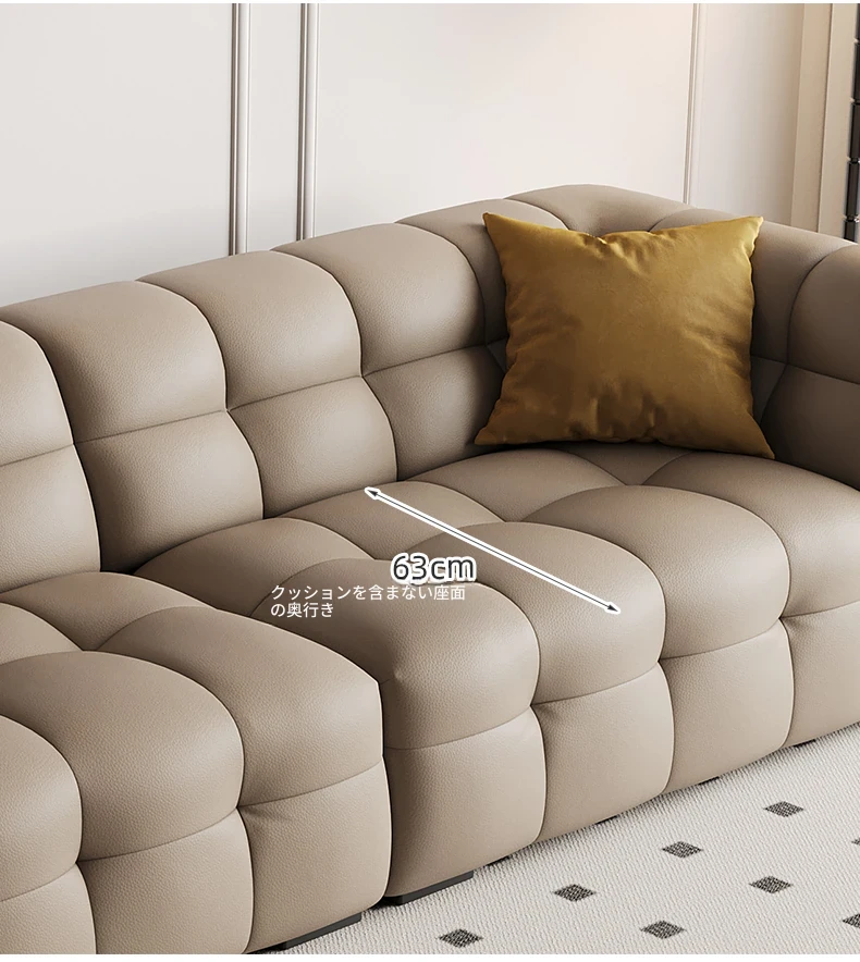 ダイシュウアイ 家庭用モダンミニマリストコットンキャンディスタイル 小型リビング向け レトロクリーム調 本革ソファ 直置きタイプでおしゃれな空間を演出!