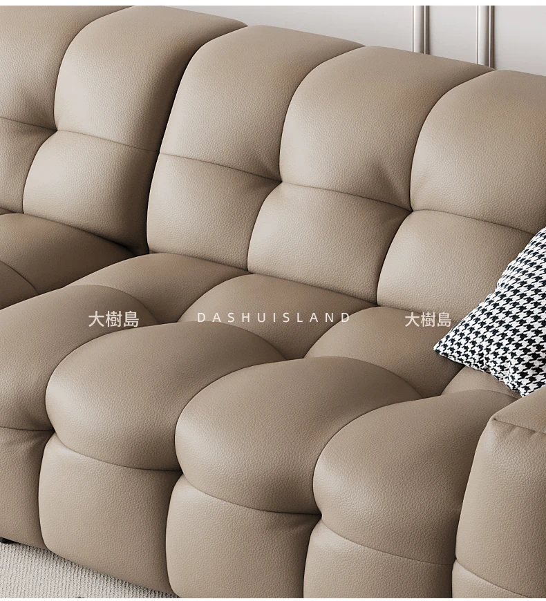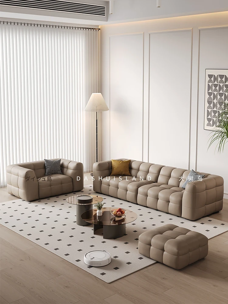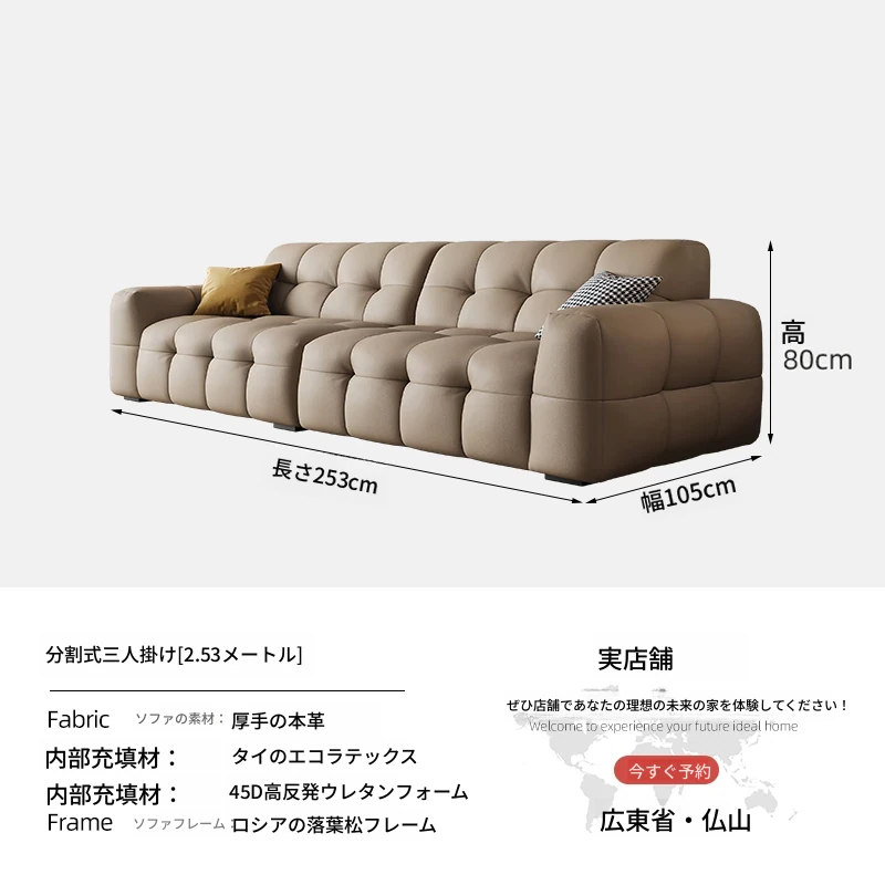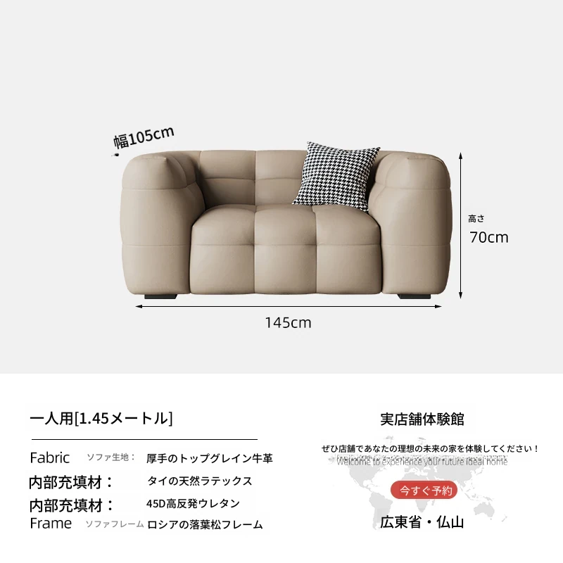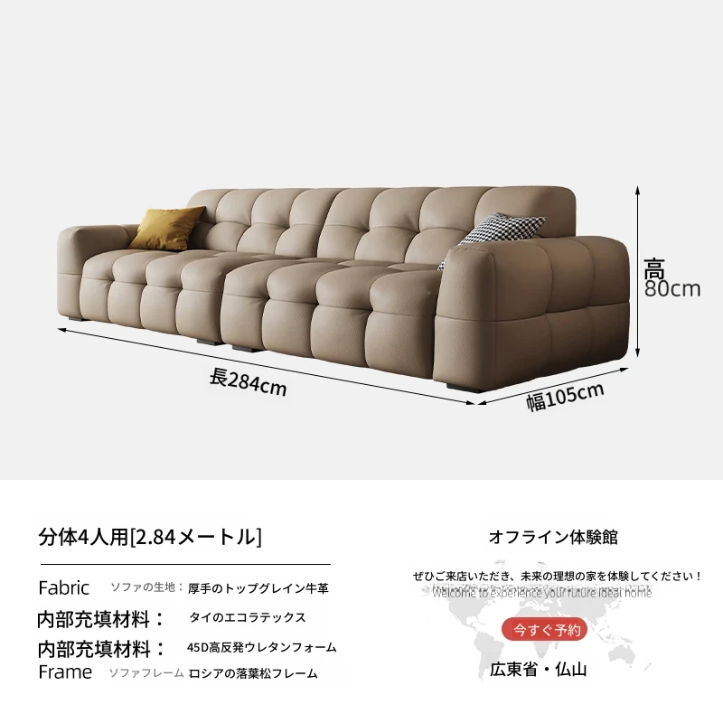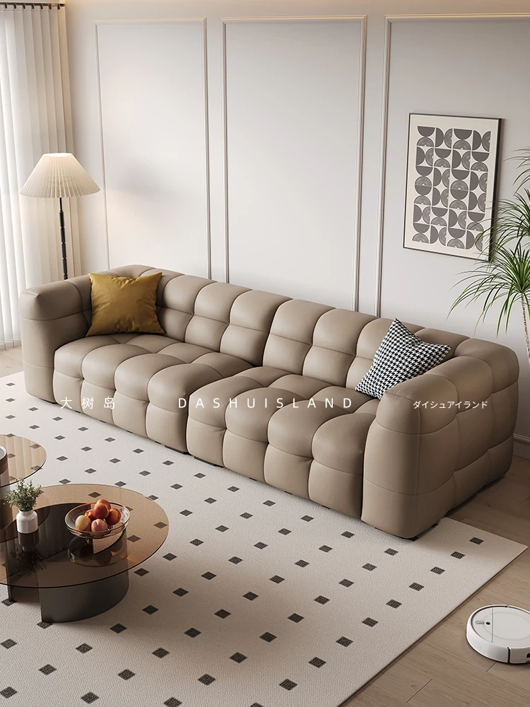 ダイシュウアイ 家庭用モダンミニマリストコットンキャンディスタイル 小型リビング向け レトロクリーム調 本革ソファ 直置きタイプでおしゃれな空間を演出!