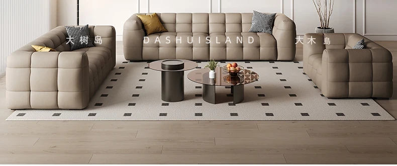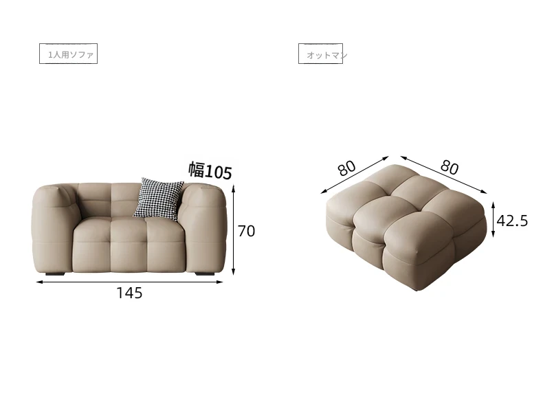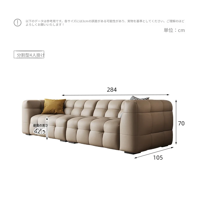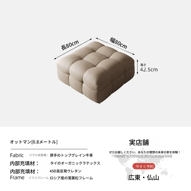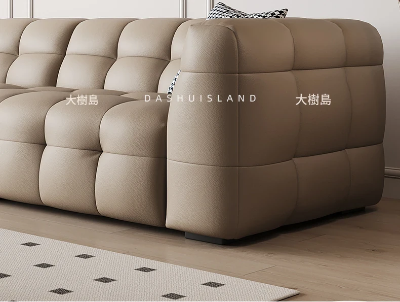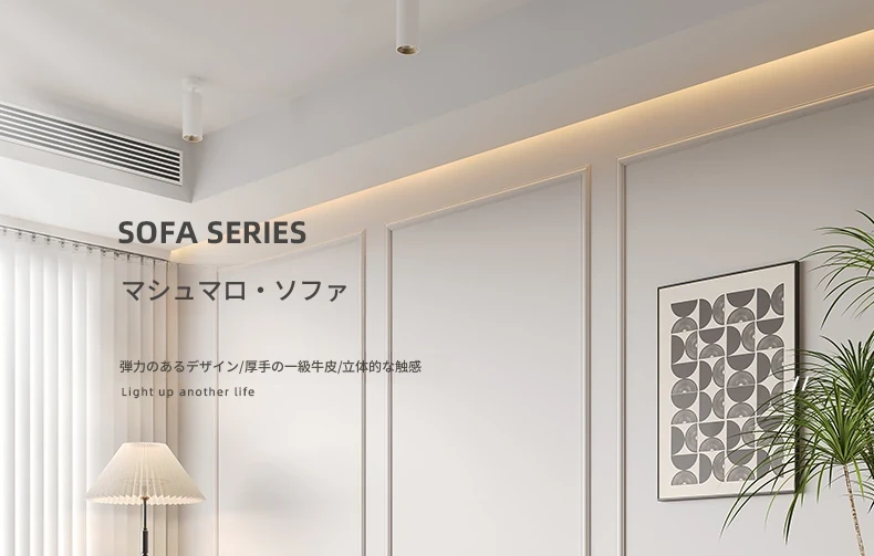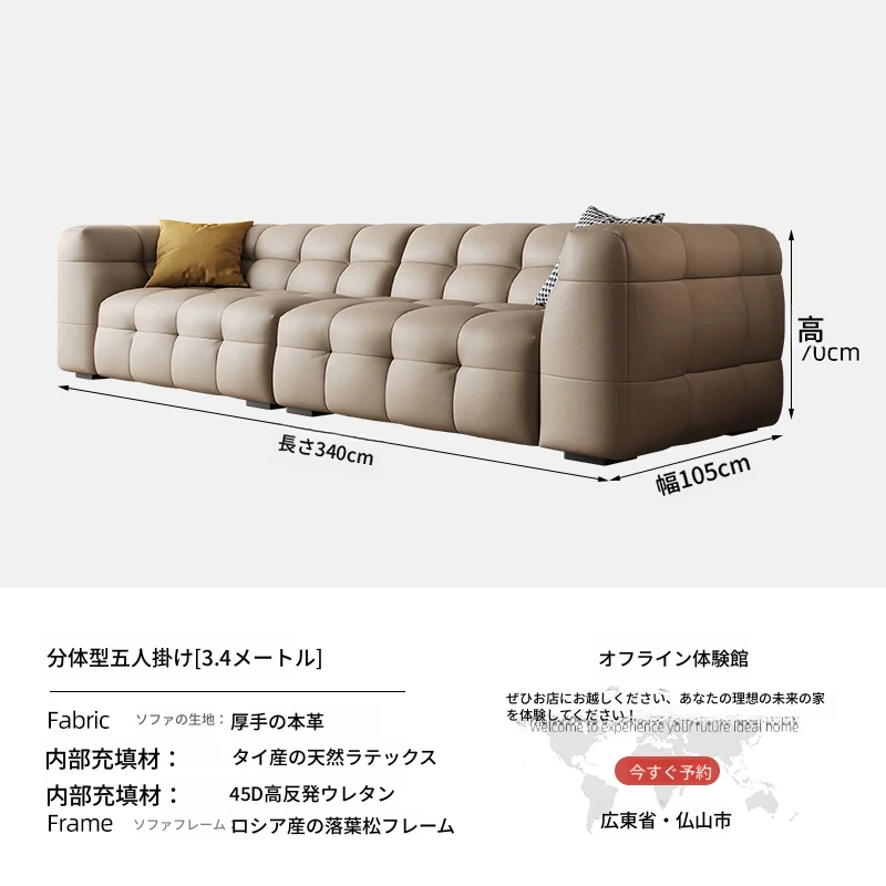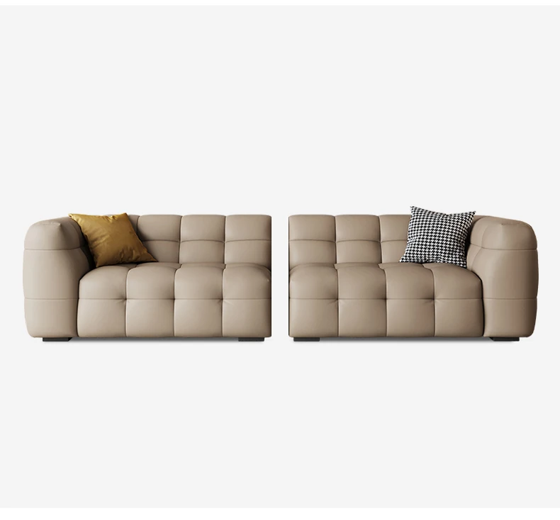 ダイシュウアイ 家庭用モダンミニマリストコットンキャンディスタイル 小型リビング向け レトロクリーム調 本革ソファ 直置きタイプでおしゃれな空間を演出!