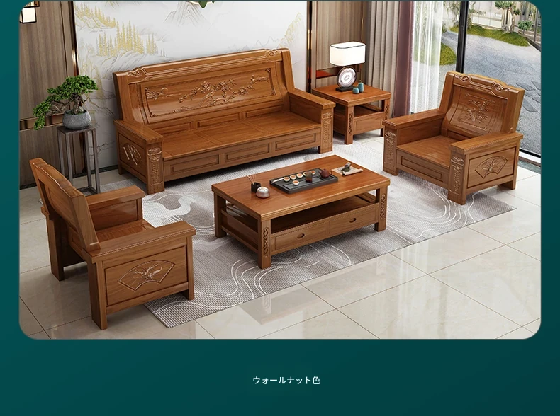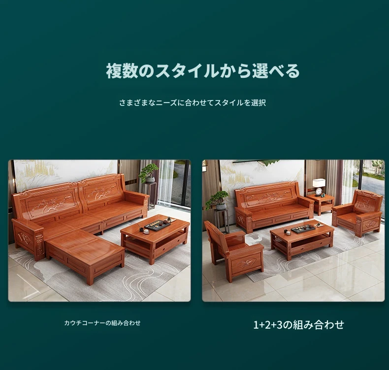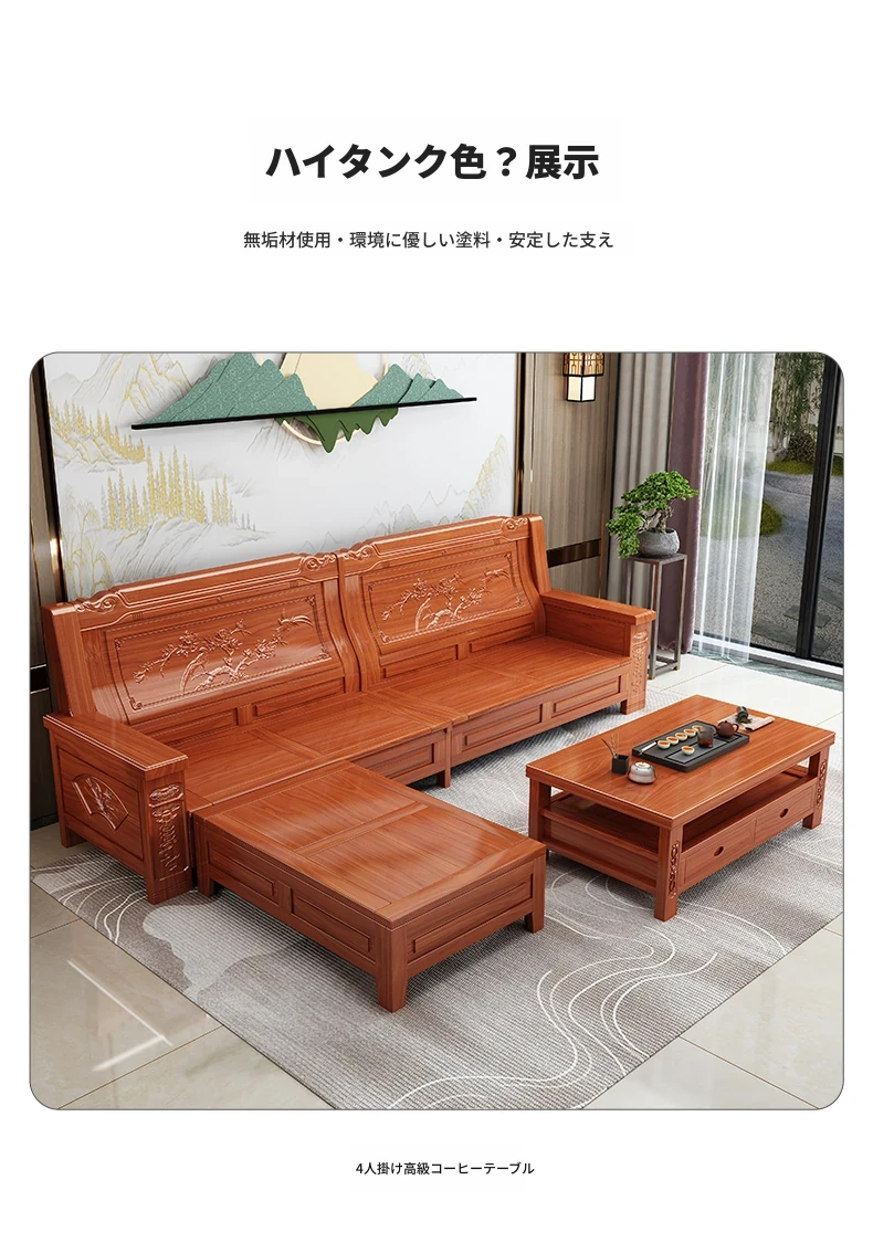 四人用ソファ+貴妃椅+ロングコーヒーテーブル