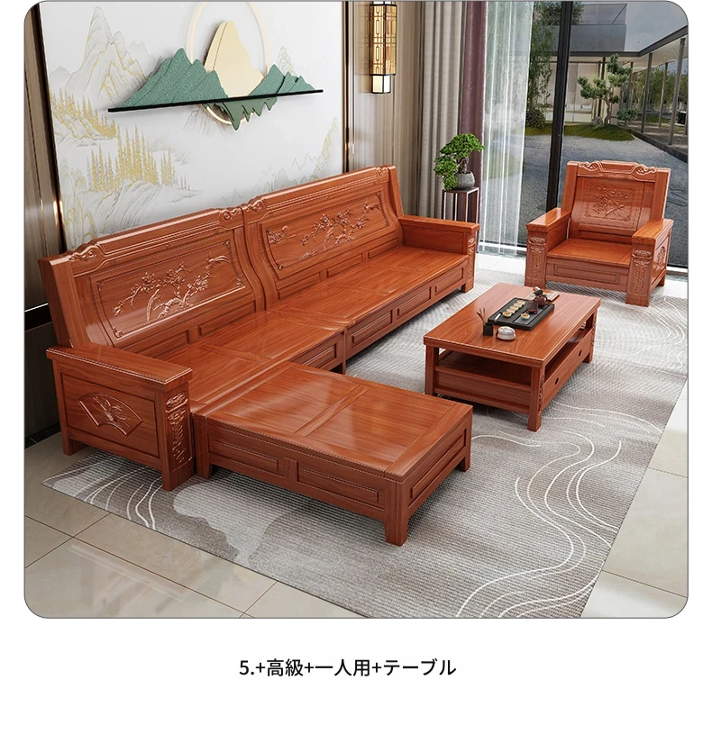 五人用ソファ+貴妃椅+ロングコーヒーテーブル