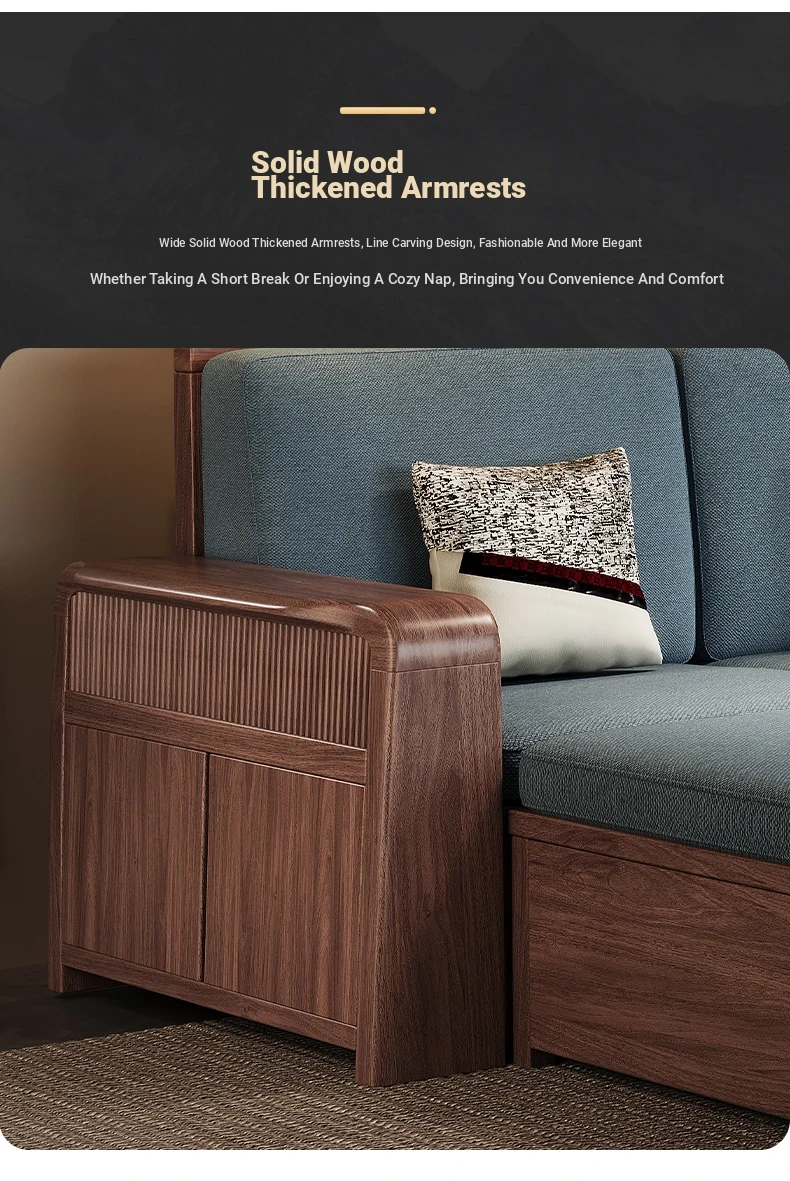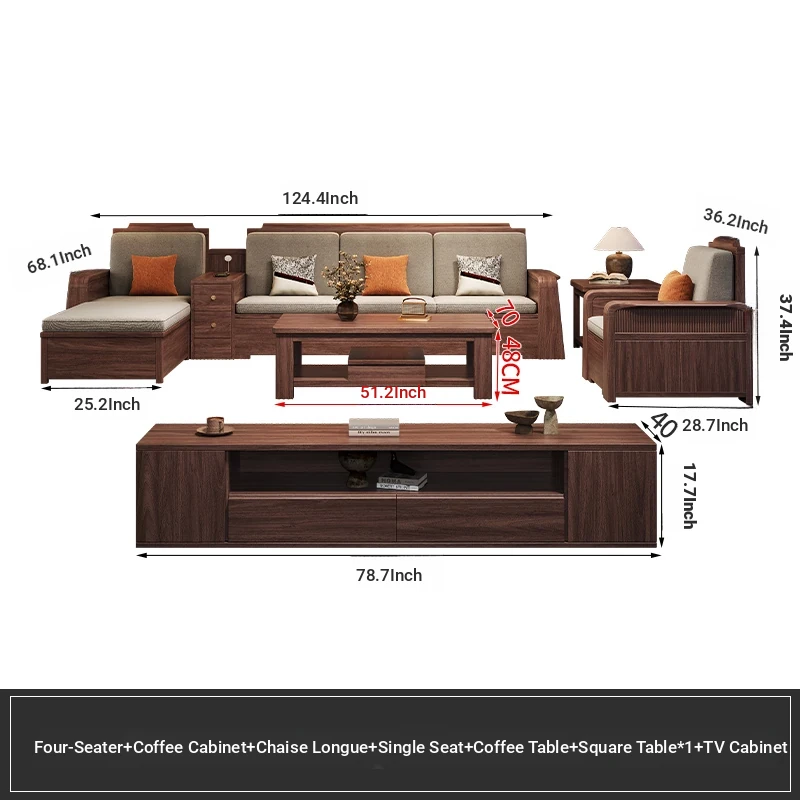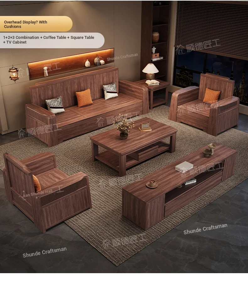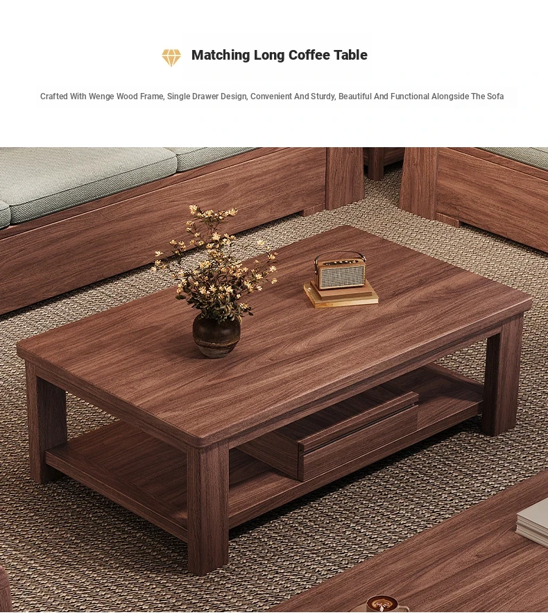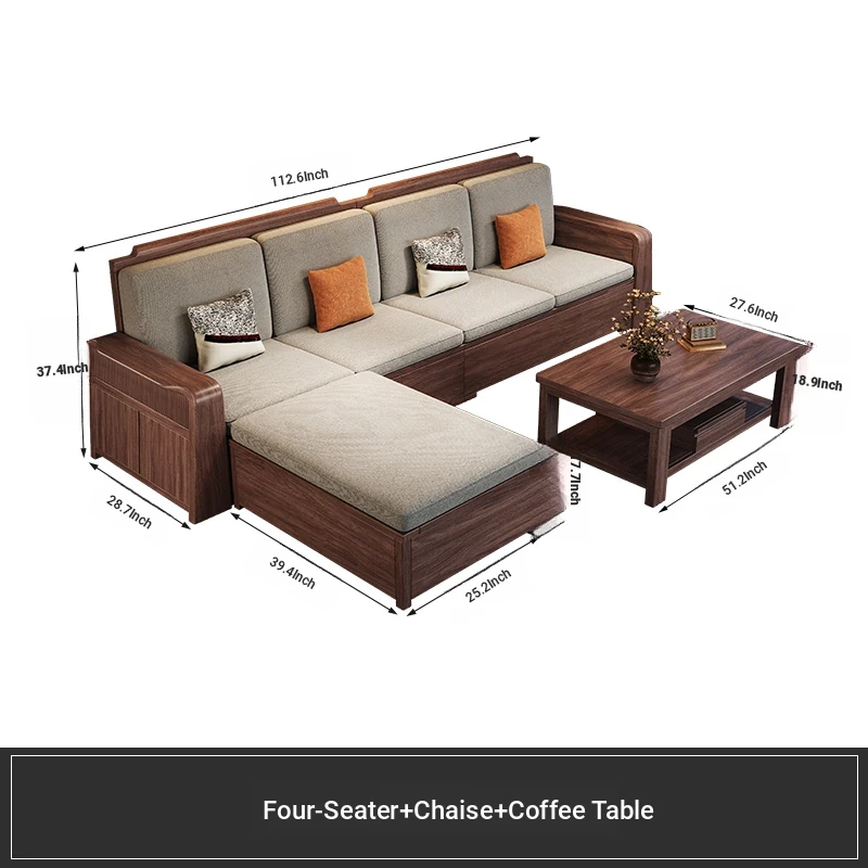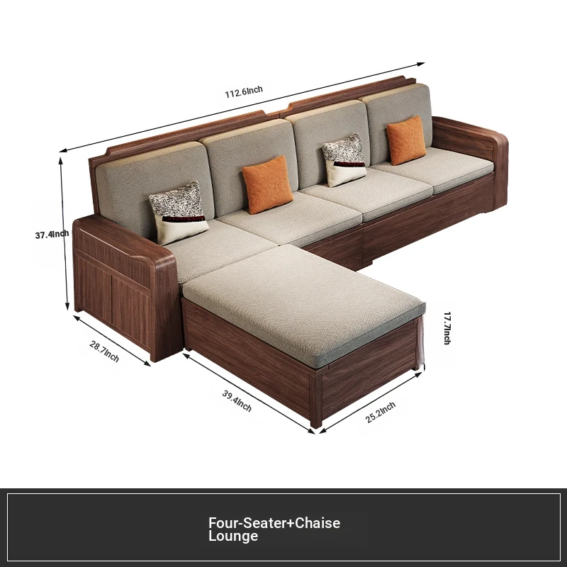 Elegant Black Walnut Solid Wood Sofa Set - New Chinese Style L-Shaped Chaise Lounge, Versatile for All Seasons, Perfect for Home Living Room with Storage Solutions
