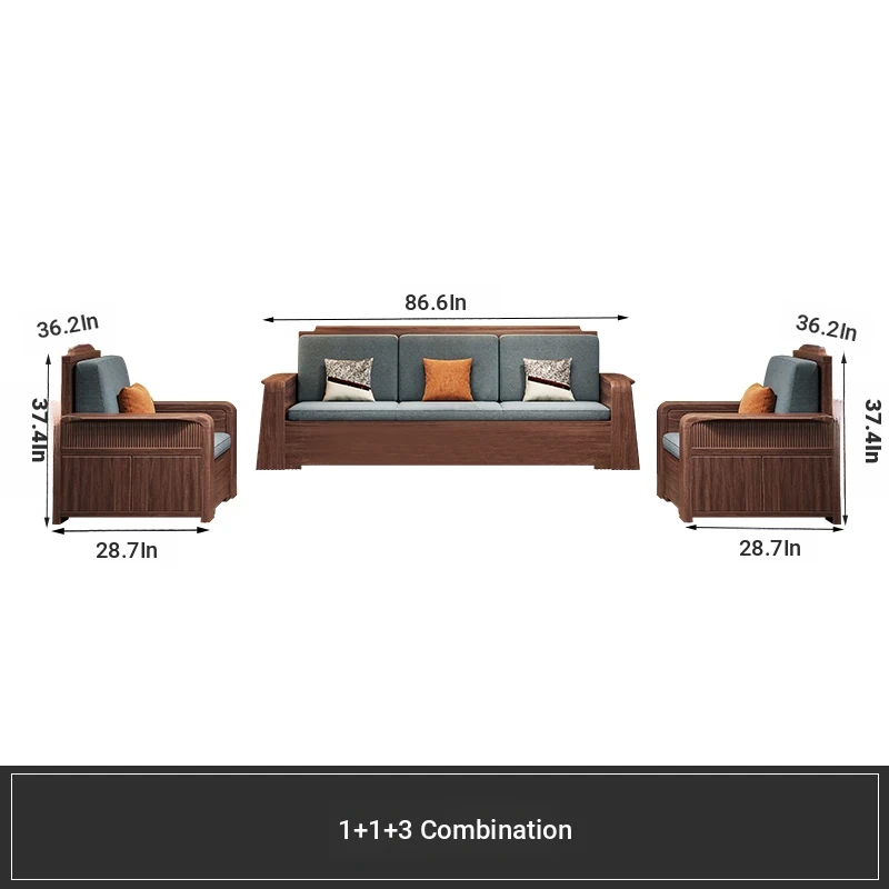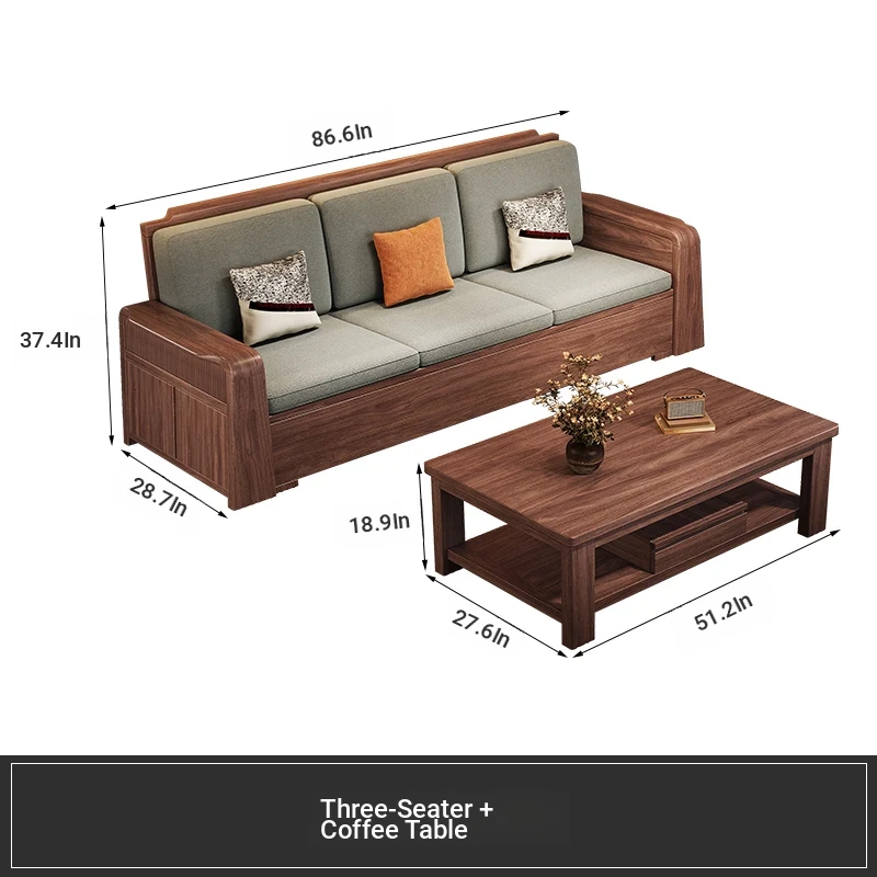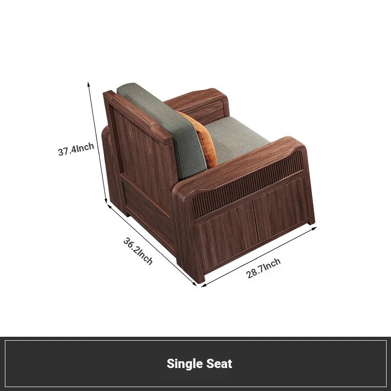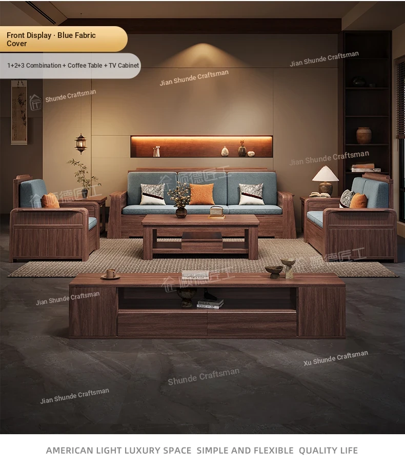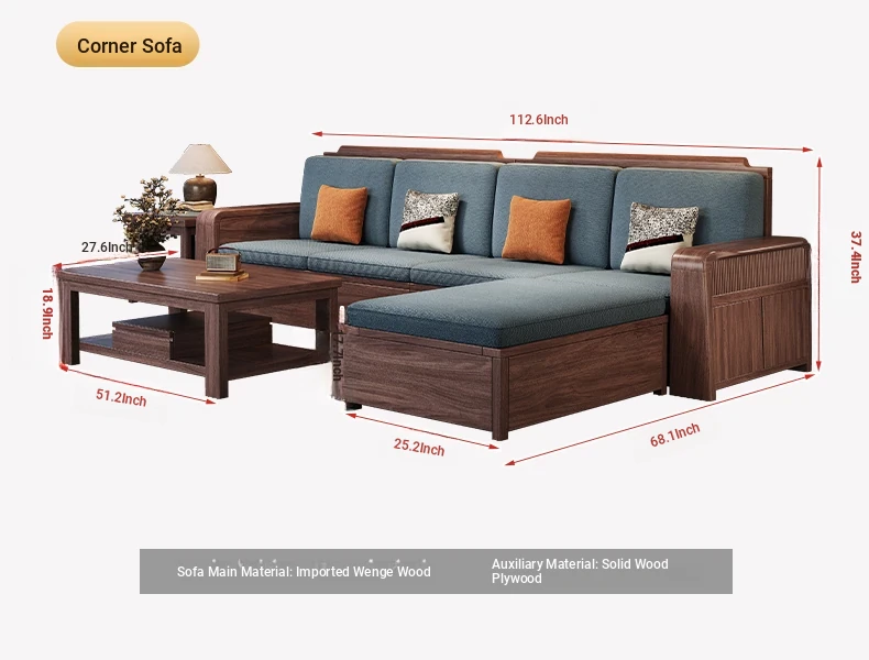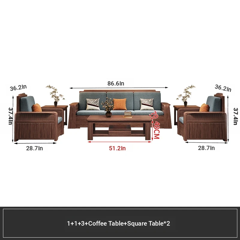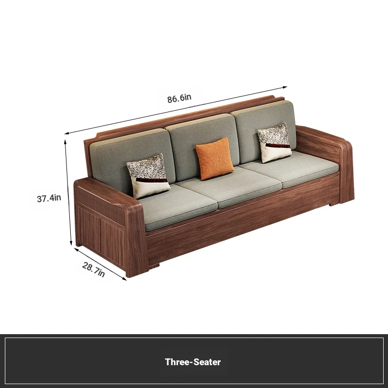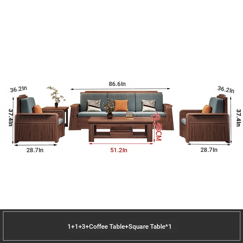 Elegant Black Walnut Solid Wood Sofa Set - New Chinese Style L-Shaped Chaise Lounge, Versatile for All Seasons, Perfect for Home Living Room with Storage Solutions