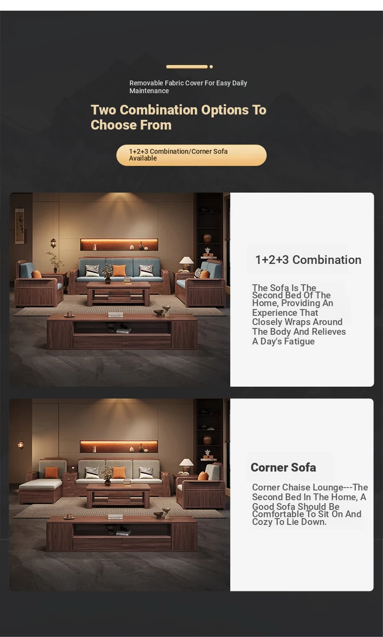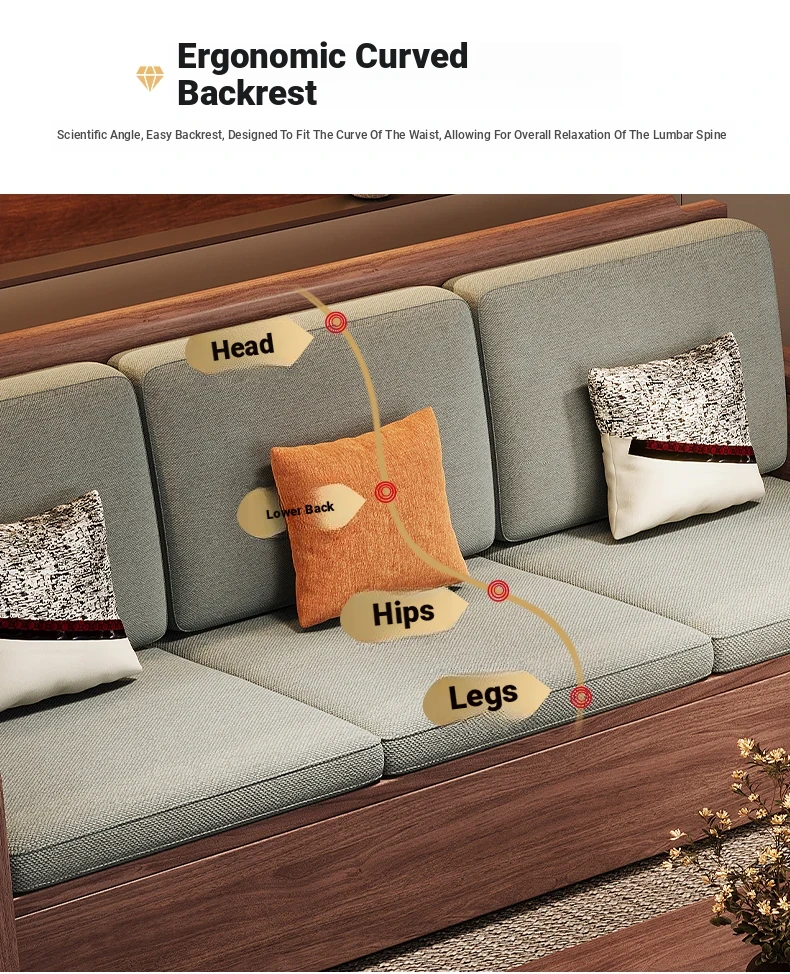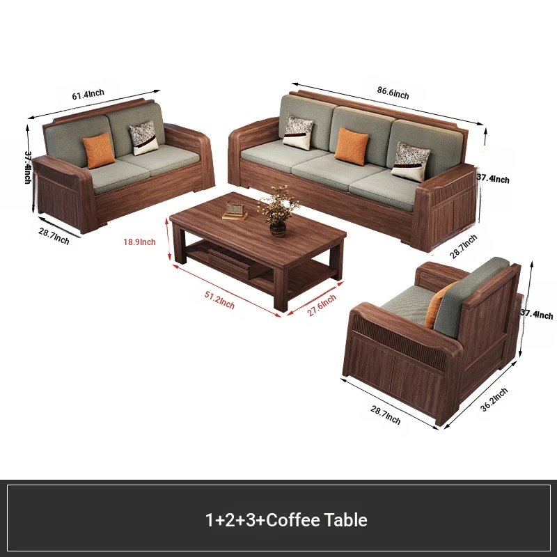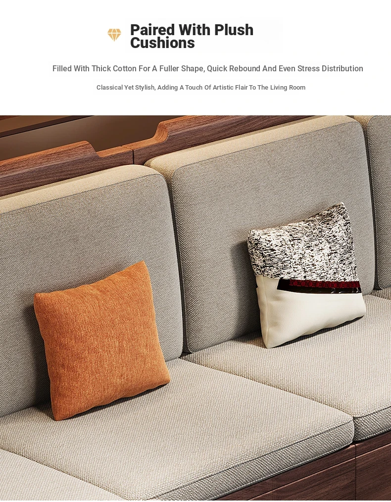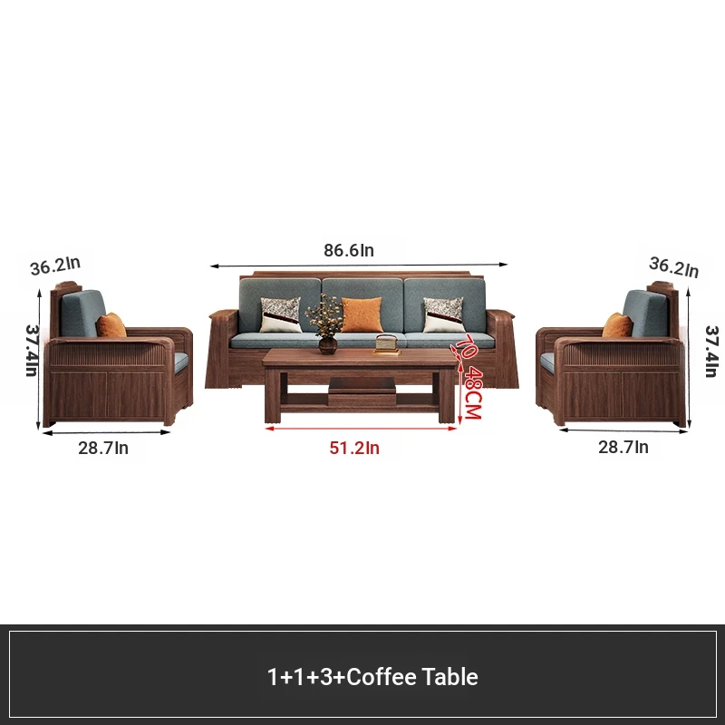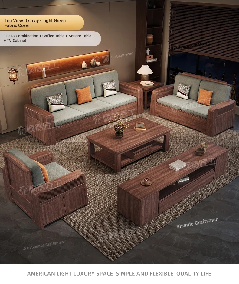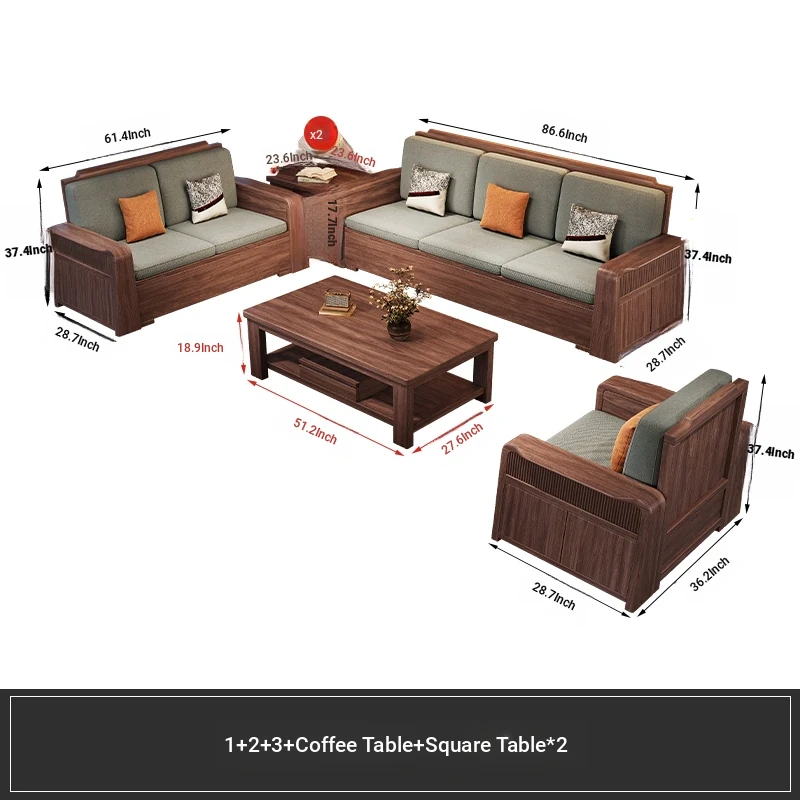 Elegant Black Walnut Solid Wood Sofa Set - New Chinese Style L-Shaped Chaise Lounge, Versatile for All Seasons, Perfect for Home Living Room with Storage Solutions